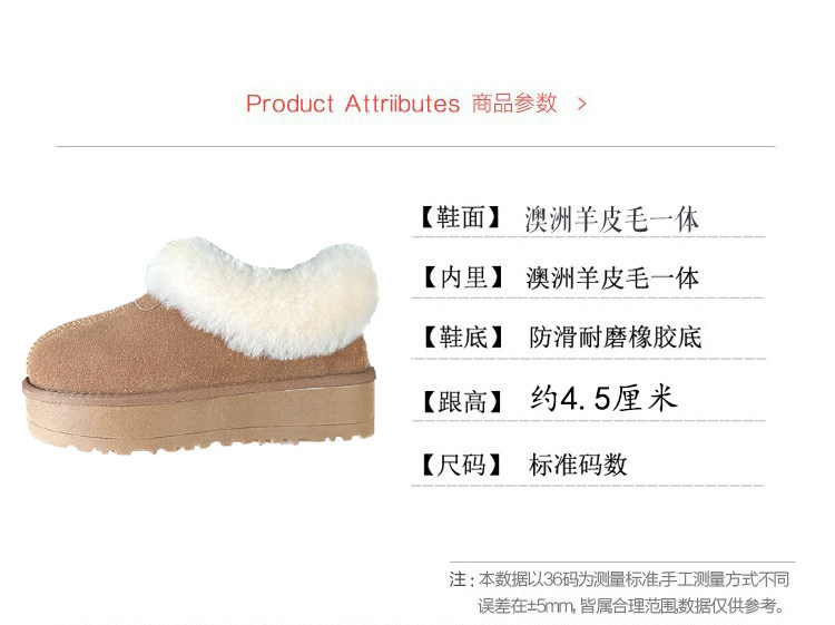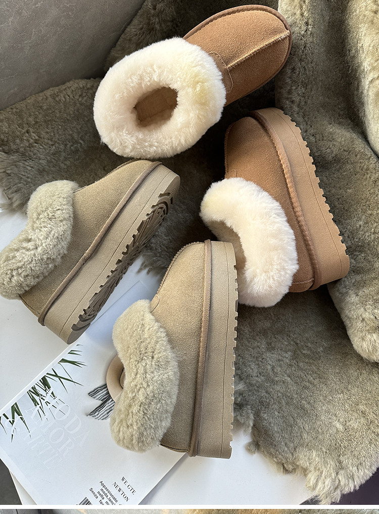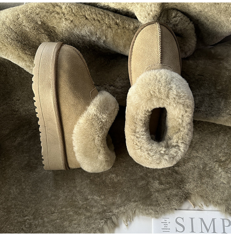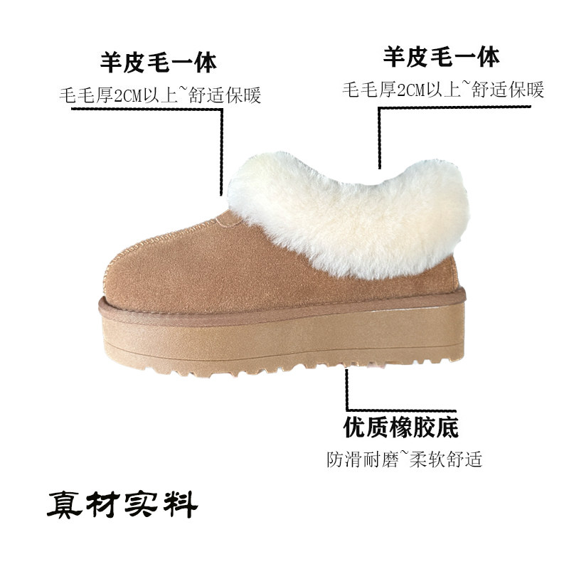 厚底雪地靴女冬季2025年新款羊皮毛一體加厚保暖塔茨特低幫短棉鞋