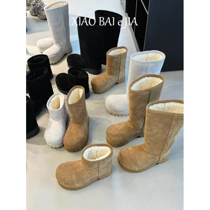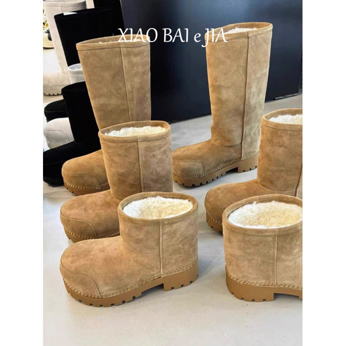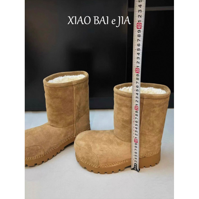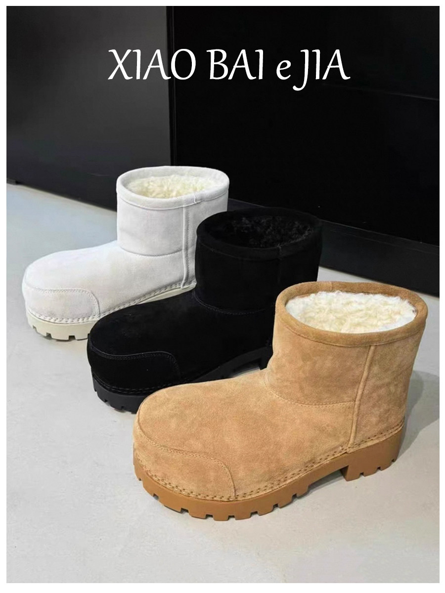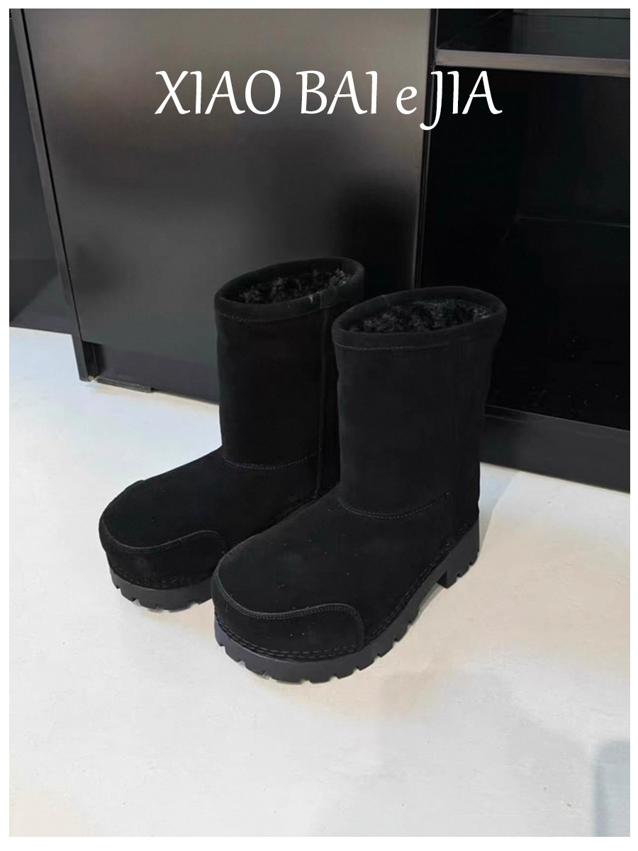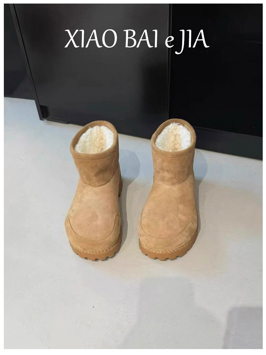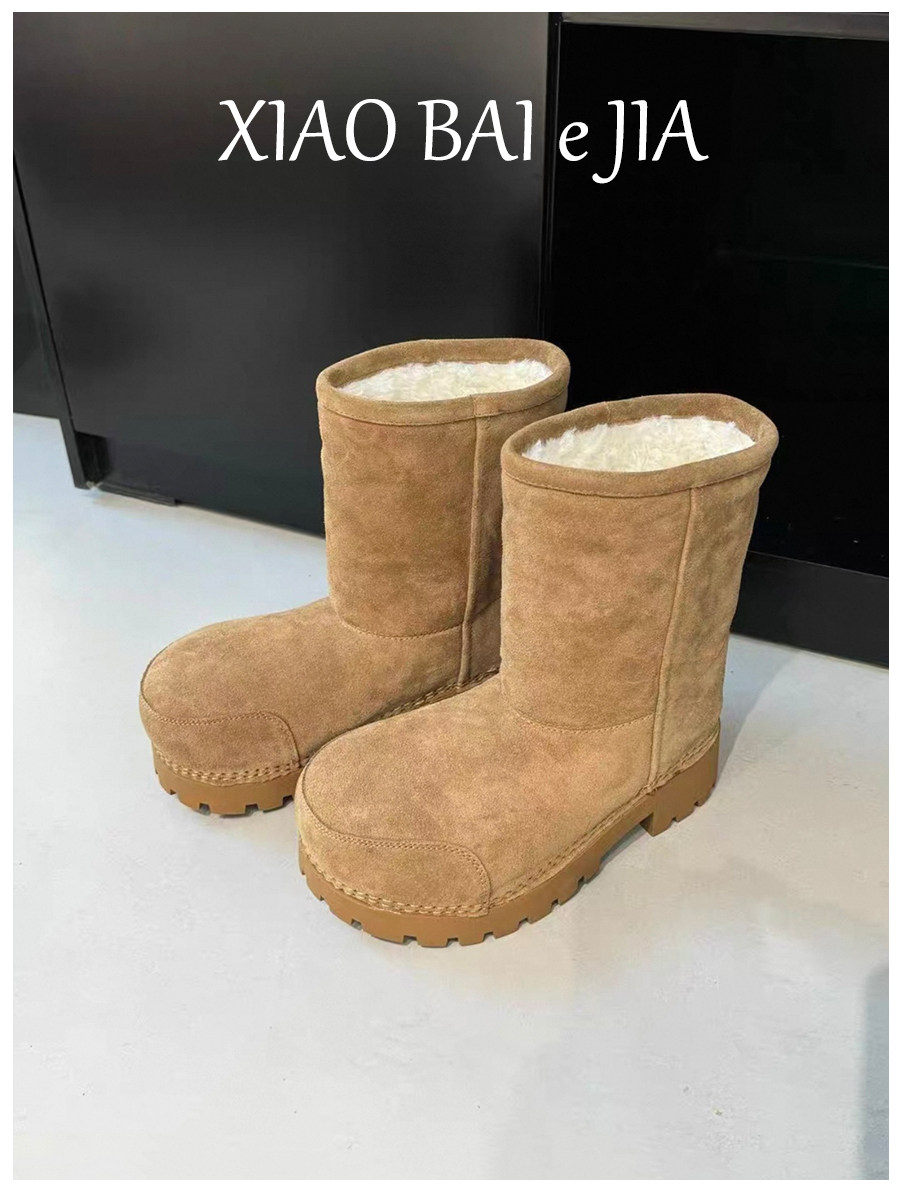 冬季新款醜萌大頭加絨加厚棉靴女時尚厚底外穿寬筒顯瘦保暖雪地靴