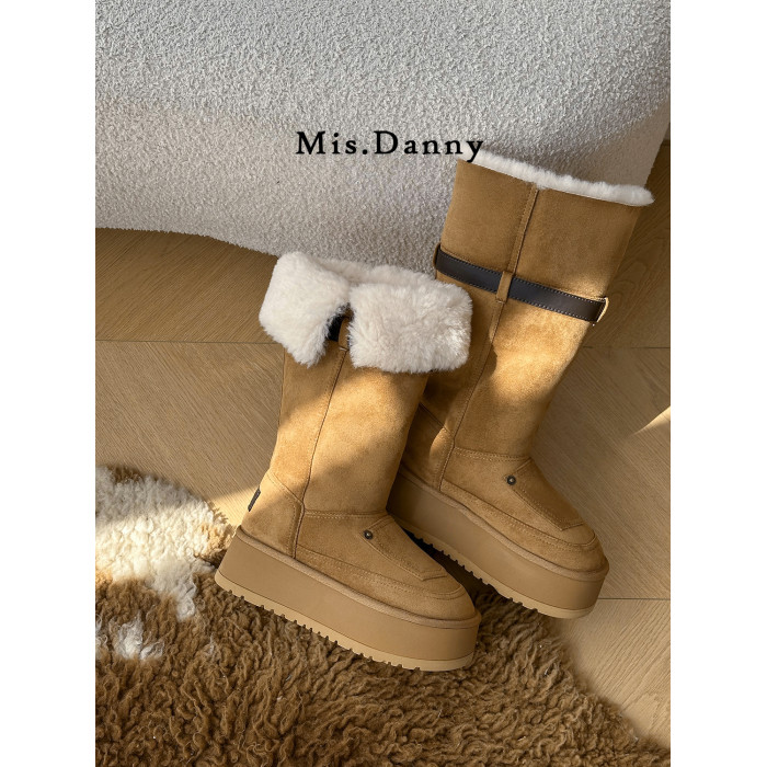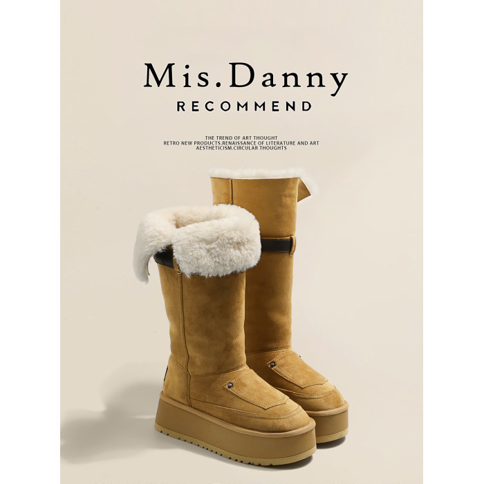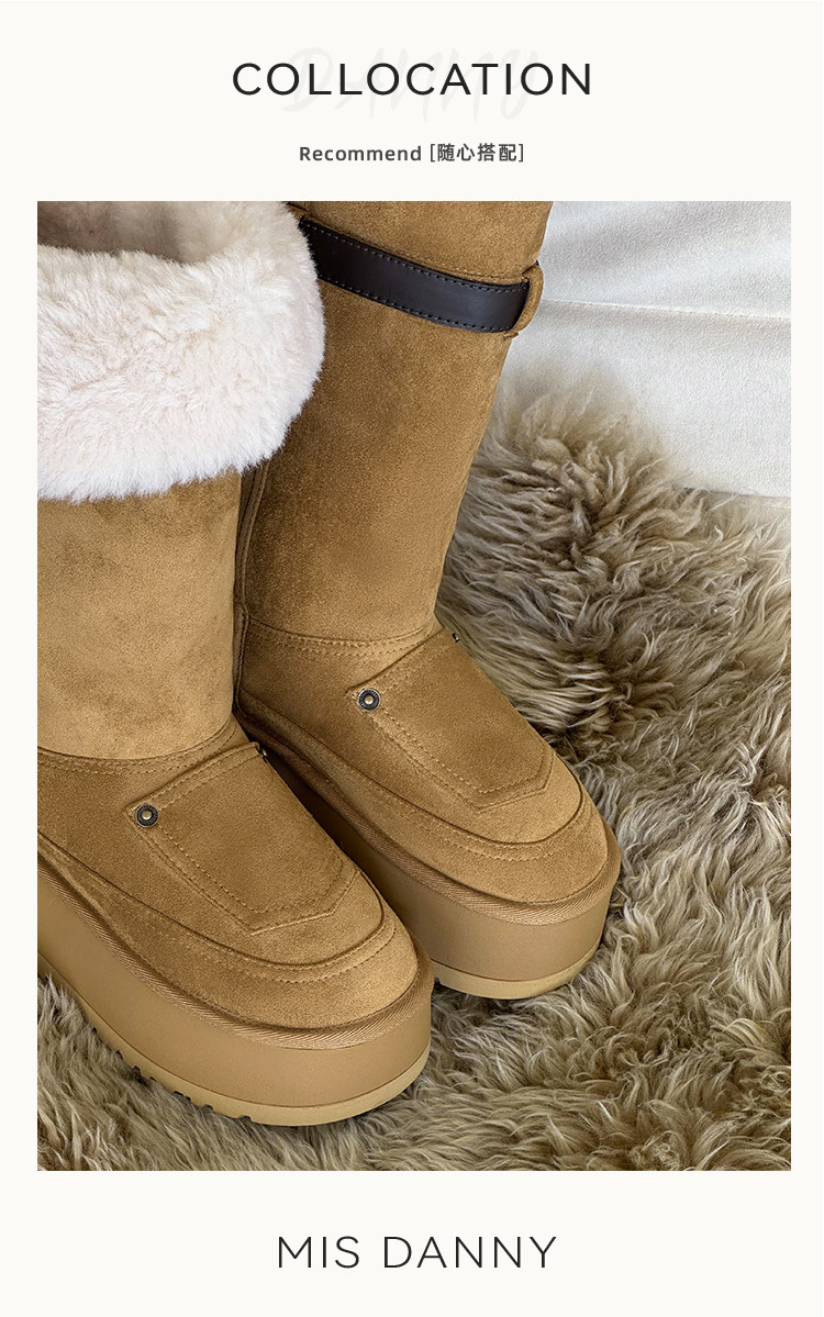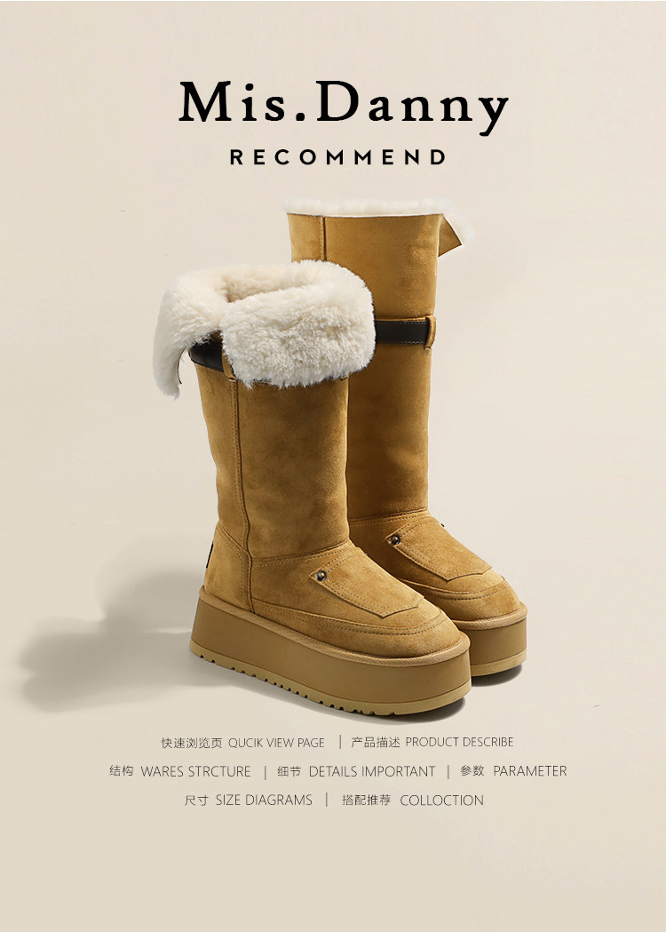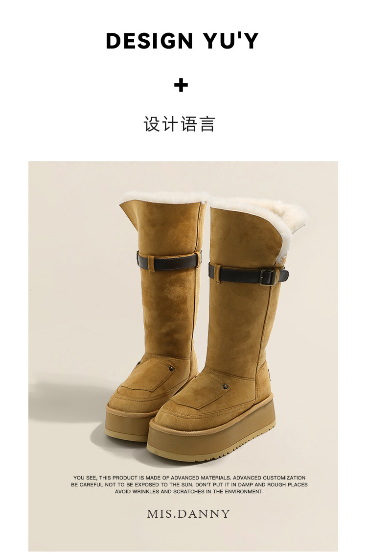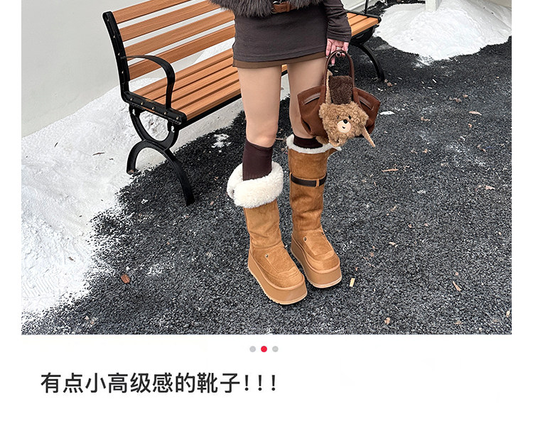 小衆繙毛口~厚底防滑雪地靴女冬2025新款增高筒騎士長靴加厚棉鞋