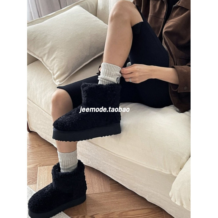 小池在首爾2025年冬季新款松糕底增高加絨保暖棉靴甜美休閒雪地靴