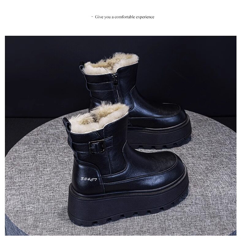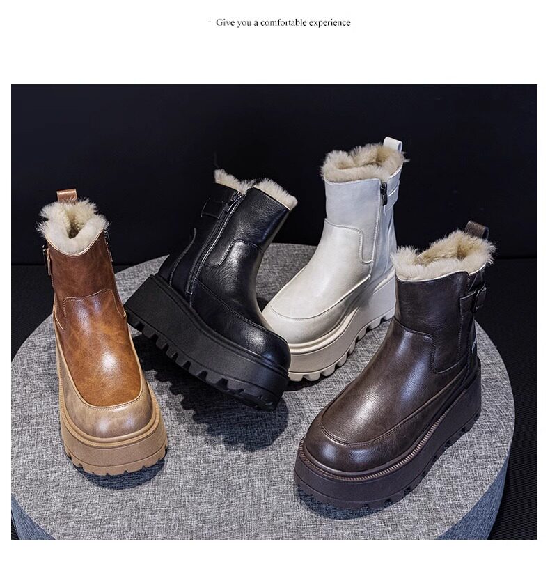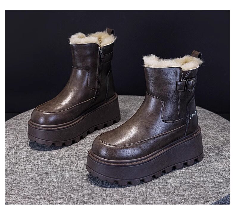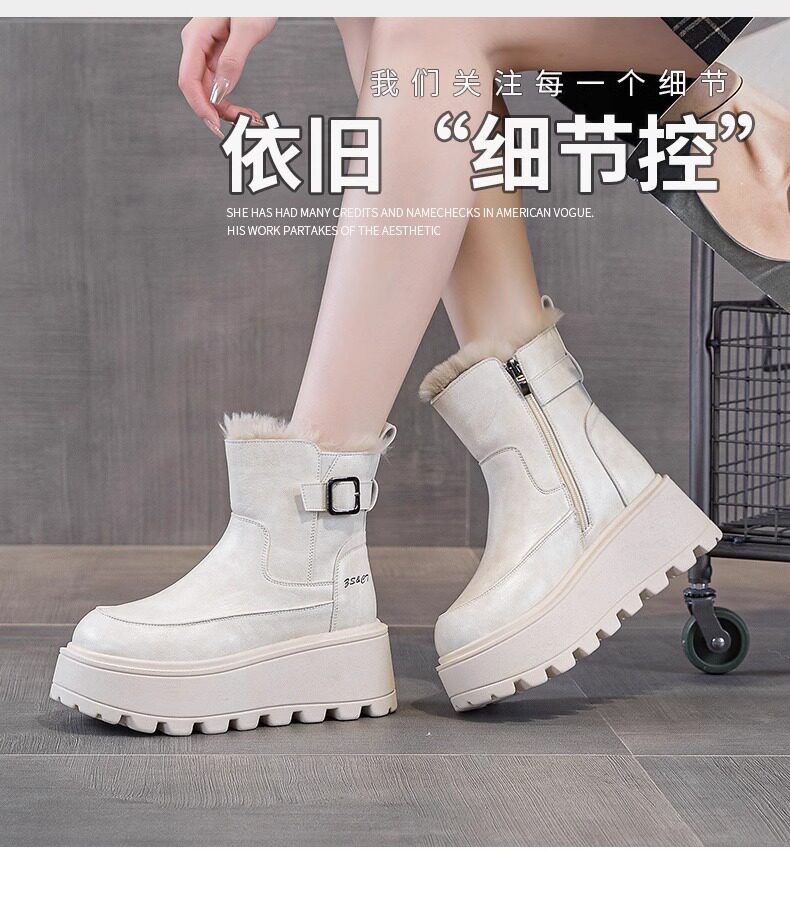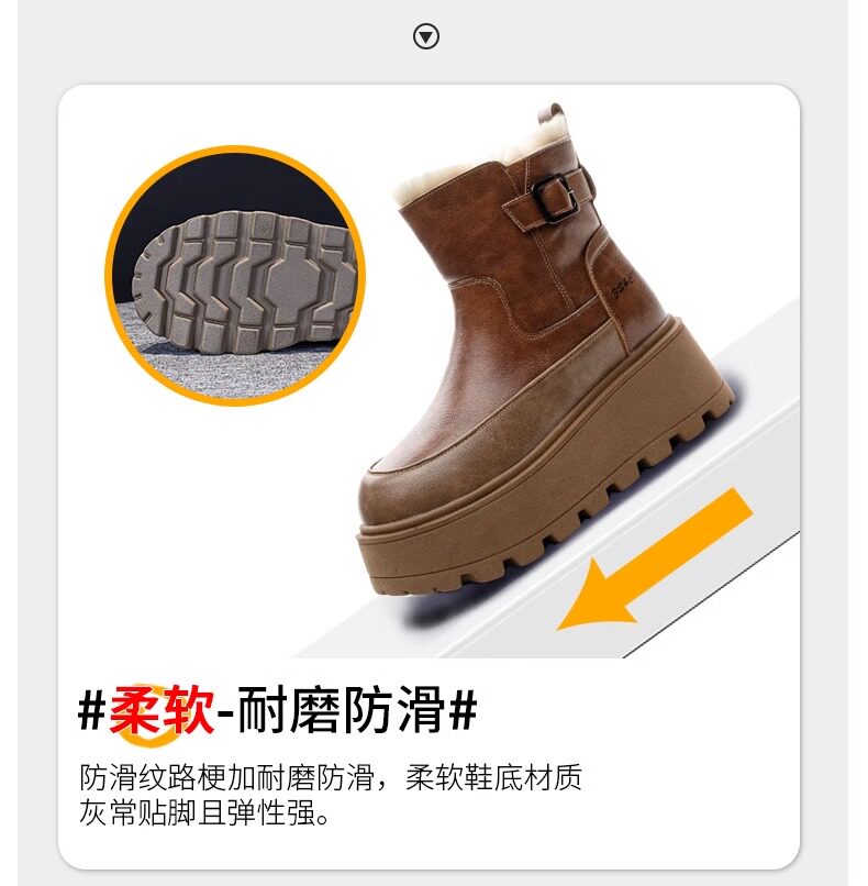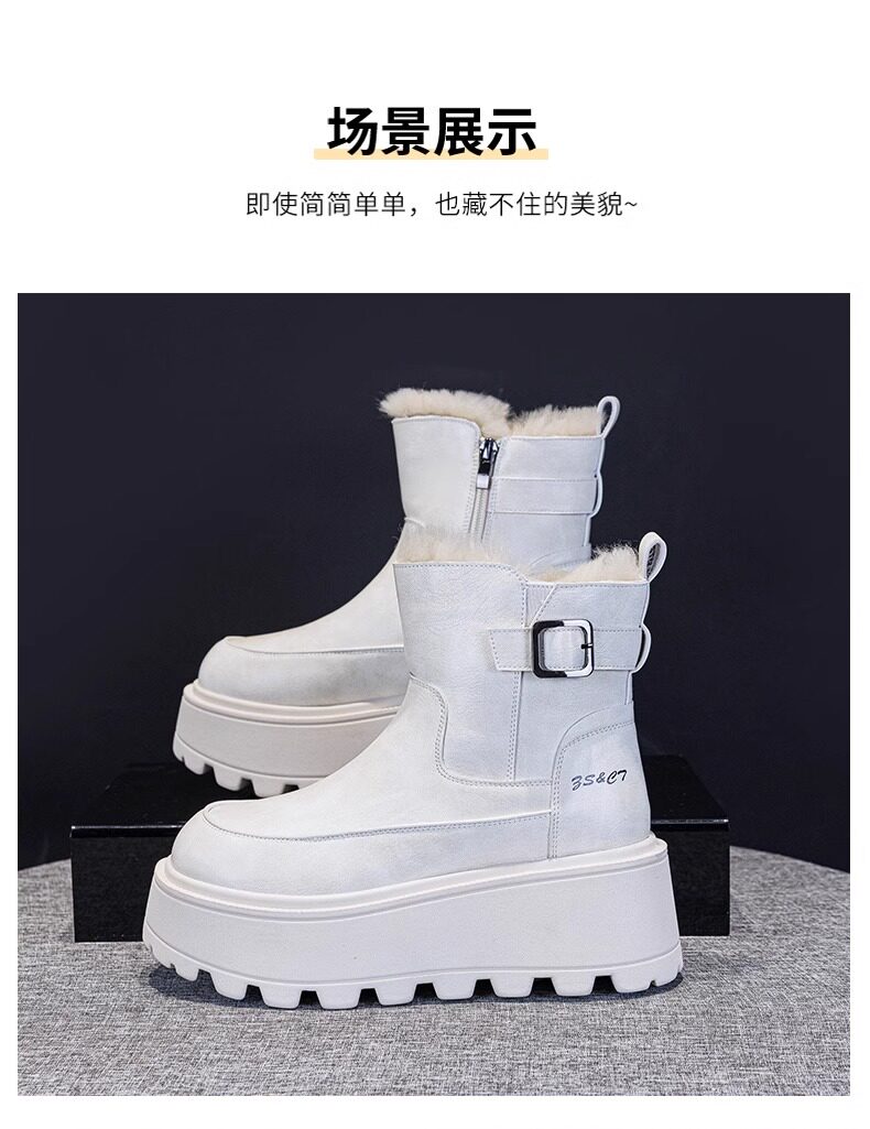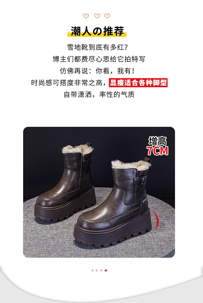 真皮雪地靴女款2025冬季新款加絨加厚厚底松糕增高馬丁靴短靴棉鞋