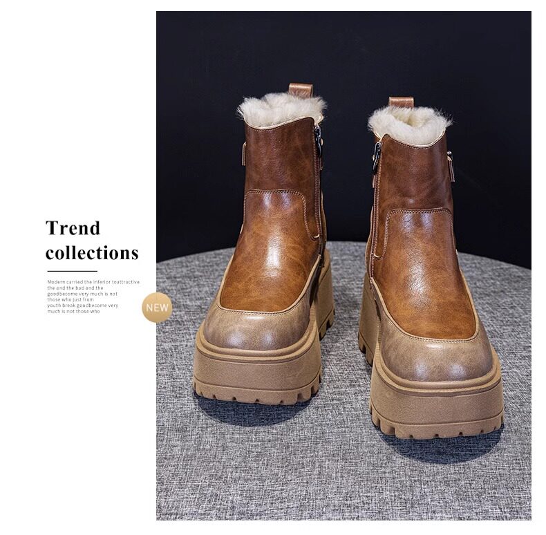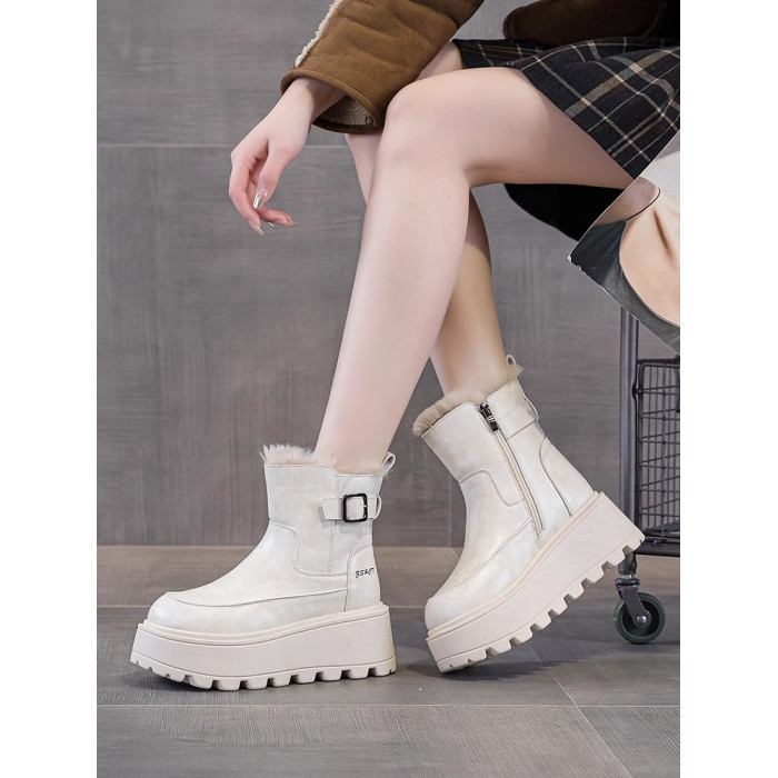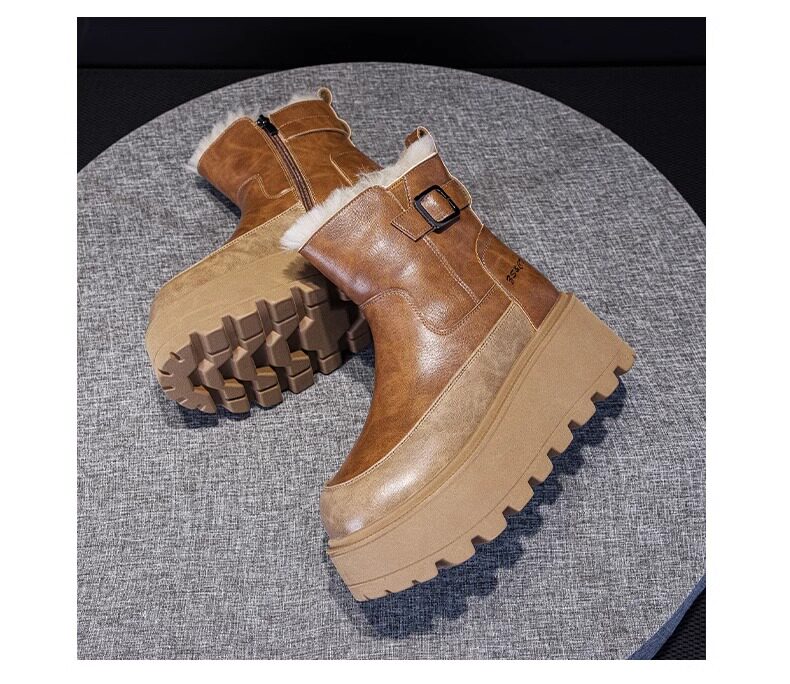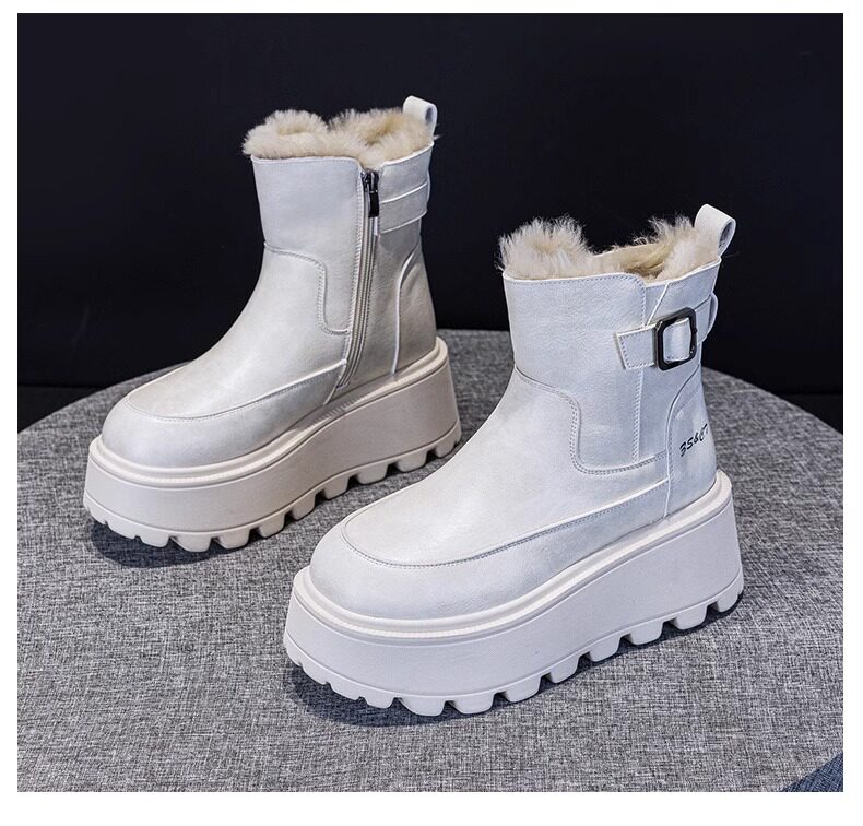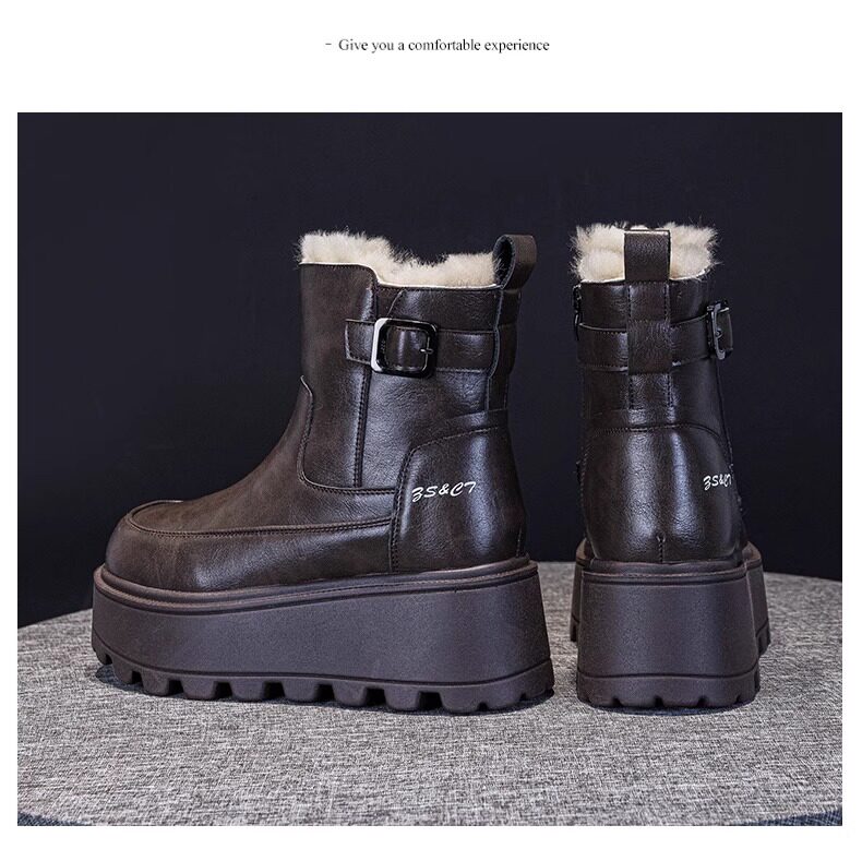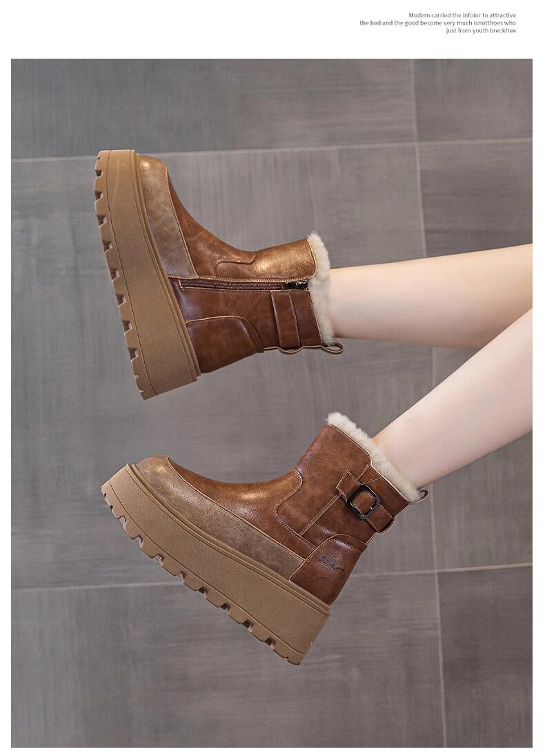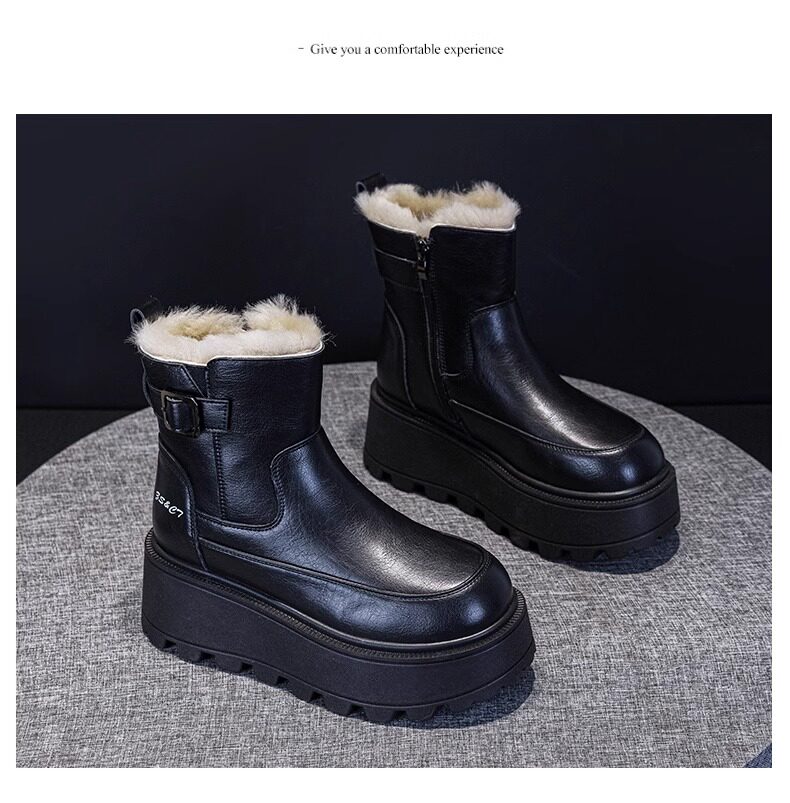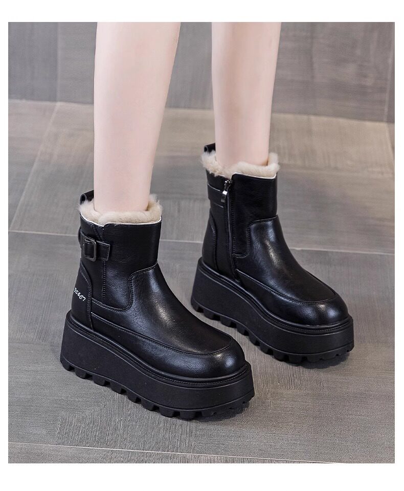 真皮雪地靴女款2025冬季新款加絨加厚厚底松糕增高馬丁靴短靴棉鞋
