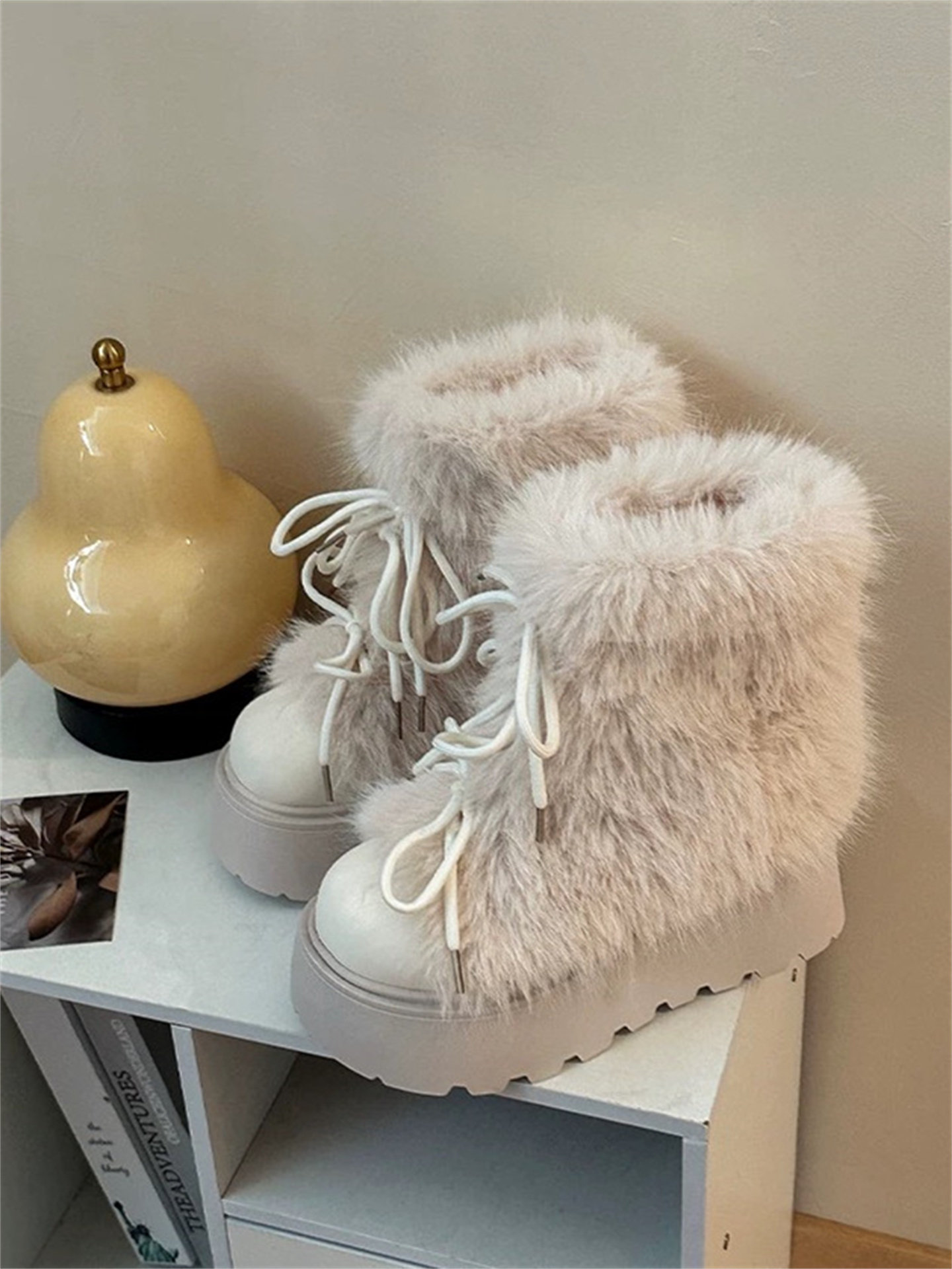白色加絨加厚保暖雪地靴女款2025冬季新款毛毛厚底增高防滑大棉鞋