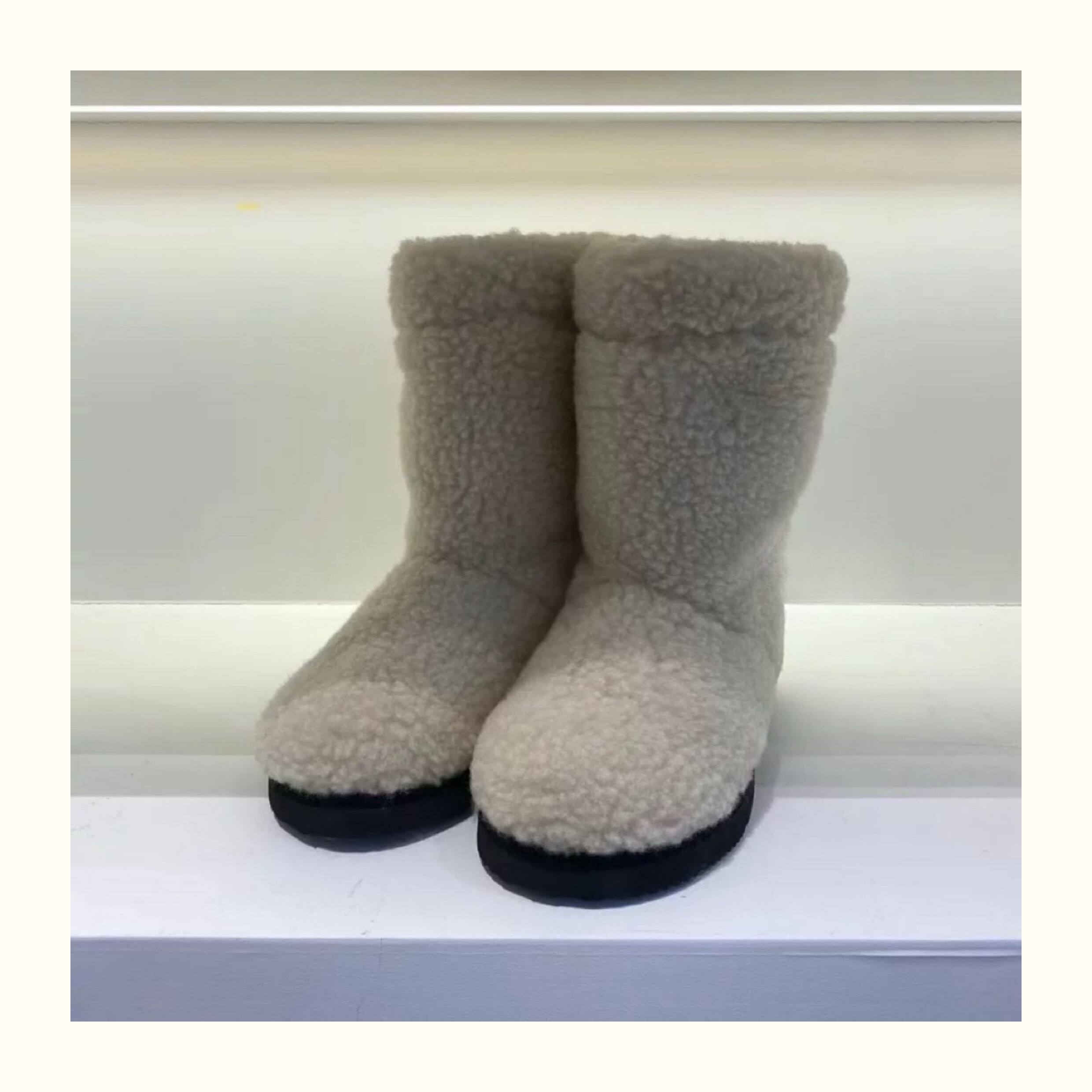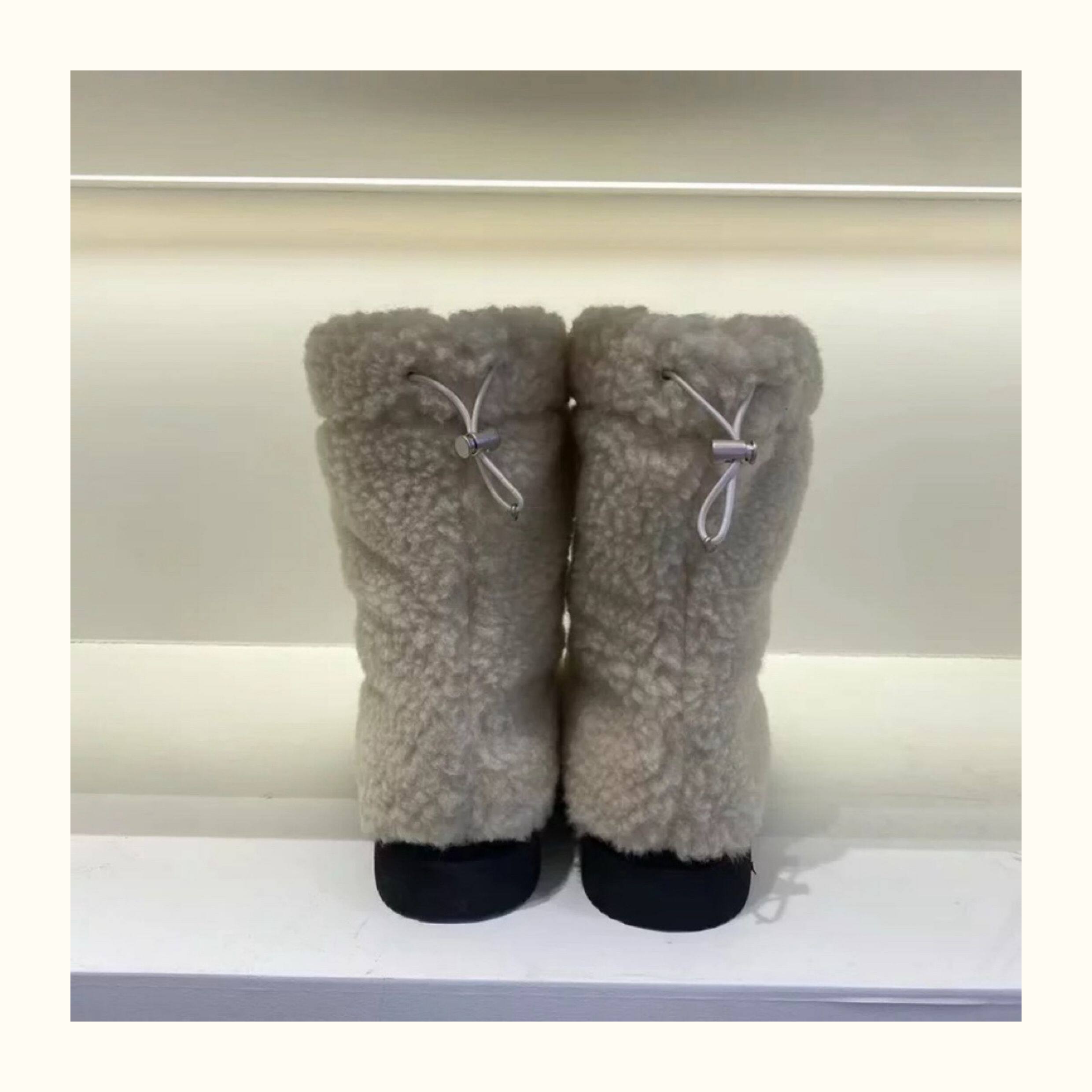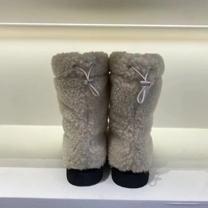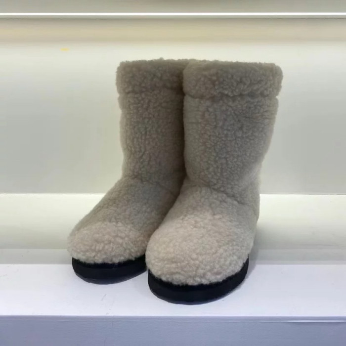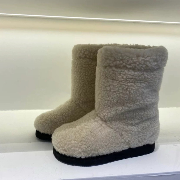 韓版保暖羊羔毛厚底雪地靴2025秋冬新款圓頭套筒加絨加厚中筒靴女