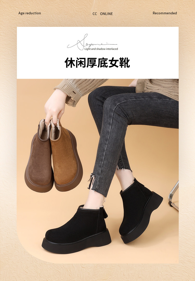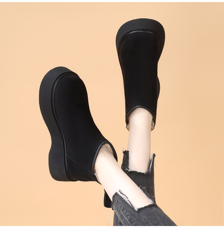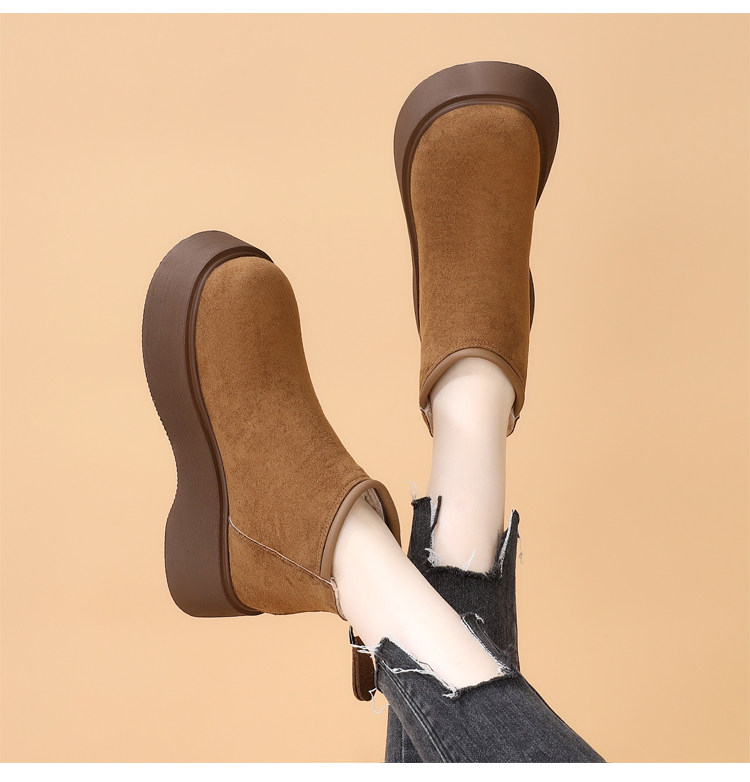 厚底勃肯短靴女2026春季新款顯瘦增高顯腿長百搭絨面馬丁靴菸琯靴