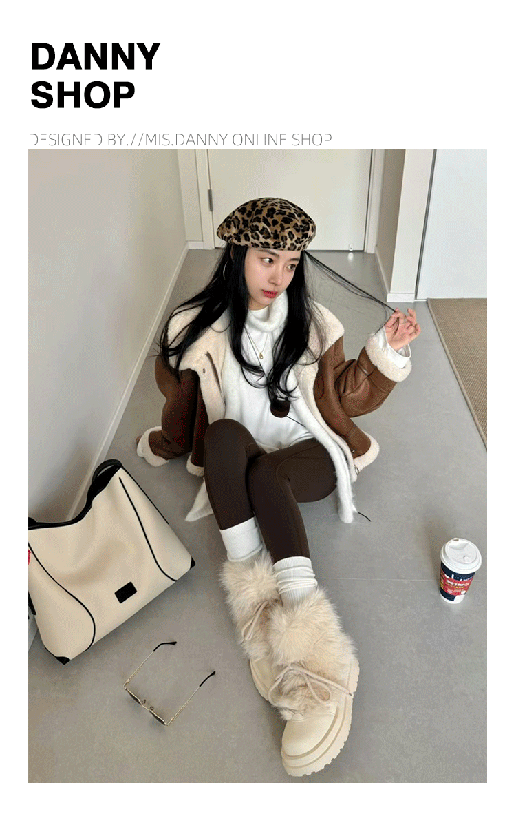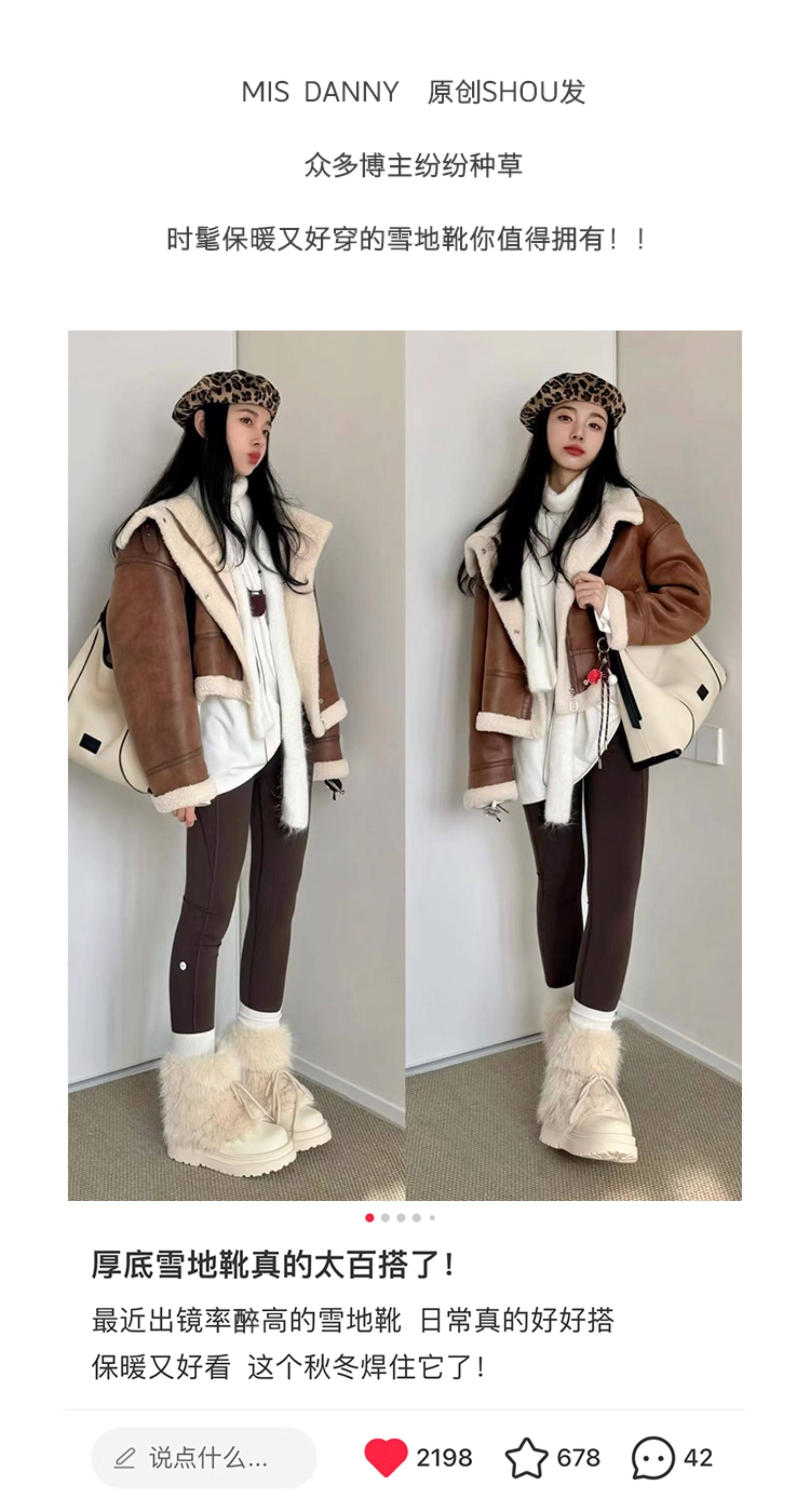 與愛私奔~毛毛防滑雪地靴女2025秋冬加厚毛絨厚底棉鞋大頭短靴子