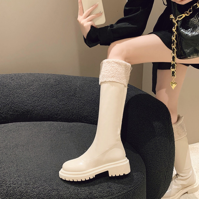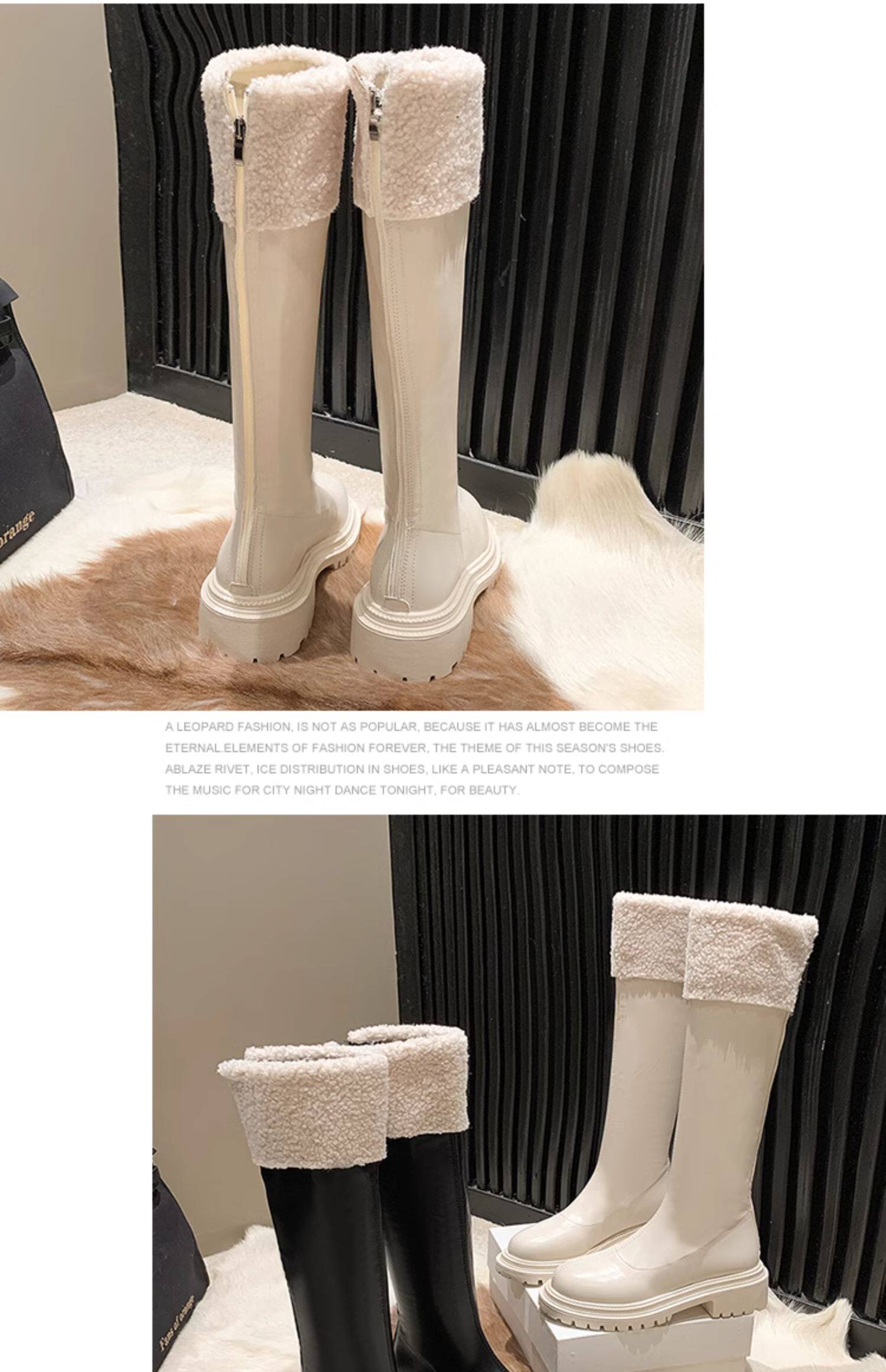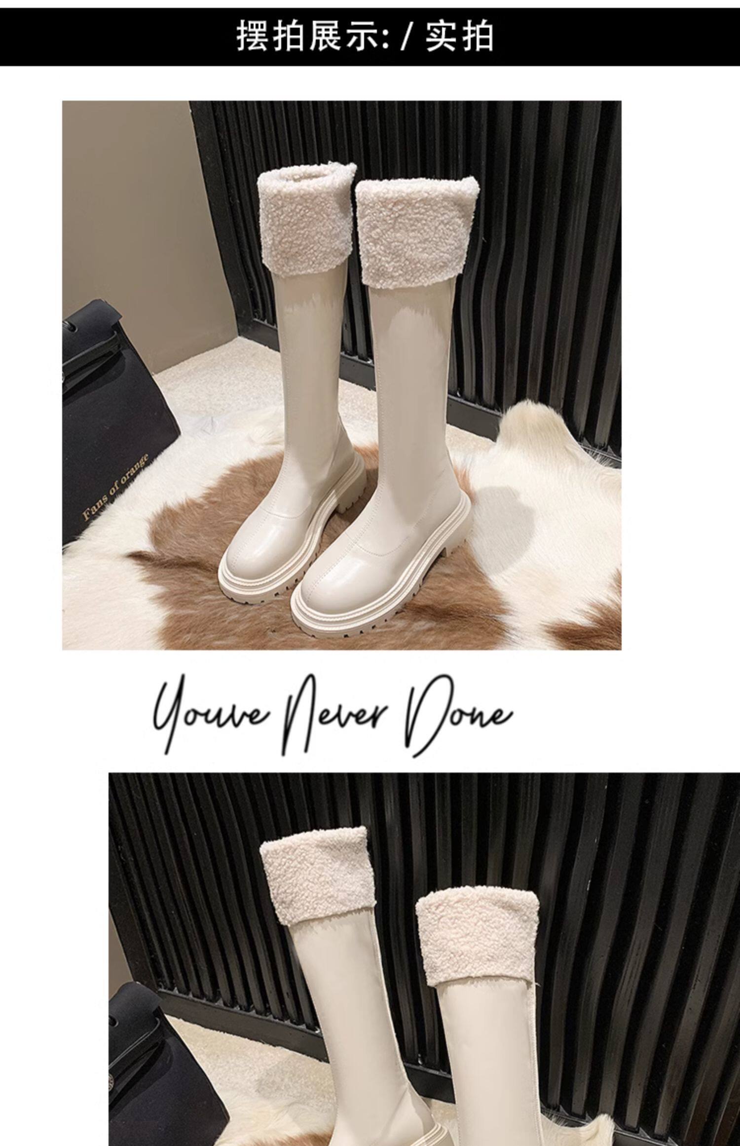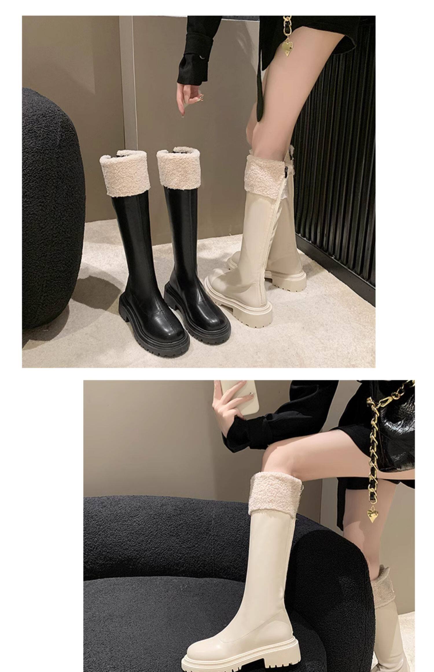 羊羔毛長筒靴子女2025冬季新款加絨雪地棉靴顯瘦厚底高筒騎士靴潮