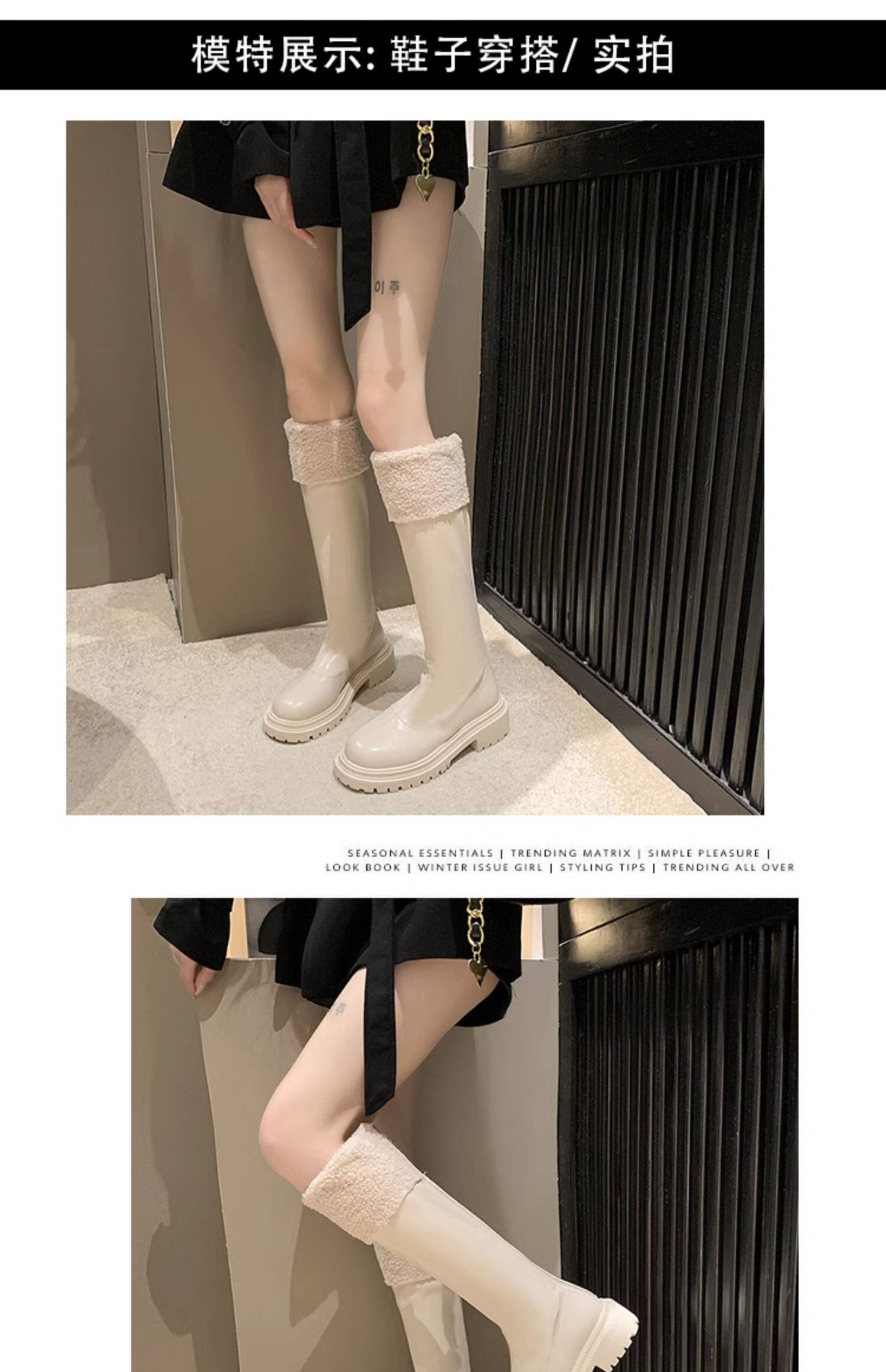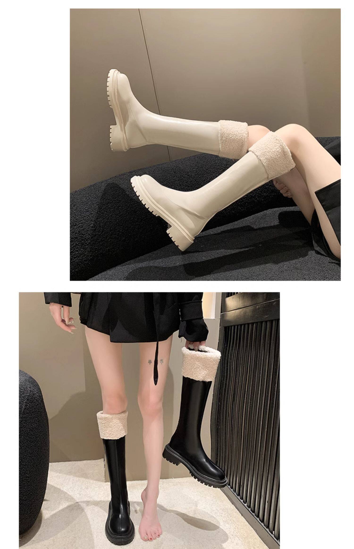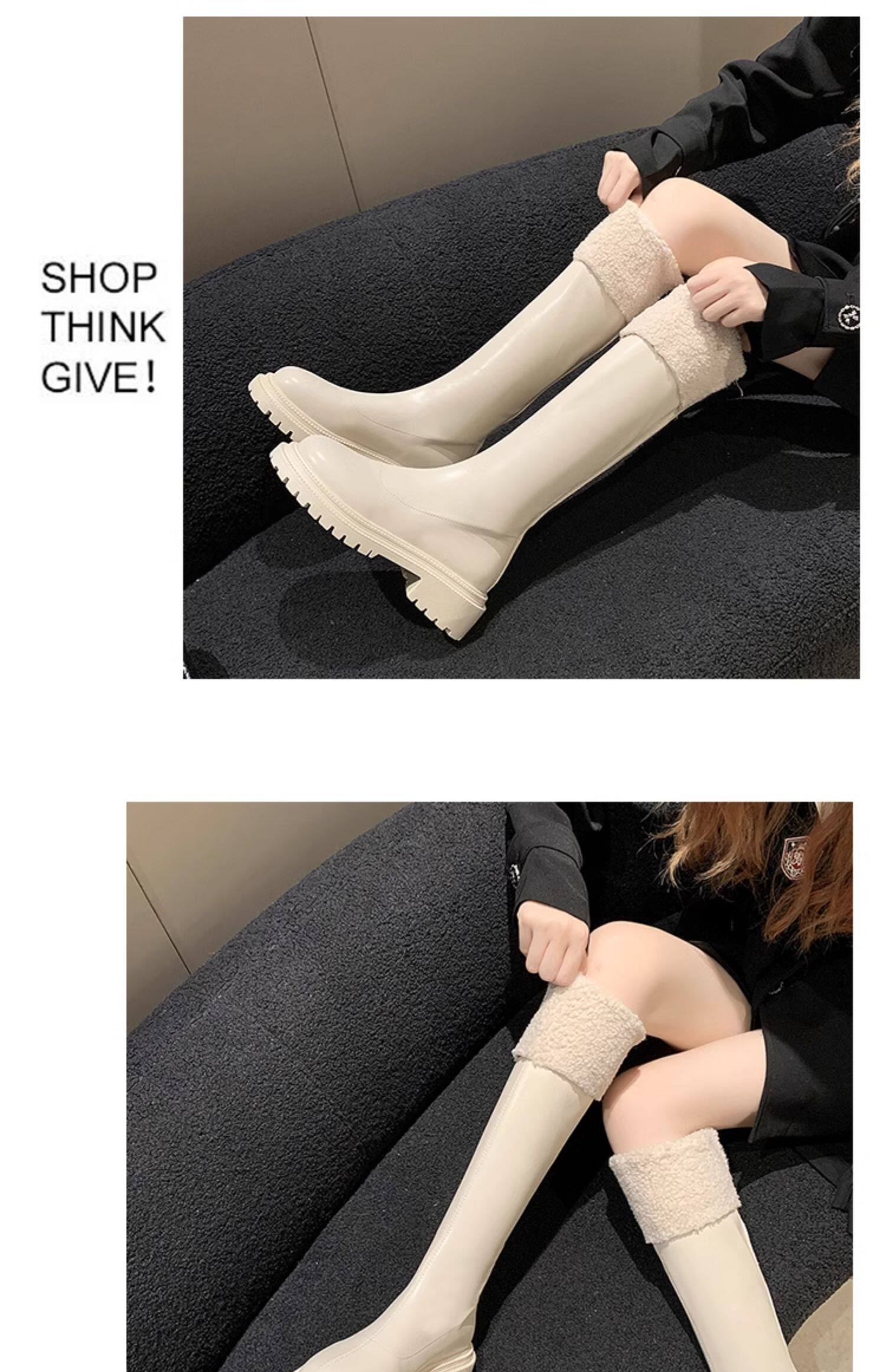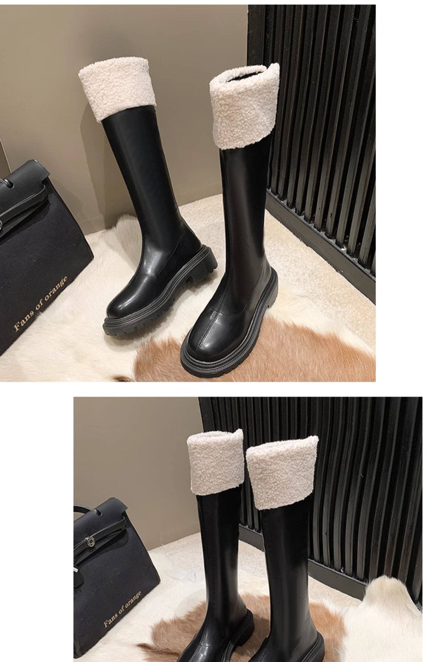 羊羔毛長筒靴子女2025冬季新款加絨雪地棉靴顯瘦厚底高筒騎士靴潮