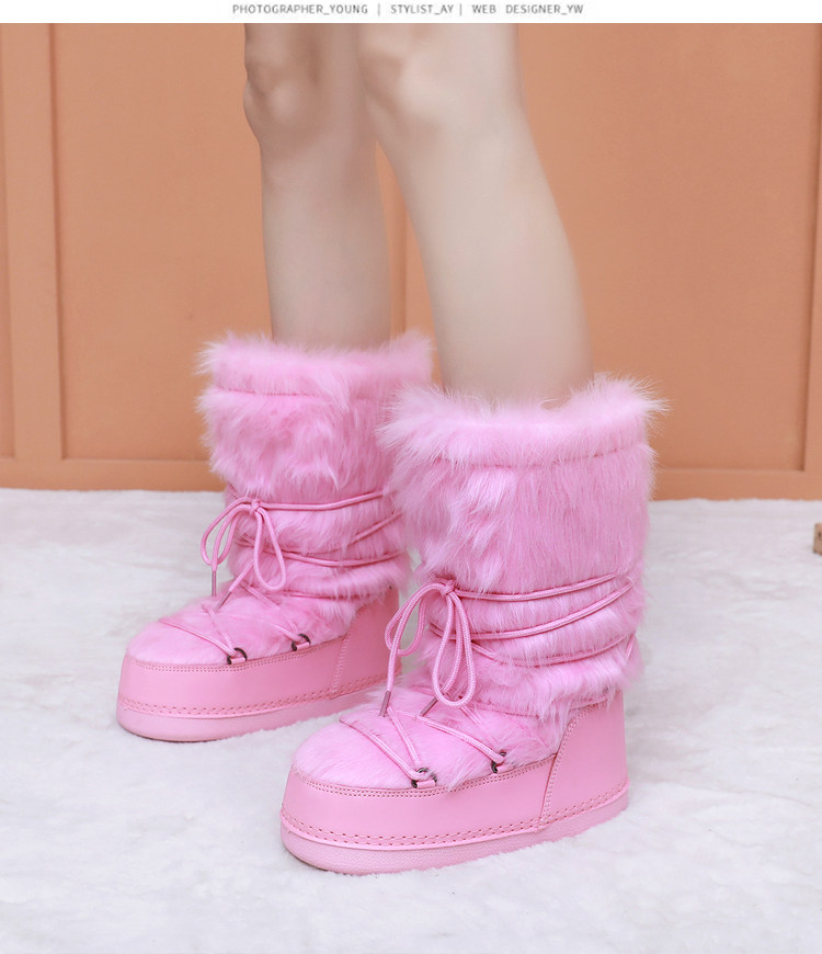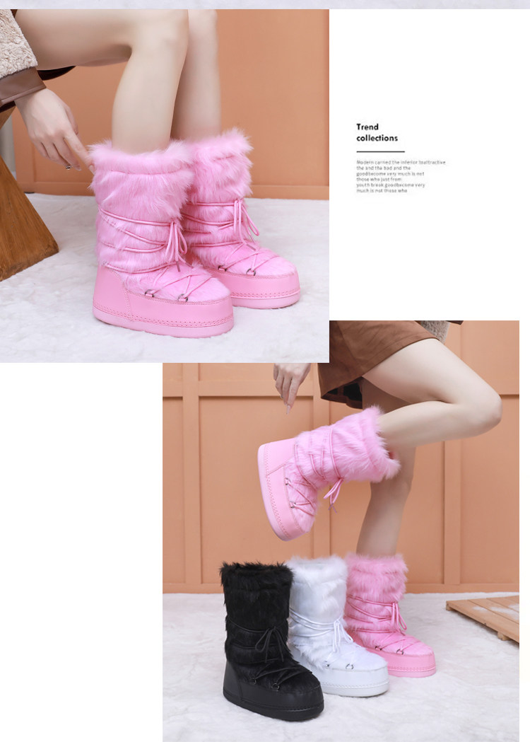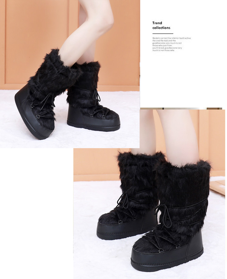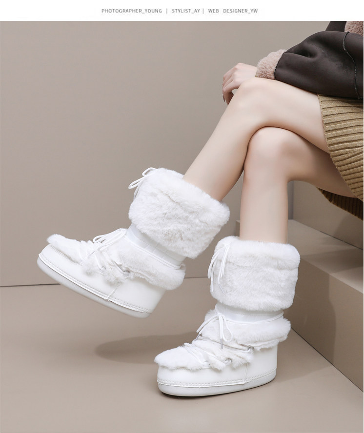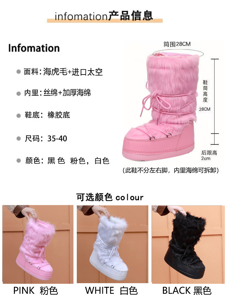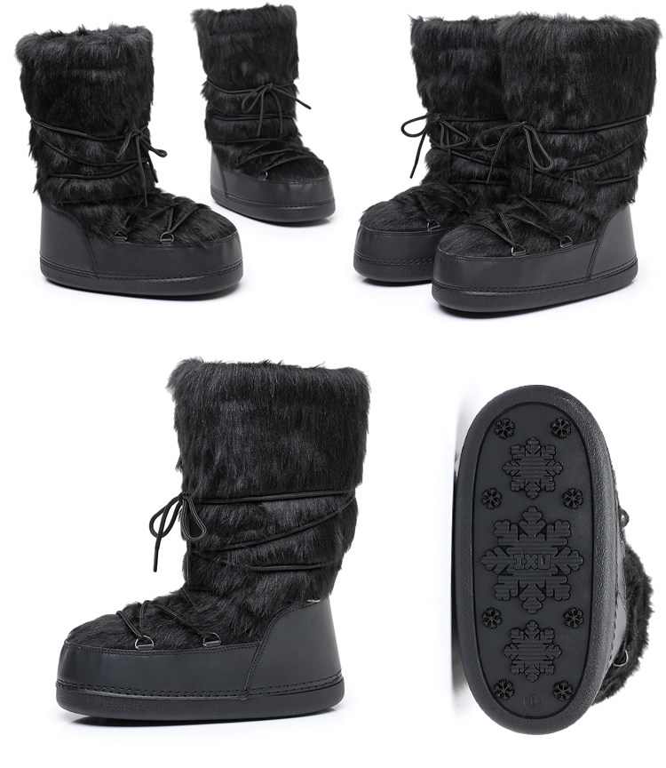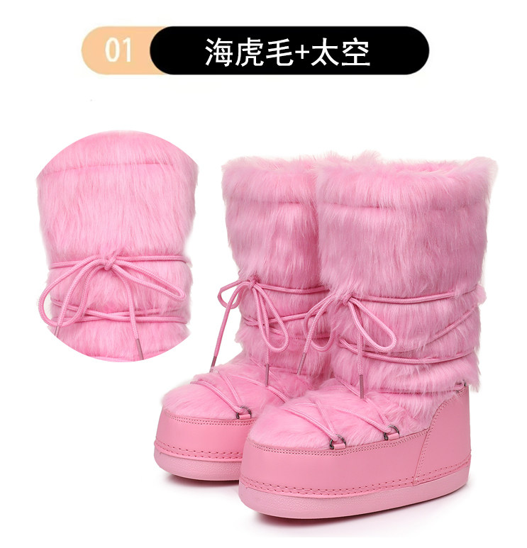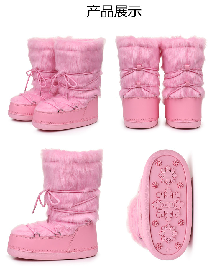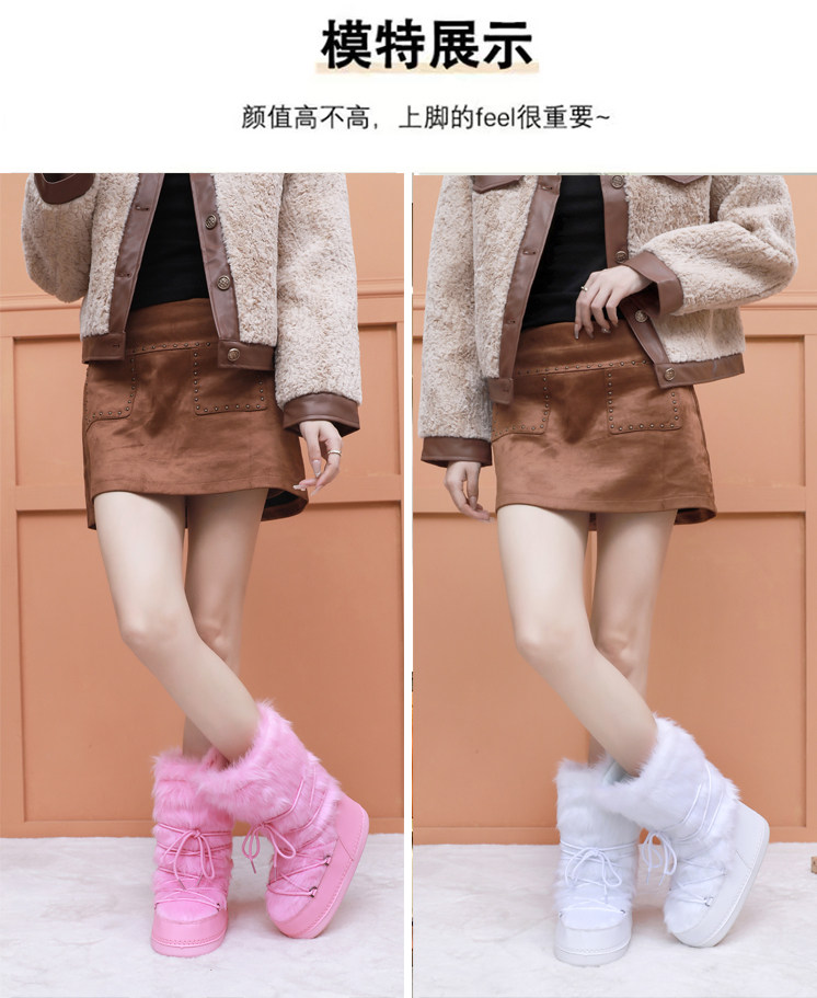 雪地靴女冬季2025新款保暖高筒棉靴毛毛加厚絨月亮靴滑雪鞋潮靴