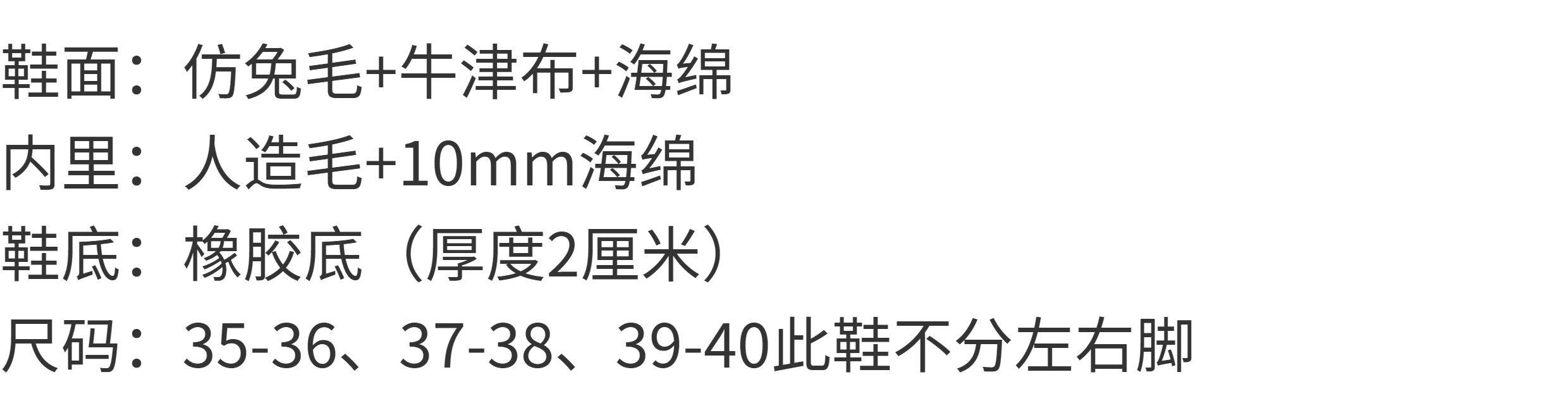 | 鞋面內裡材質 | 人造長毛絨 |