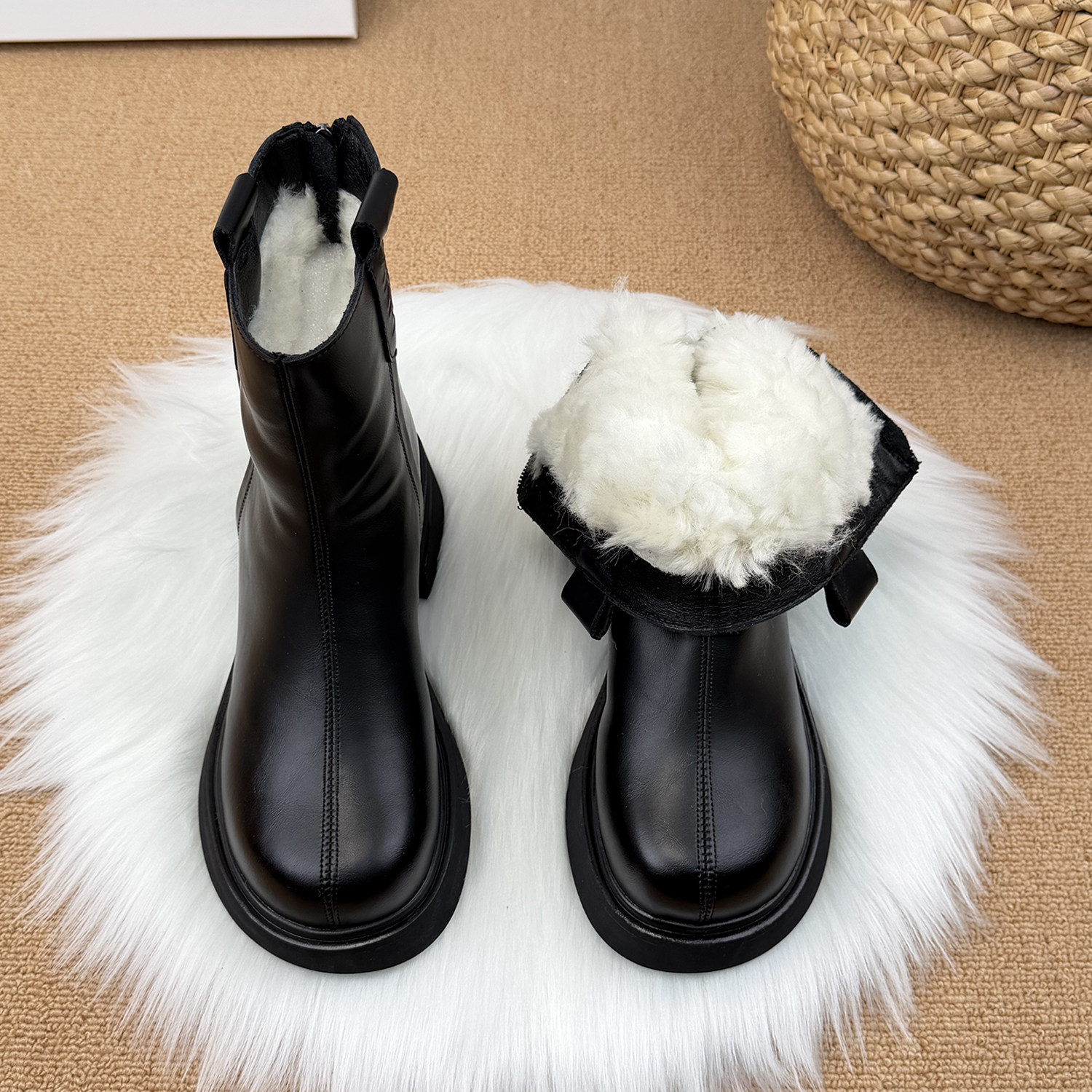 羊毛厚底馬丁靴女2025秋冬新款加厚雪地靴軟底單靴顯瘦英倫風短靴