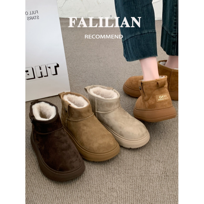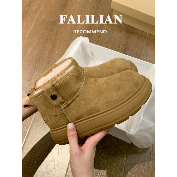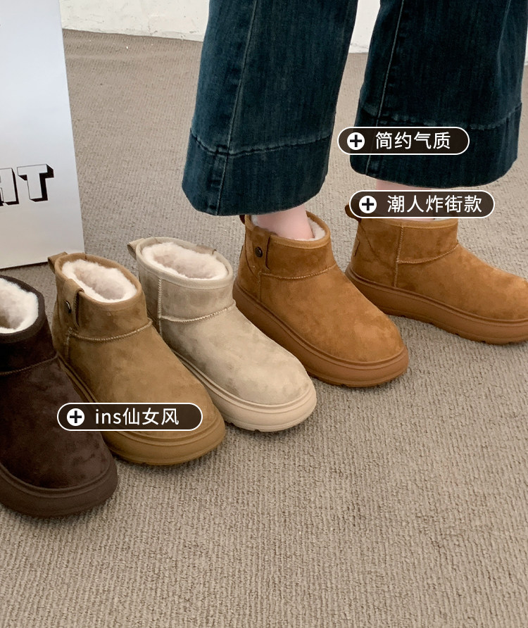 厚底雪地靴女皮毛一體2026新款冬季加絨鞋子外穿雪地棉鞋保暖棉靴