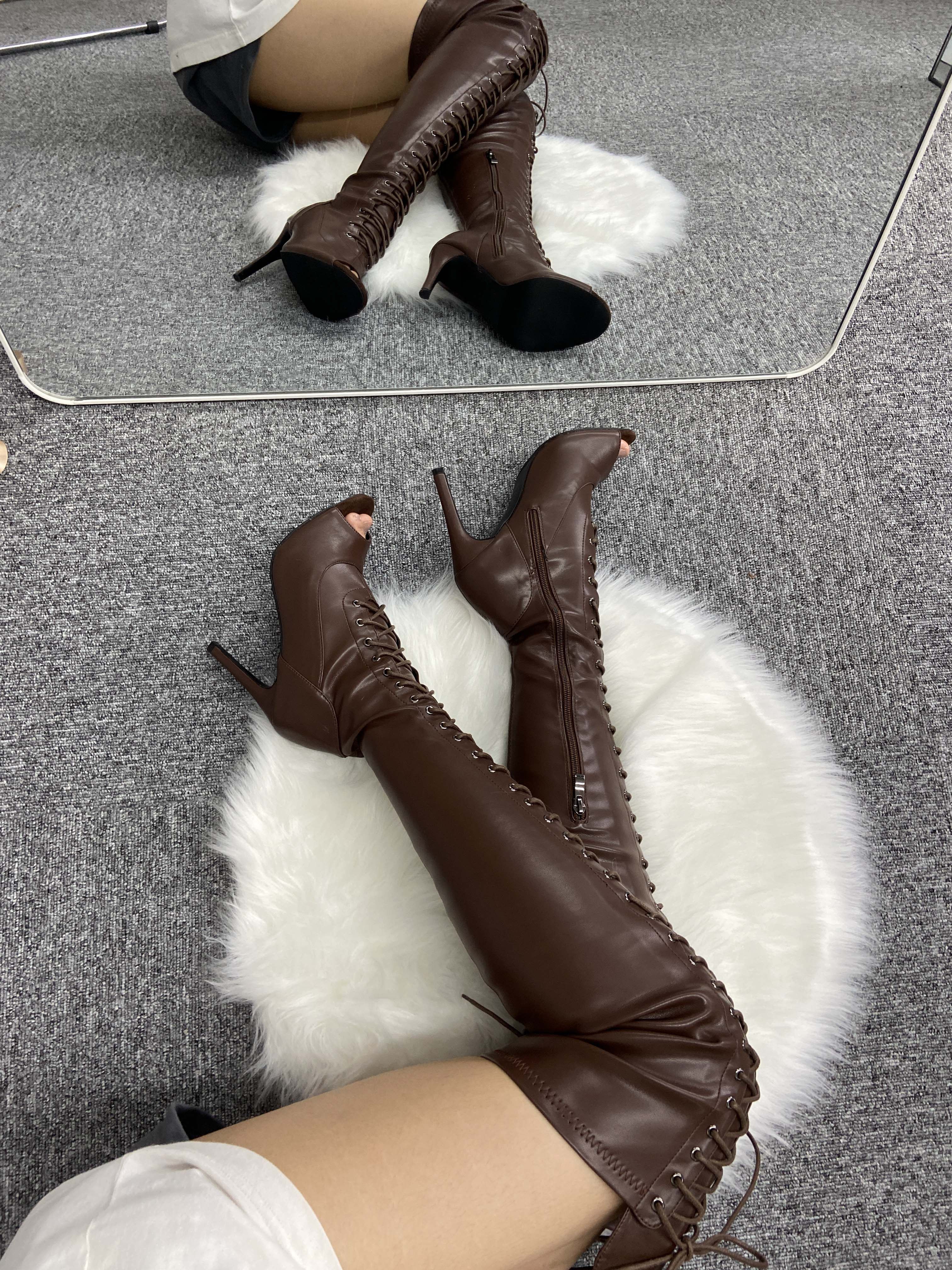 系帶魚嘴女爵士舞專用跳舞高跟鞋彈力過膝長筒性感HEELS舞鞋jazz