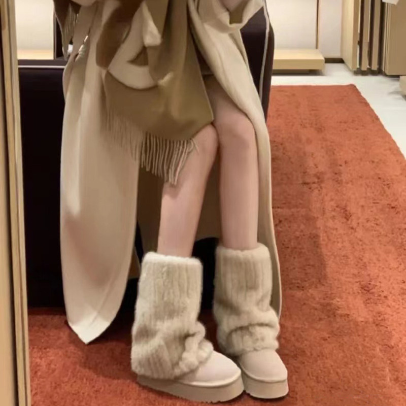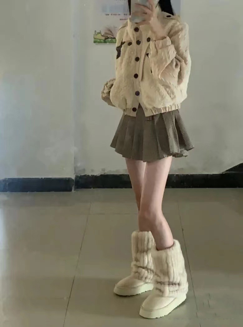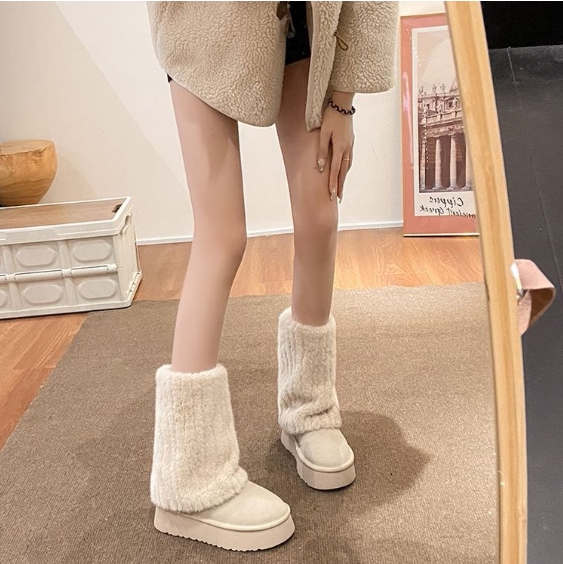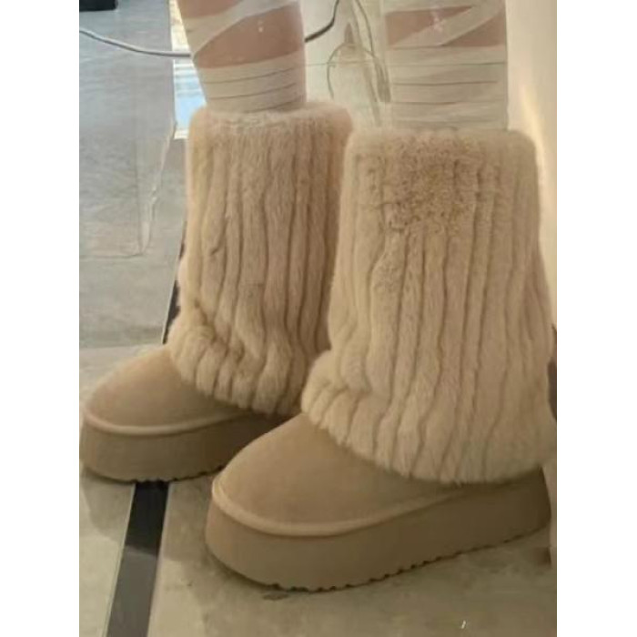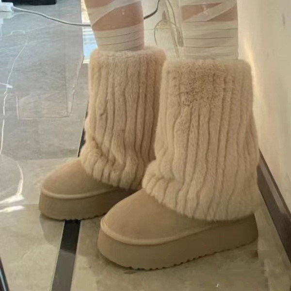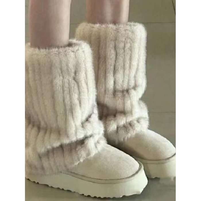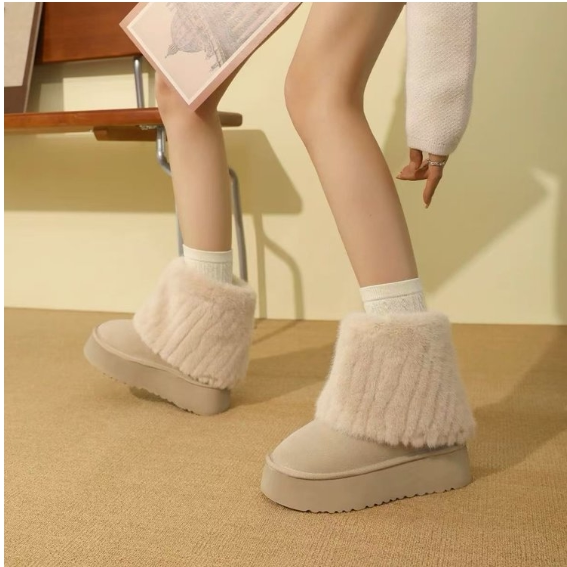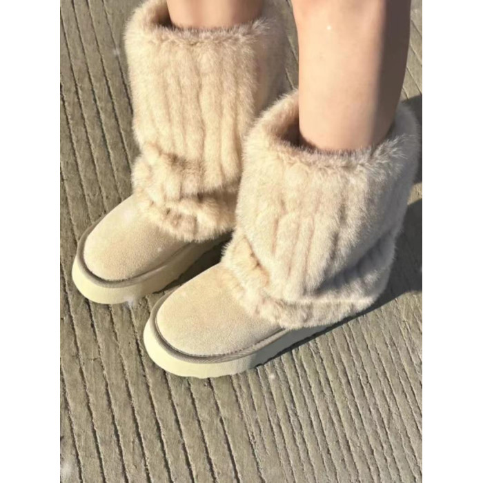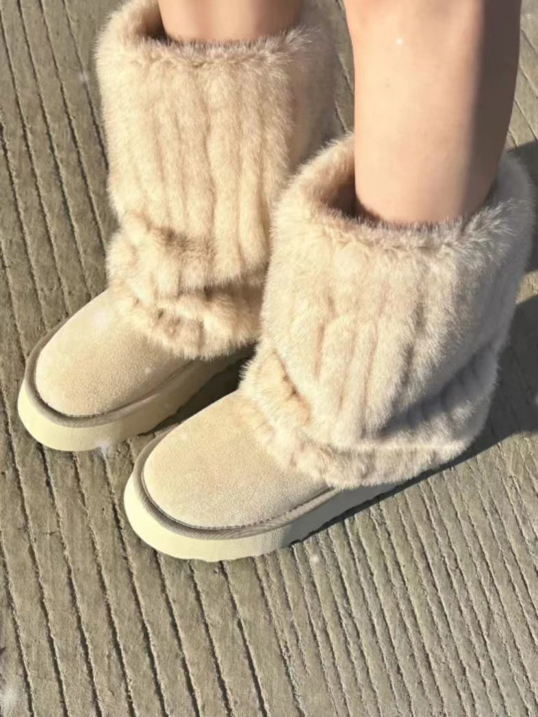 冰島之戀‘雪地靴女2025秋冬新款仿貂毛加絨毛毛鞋真皮厚底短靴子