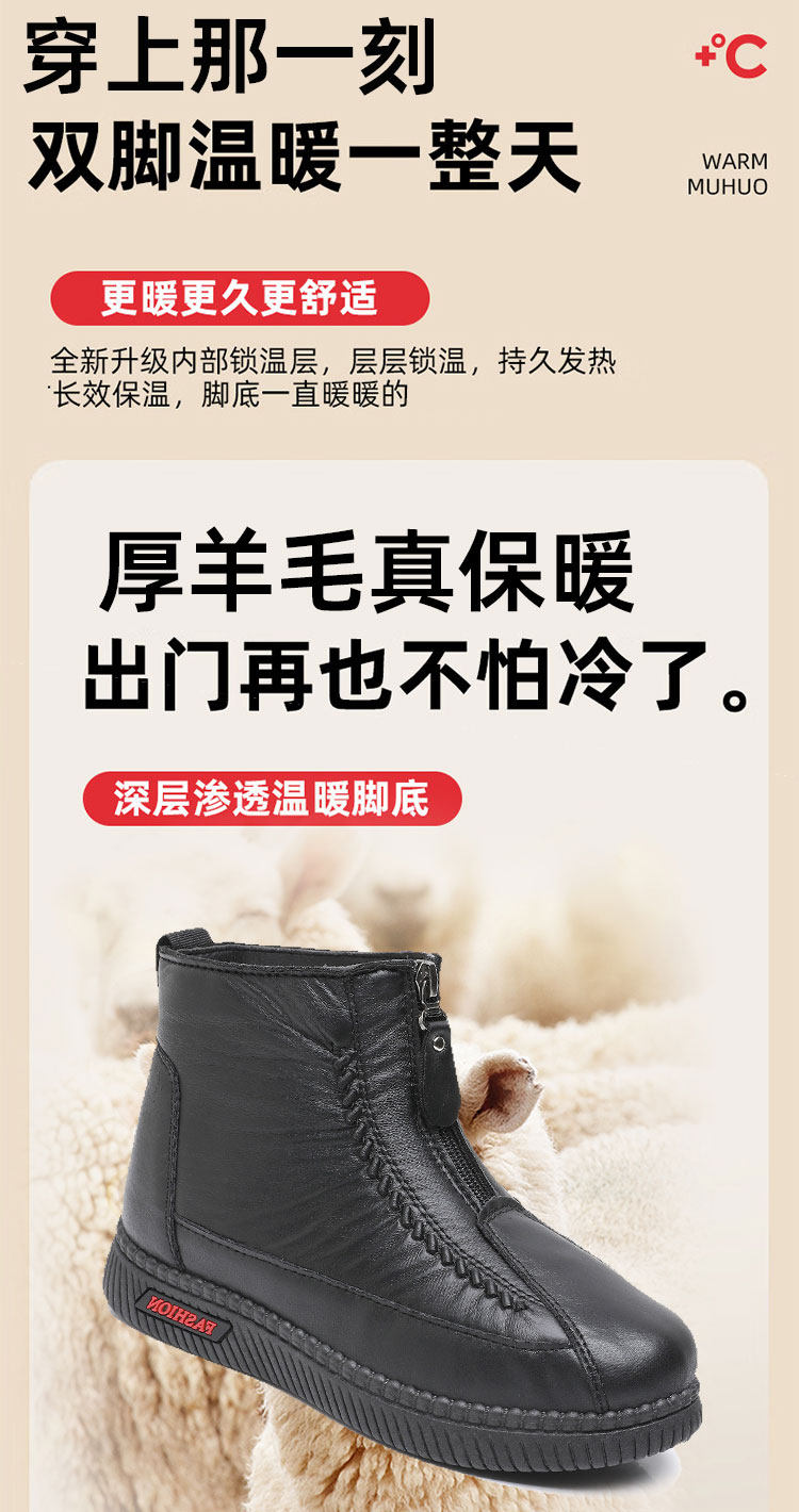 綿羊毛冬季老北京布鞋女加絨保暖防滑高幫中老年棉鞋媽媽鞋雪地靴