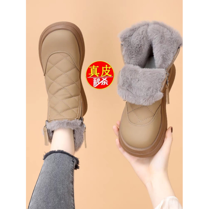 特價真皮雪地靴女2025冬季新款加絨保暖防滑短靴東北大棉軟底棉靴