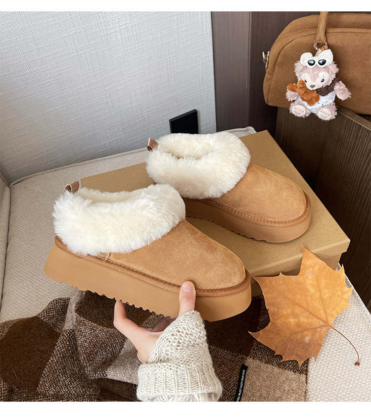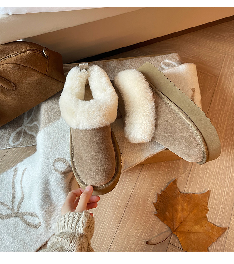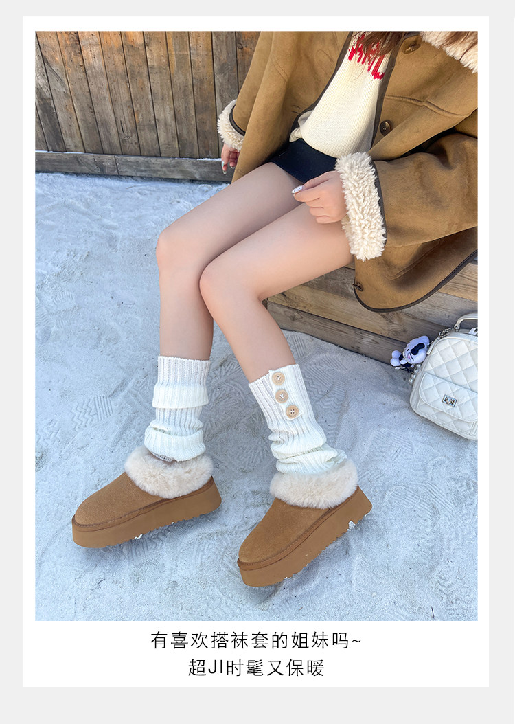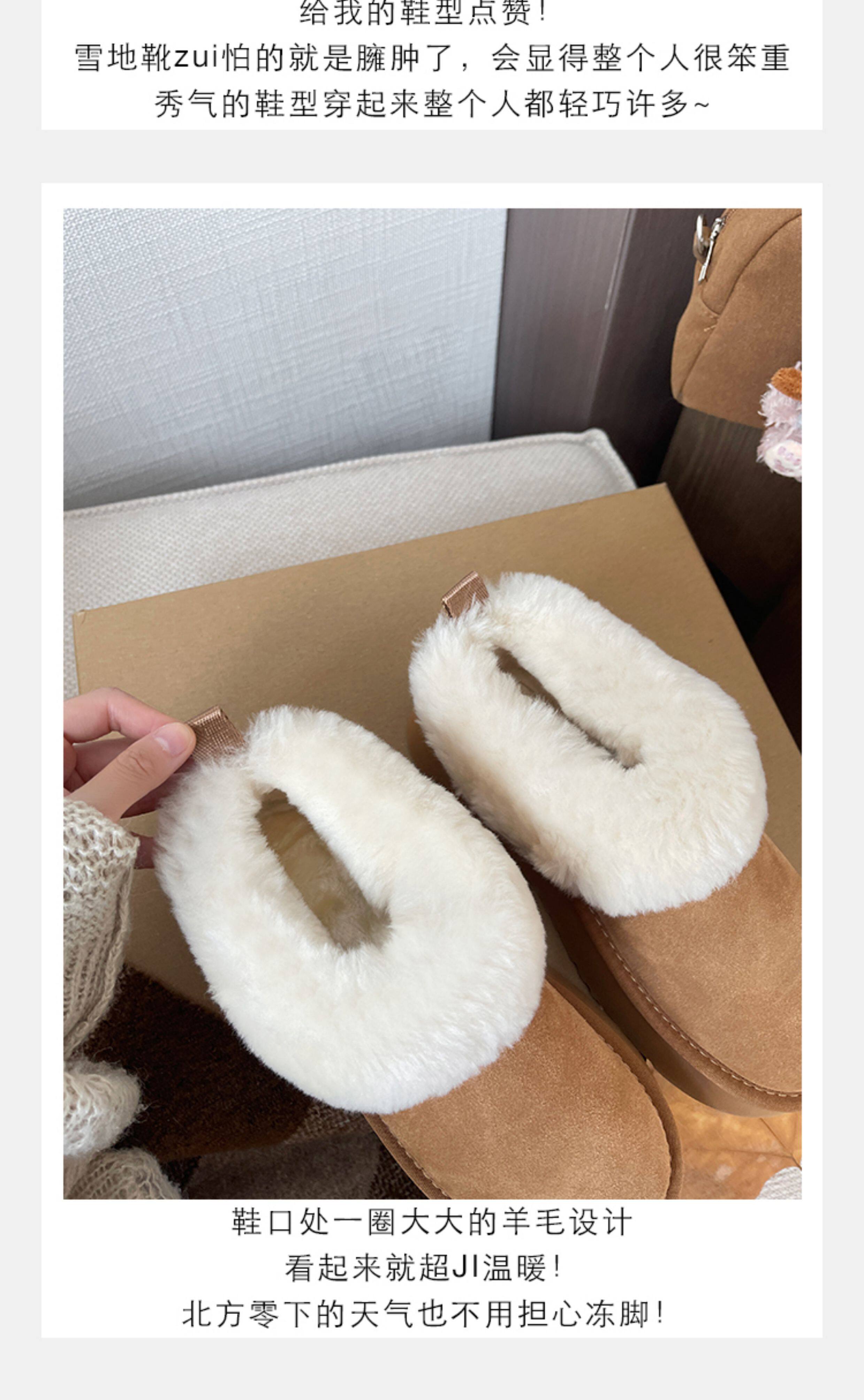 7cm內增高小個子厚底雪地靴女冬季新款羊毛保暖厚絨短靴女毛毛靴