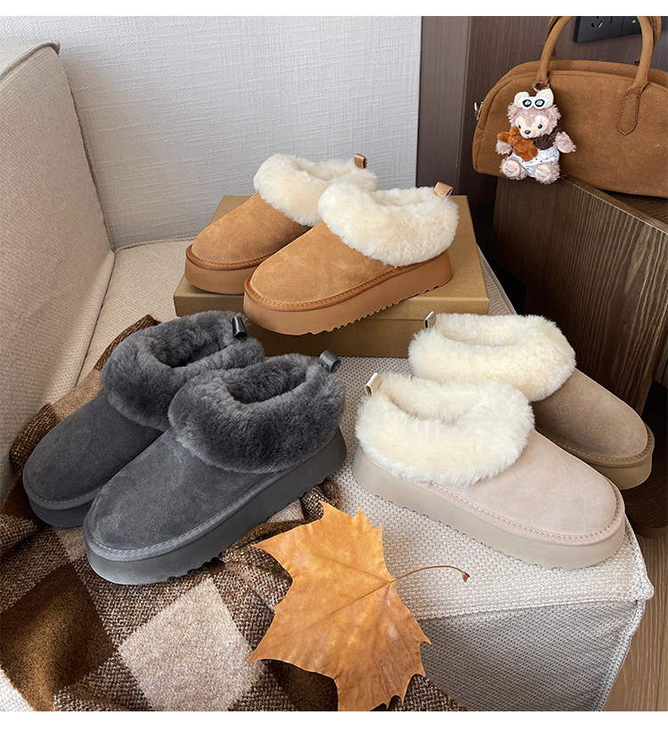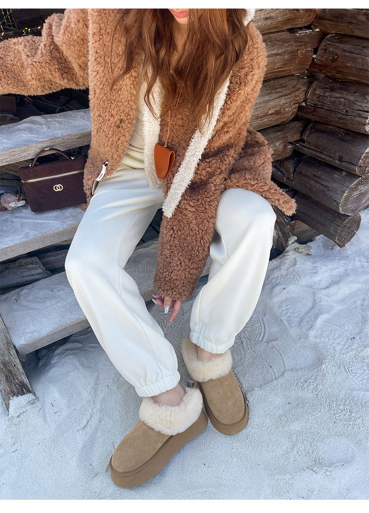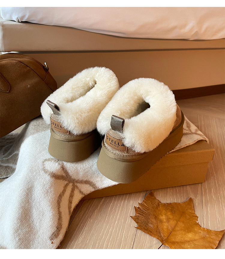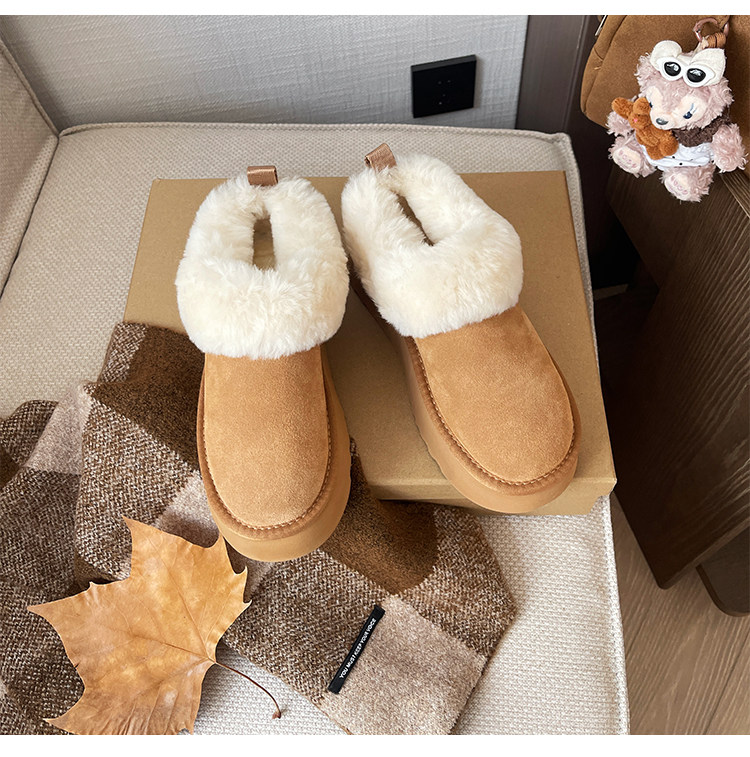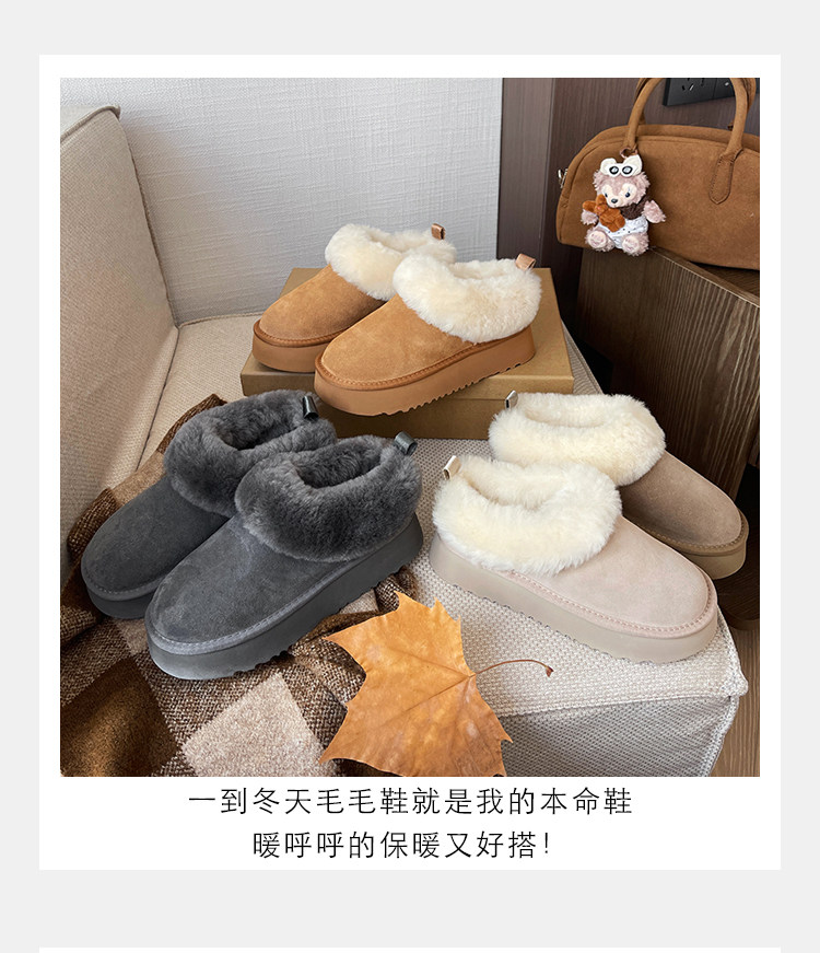 7cm內增高小個子厚底雪地靴女冬季新款羊毛保暖厚絨短靴女毛毛靴