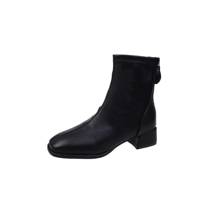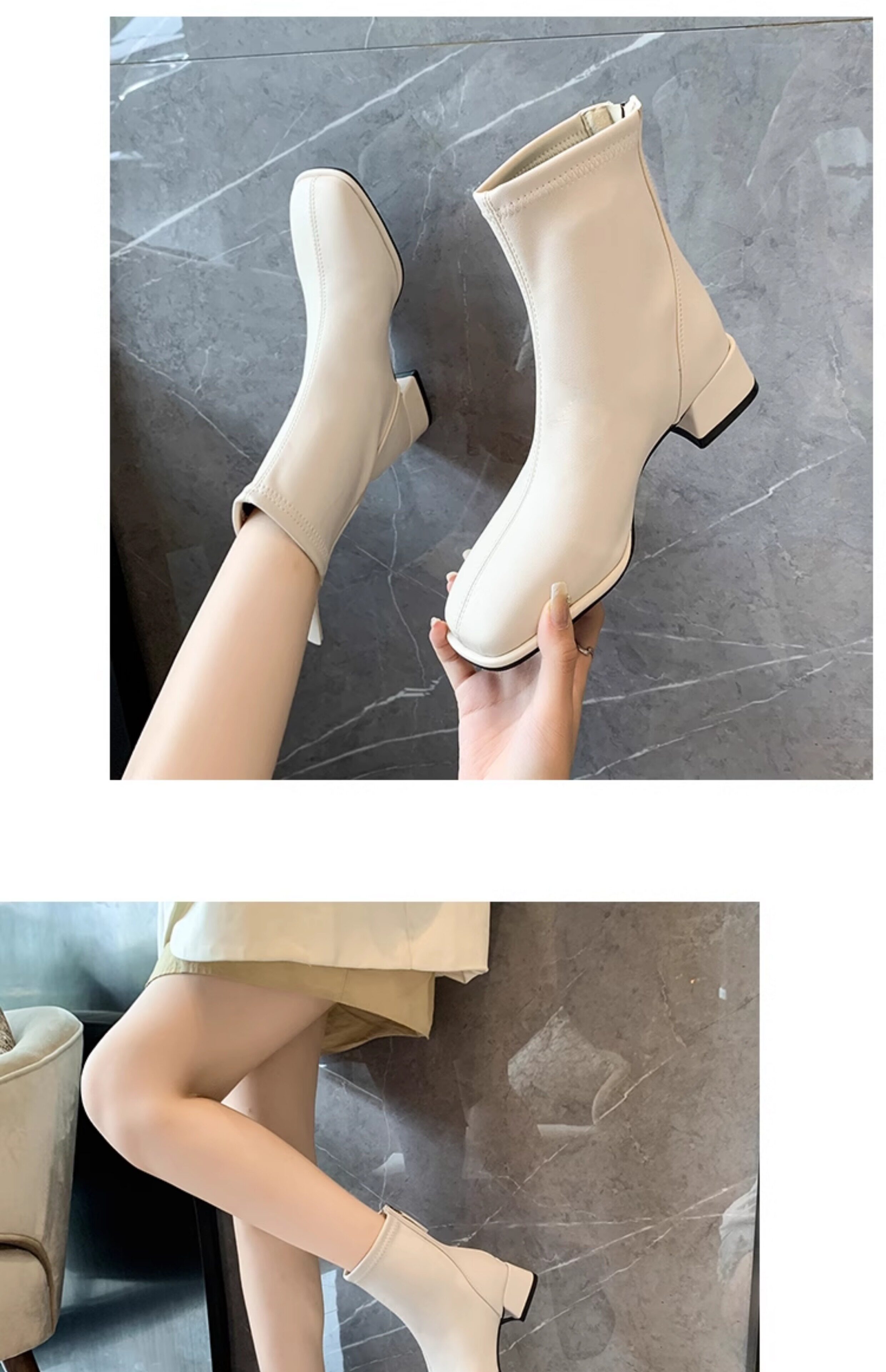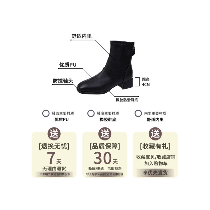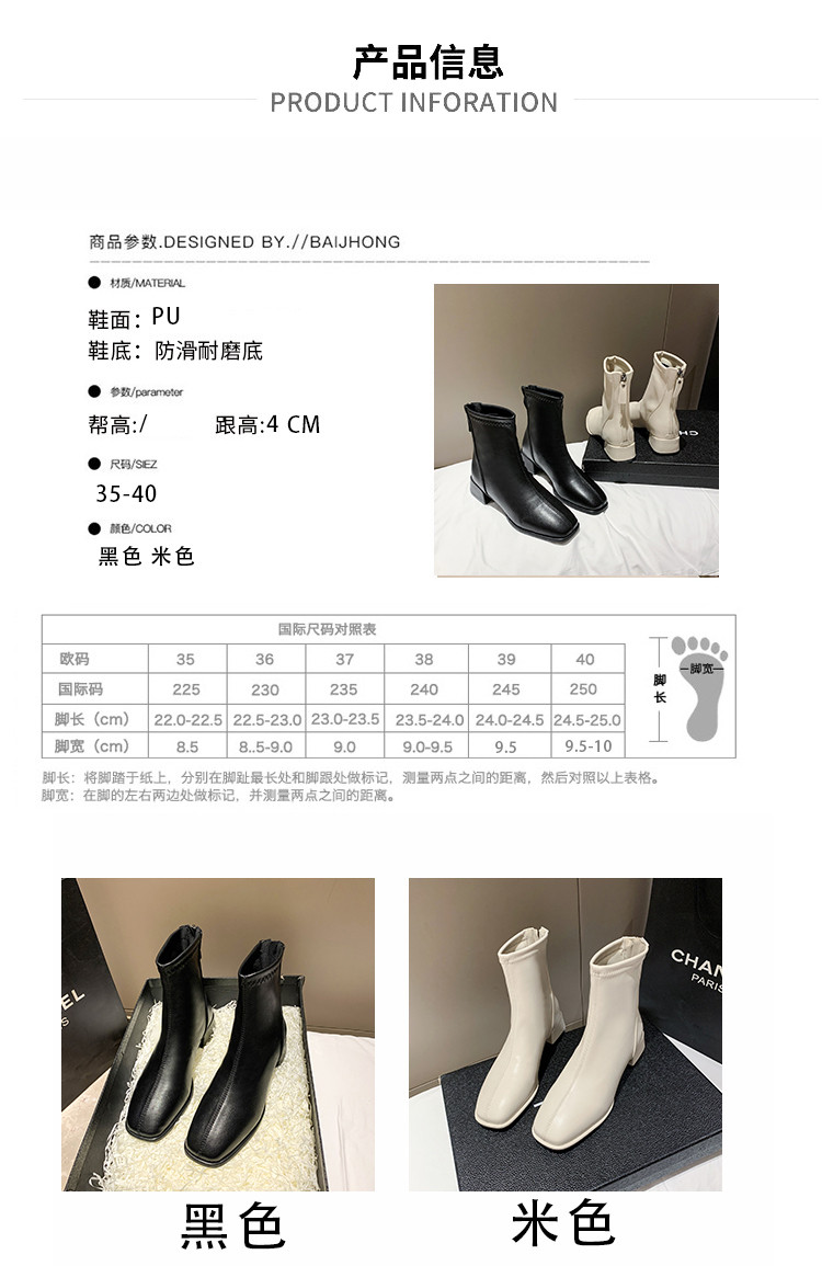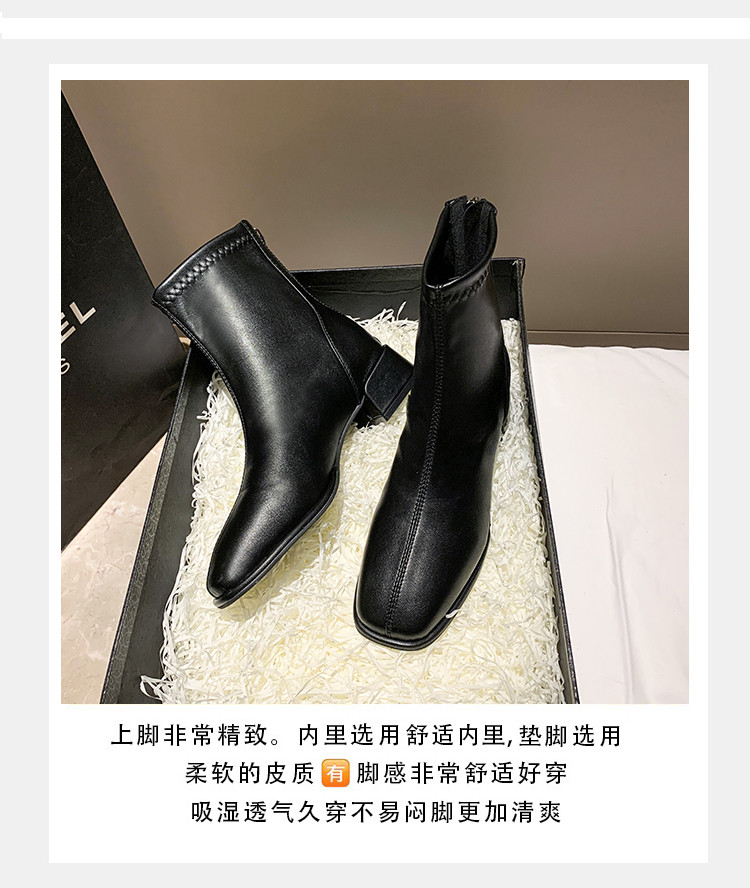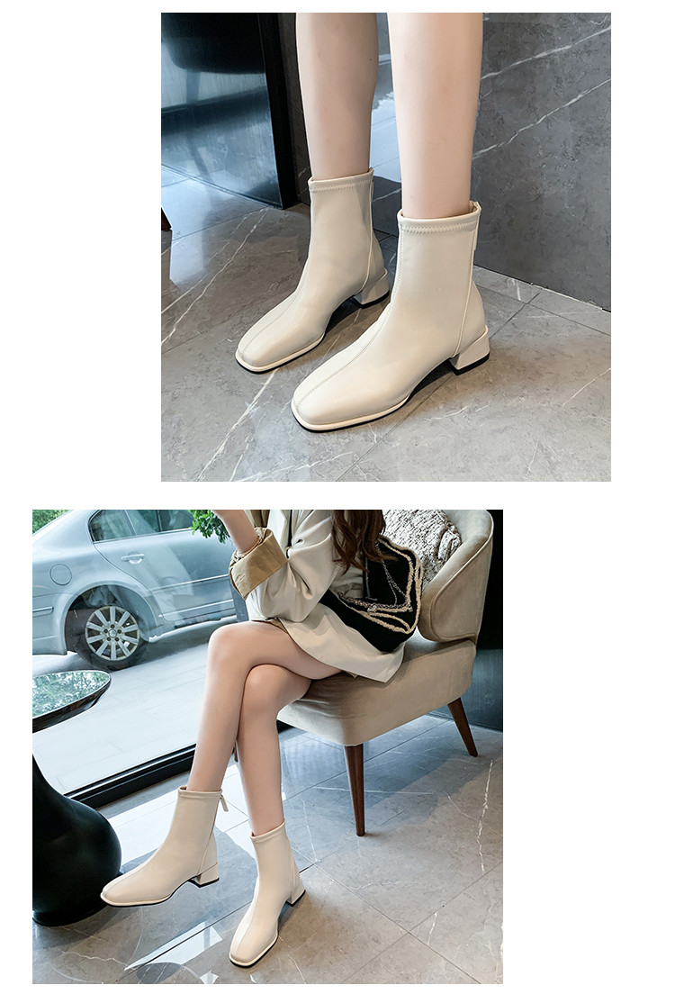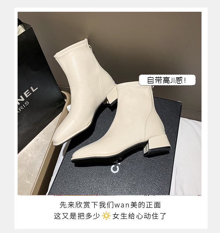 馬丁靴女秋冬2025新款方頭粗跟白色高跟鞋彈力瘦瘦靴百搭加絨短靴