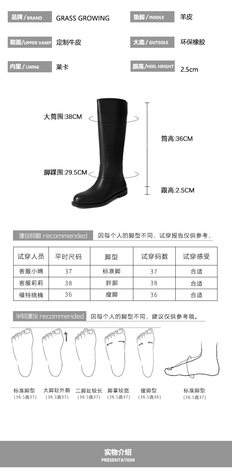 牛皮版~真皮簡約圓頭低跟直筒騎士靴女黑色百搭顯瘦長筒靴高筒靴