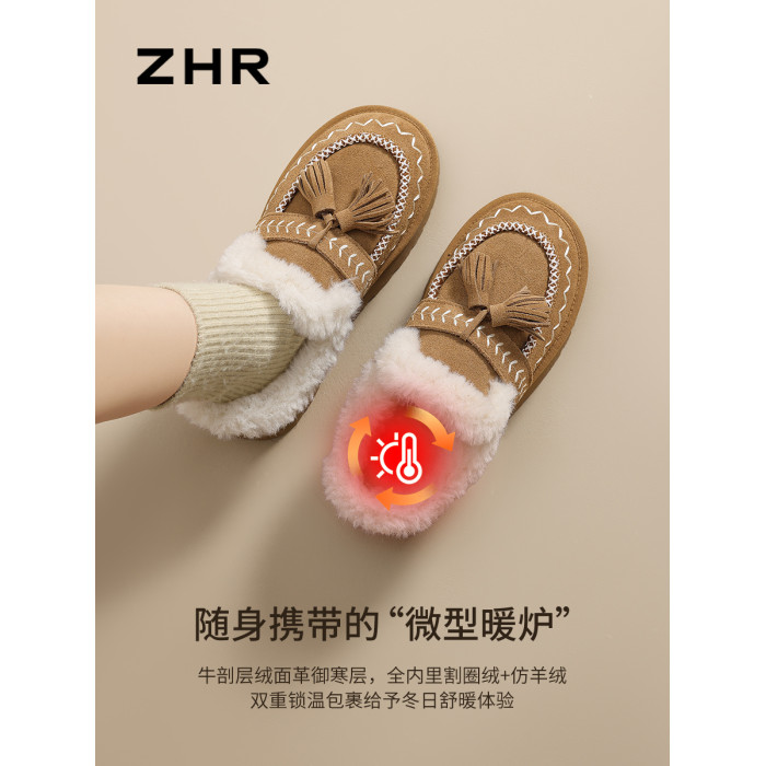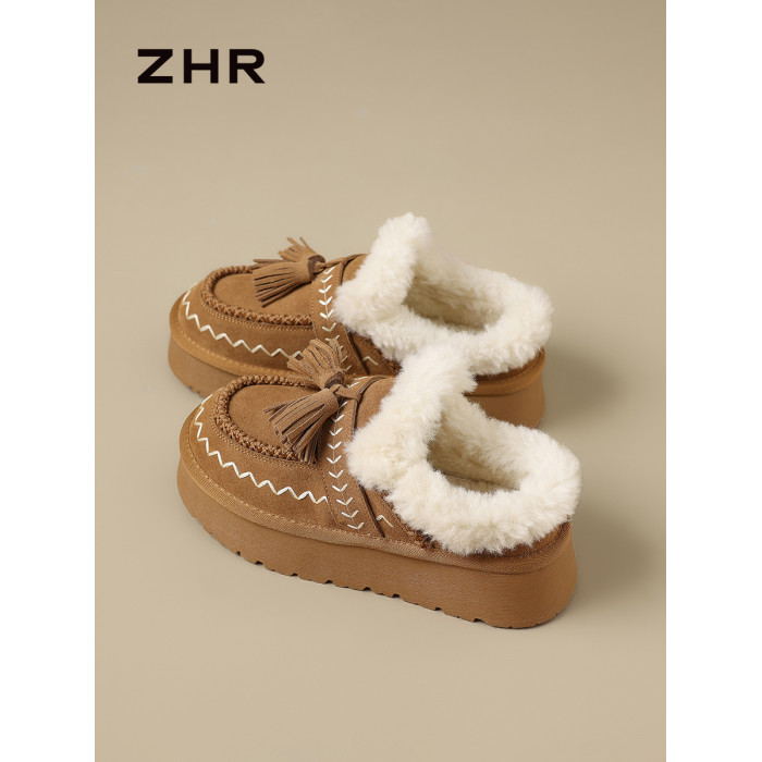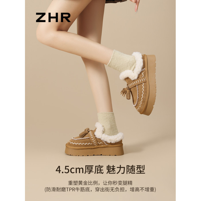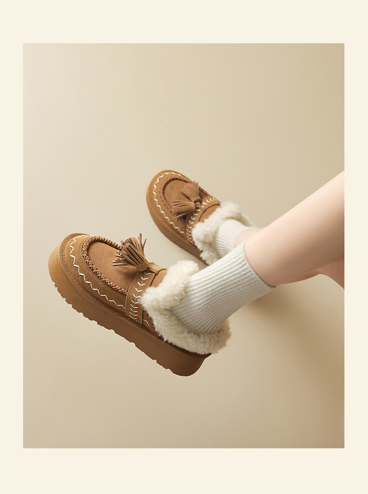加絨保暖雪地靴女2025新款冬季厚底增高勃肯鞋一腳蹬保暖毛毛棉鞋