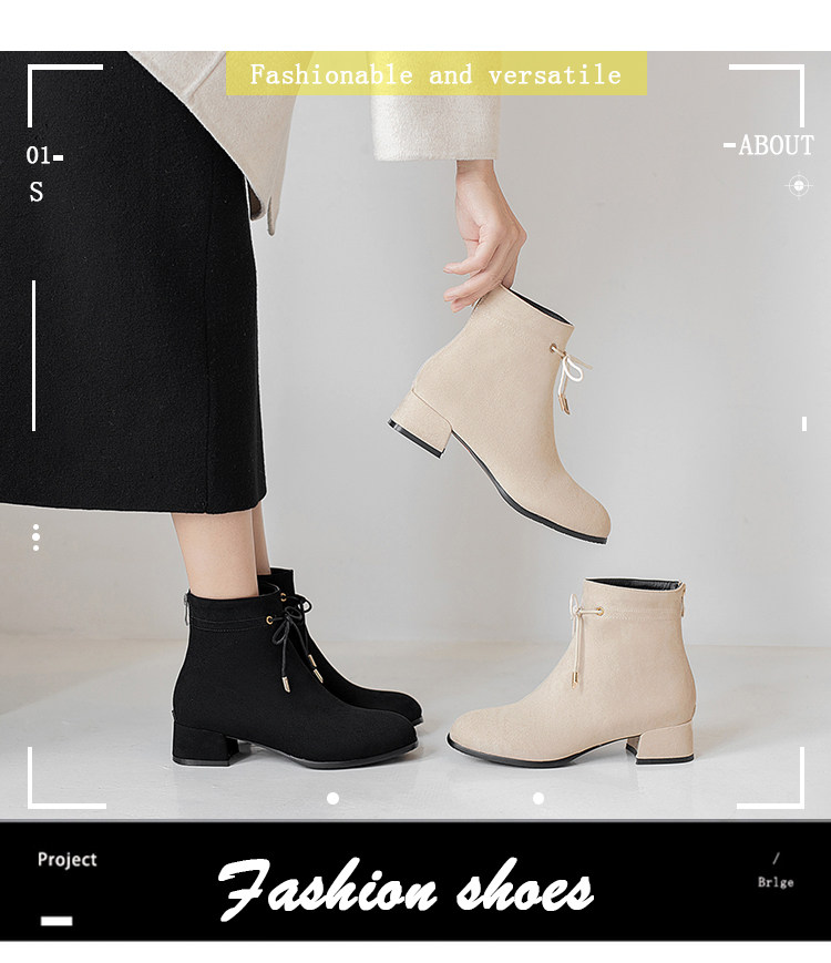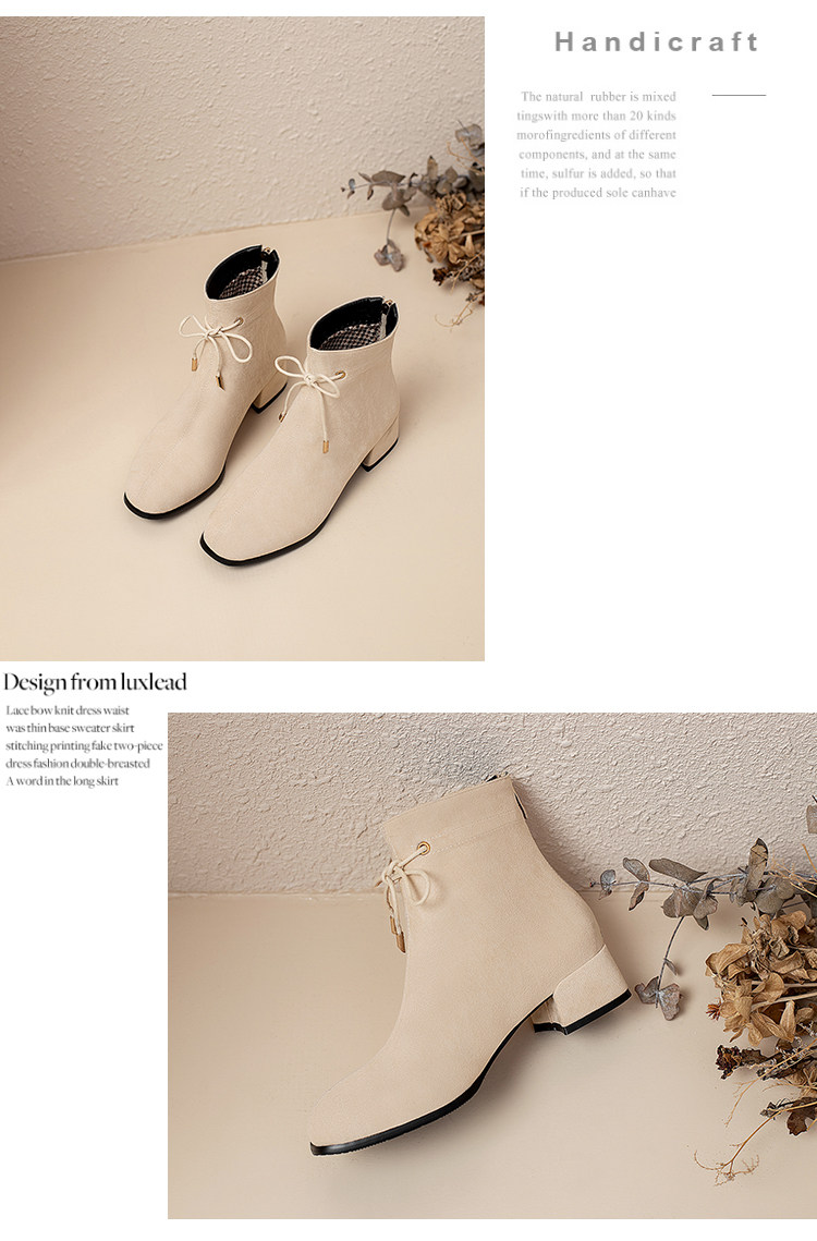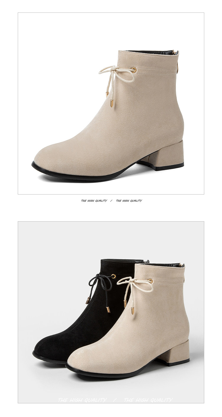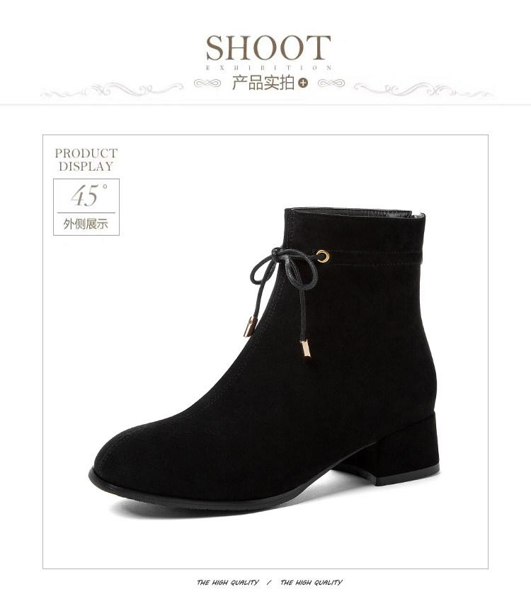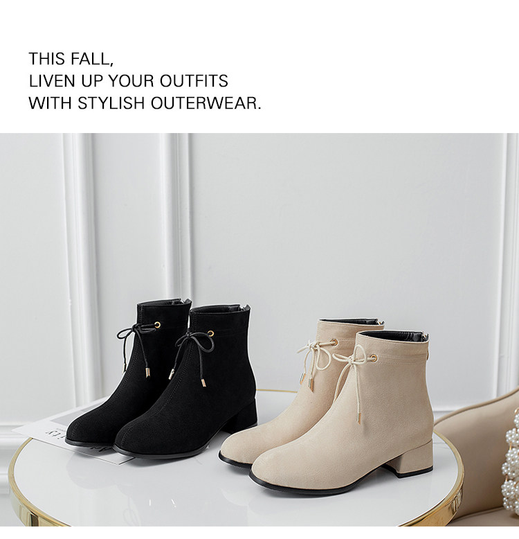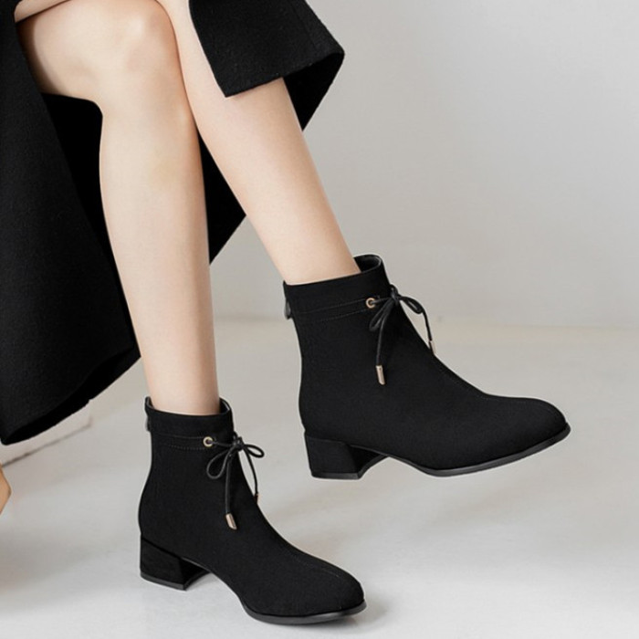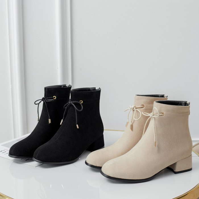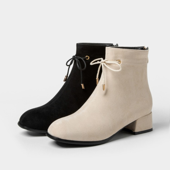 甜美蝴蝶結後拉鍊粗中跟靴子矮跟短靴大碼43 44 45 46 47 48碼鞋