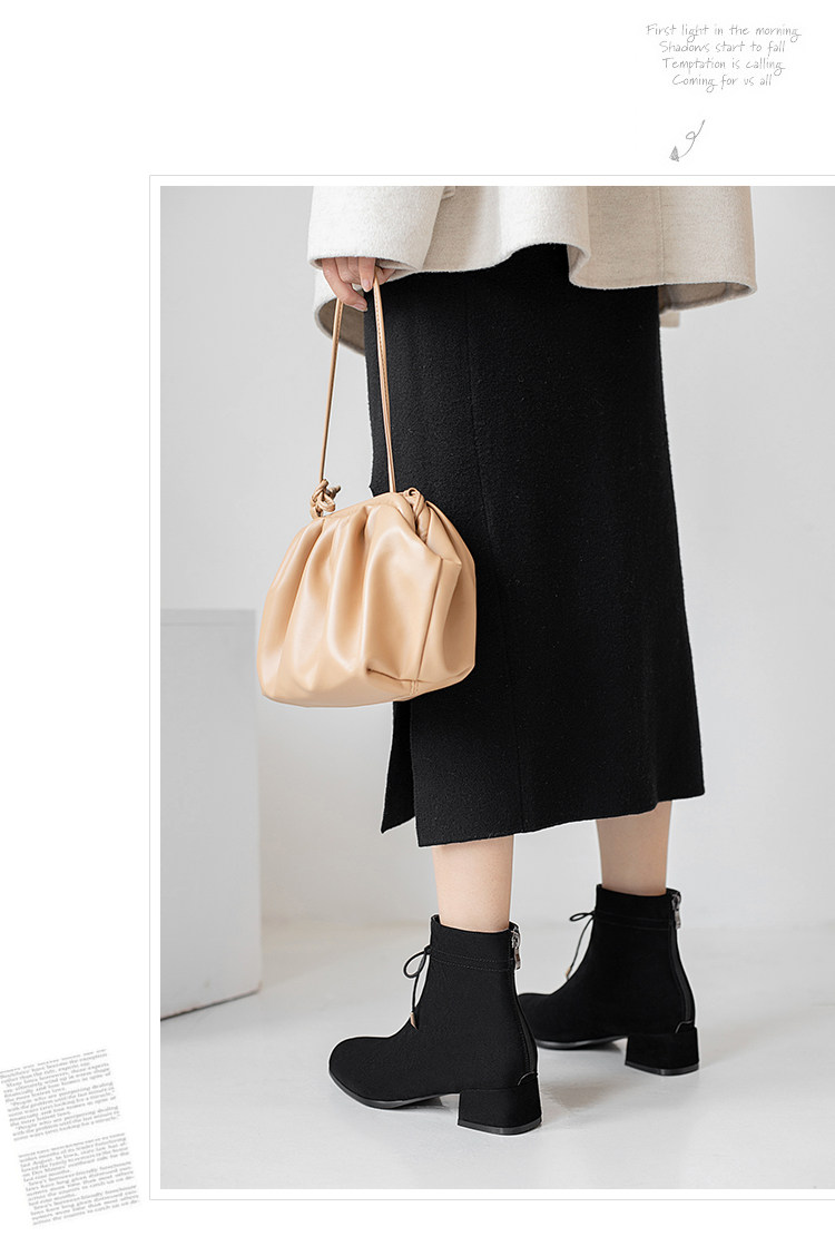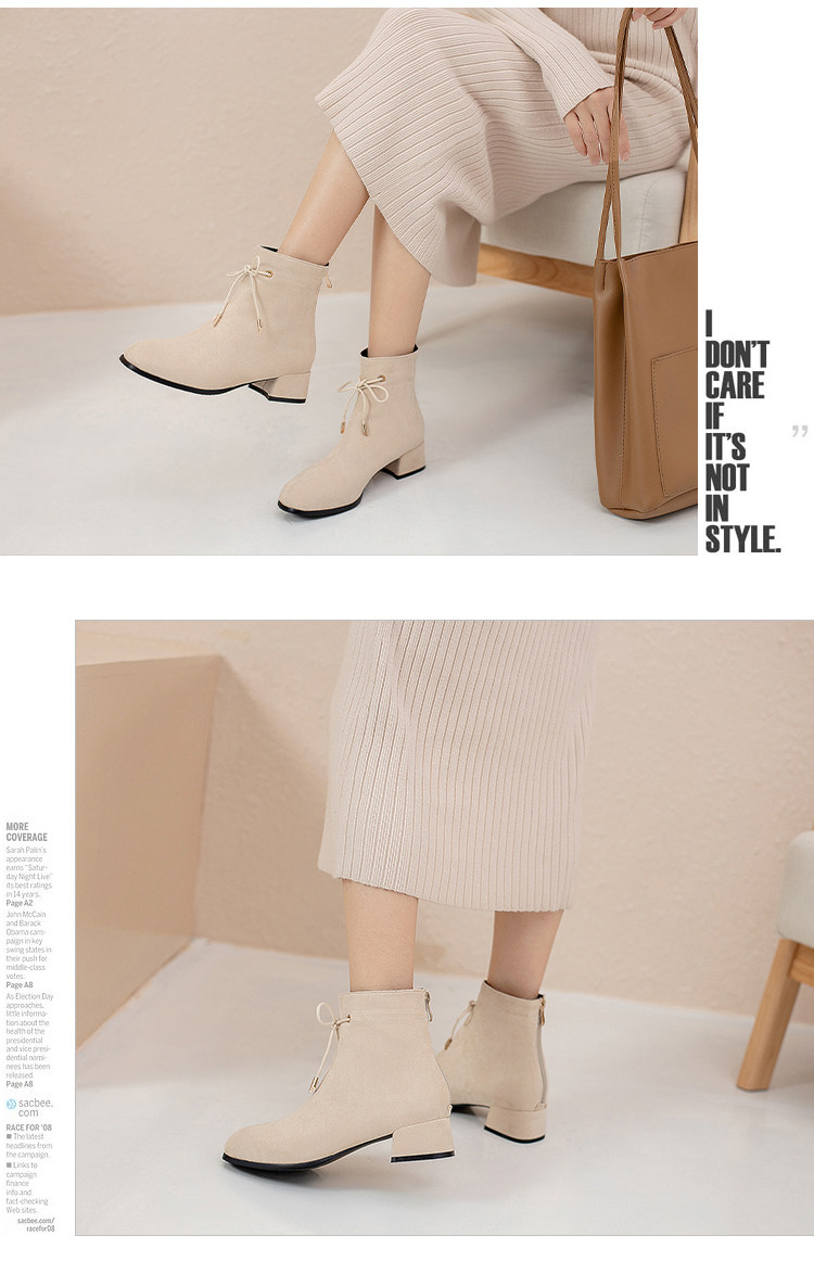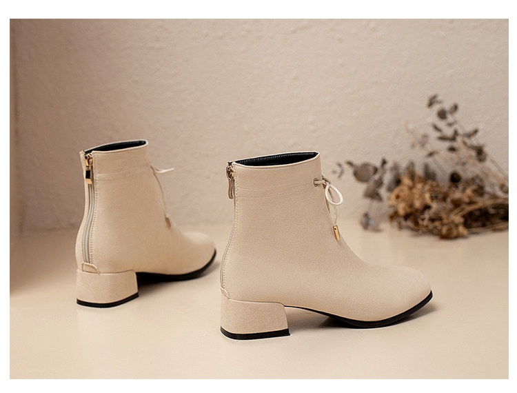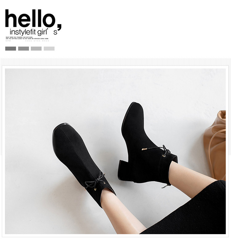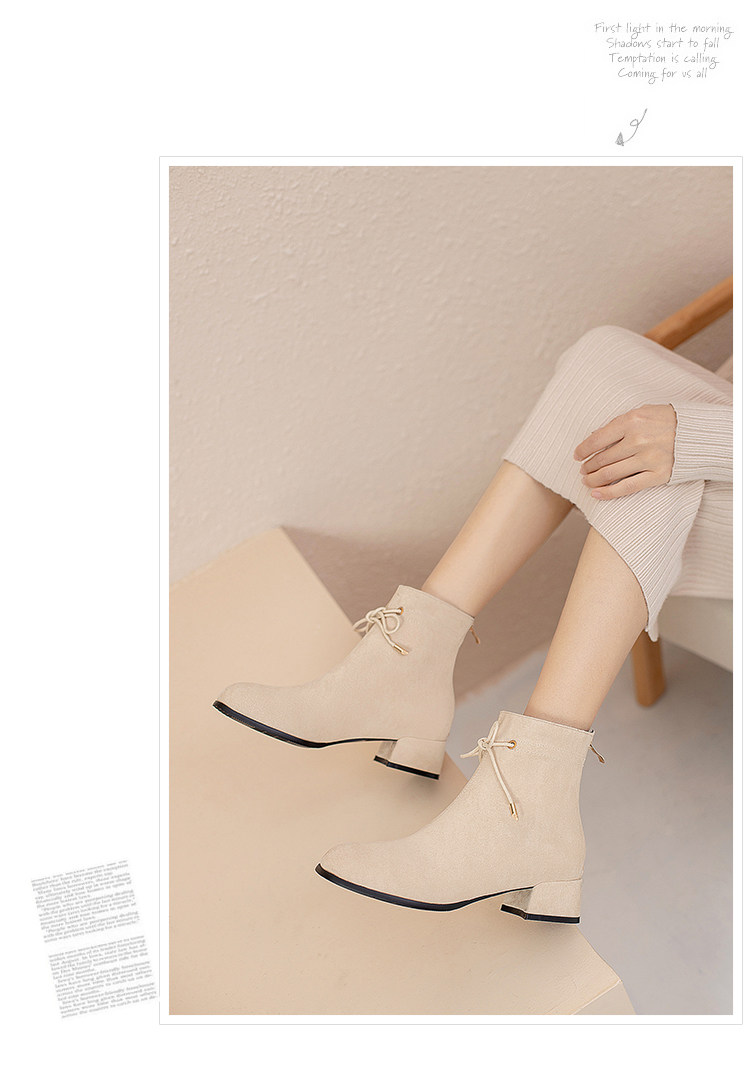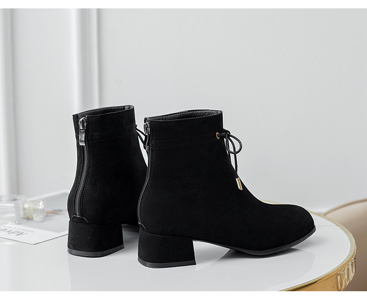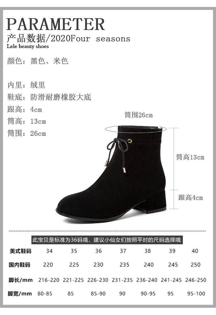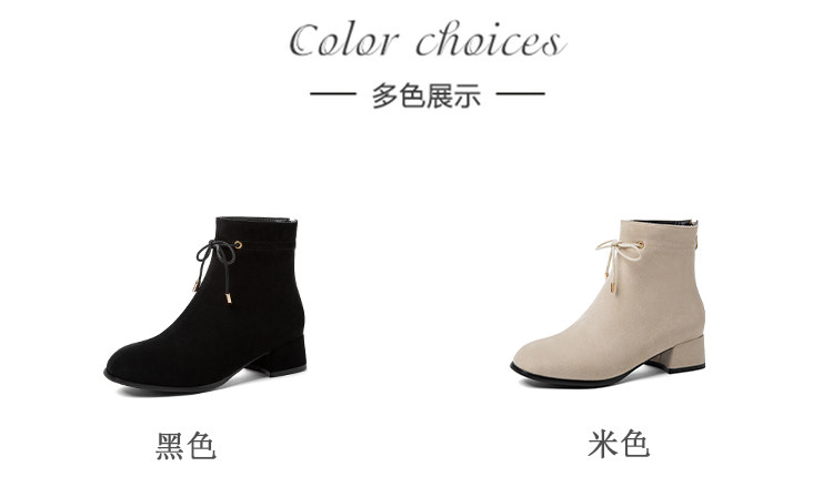 甜美蝴蝶結後拉鍊粗中跟靴子矮跟短靴大碼43 44 45 46 47 48碼鞋