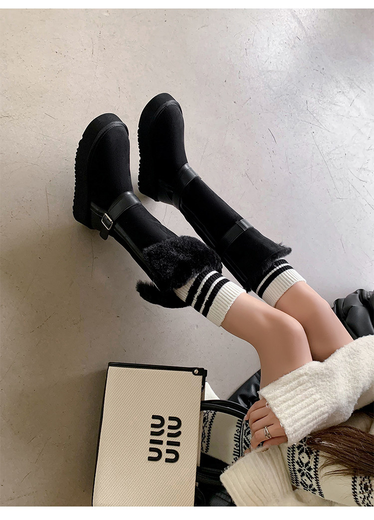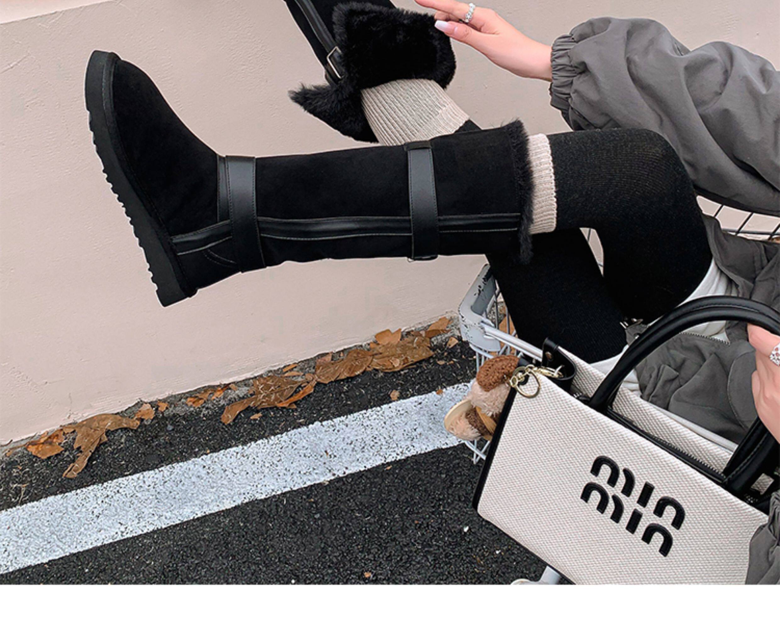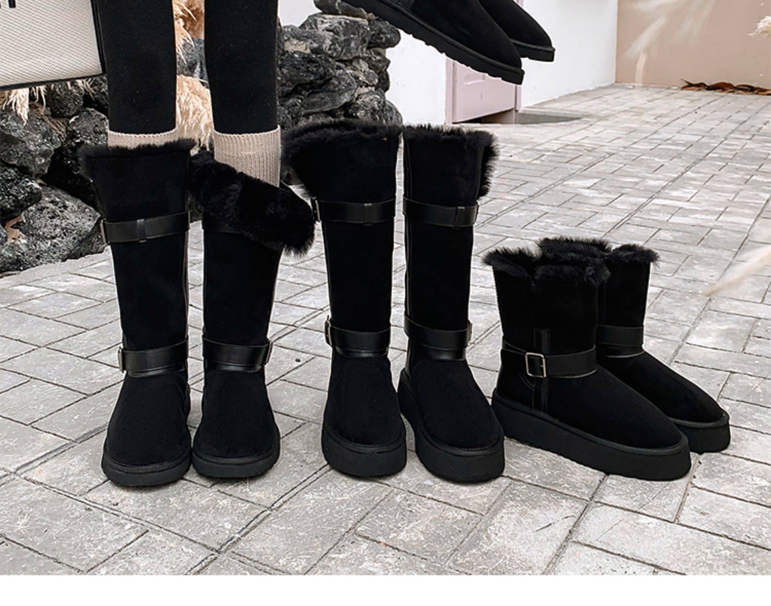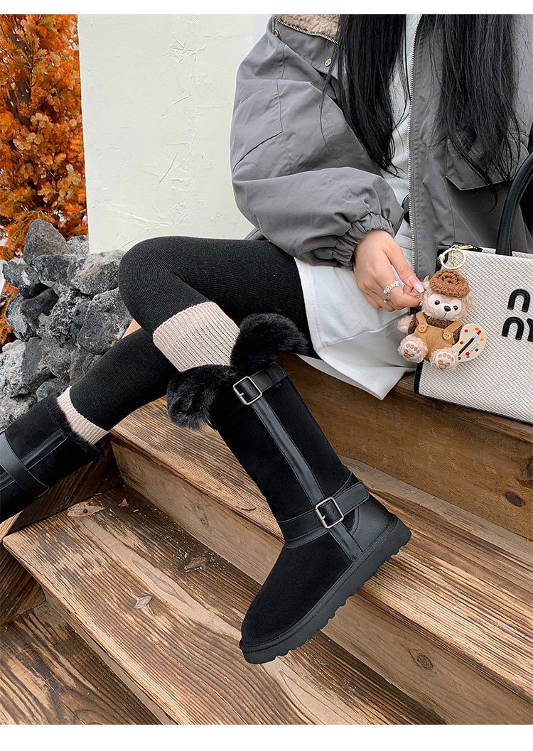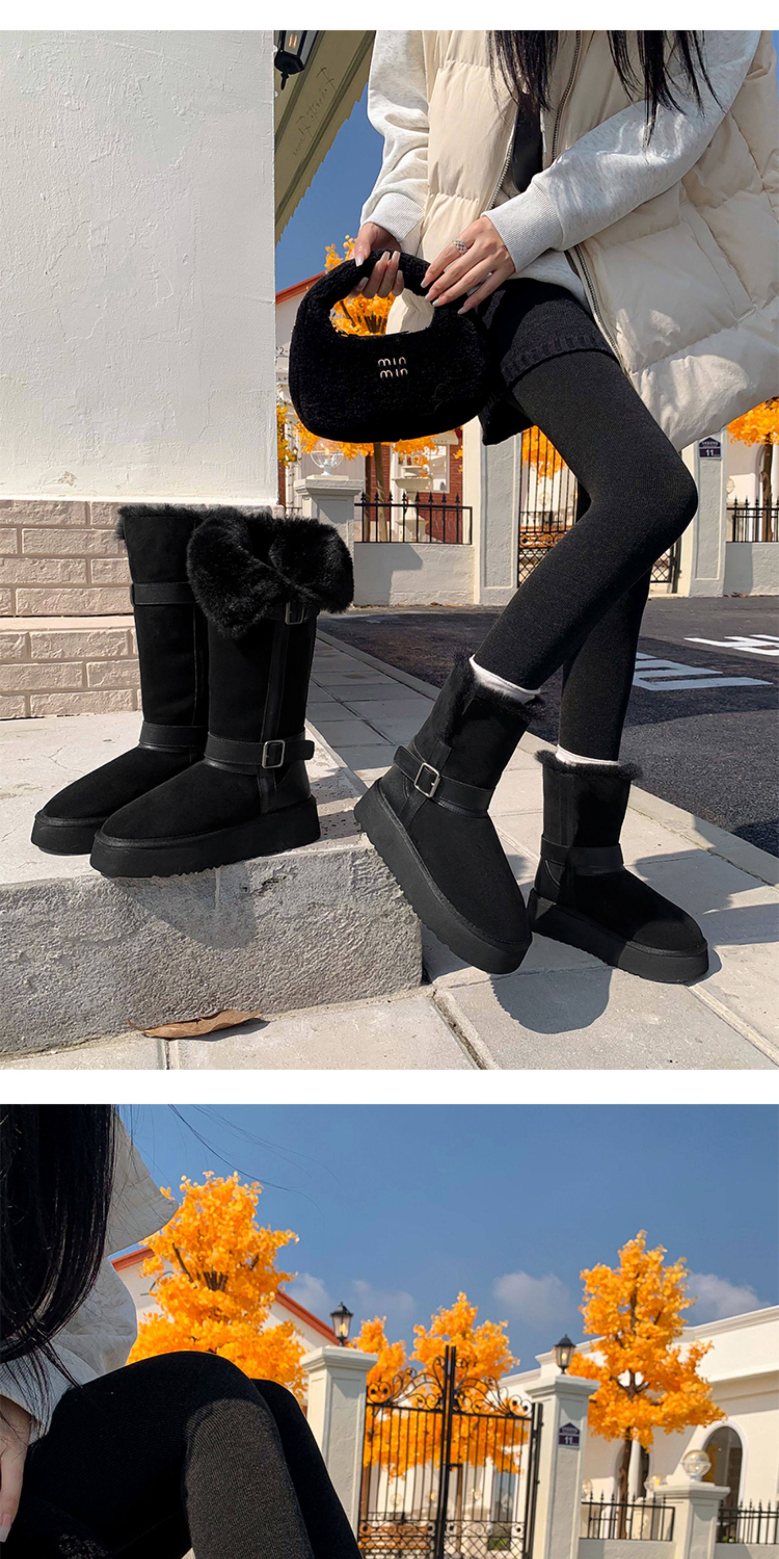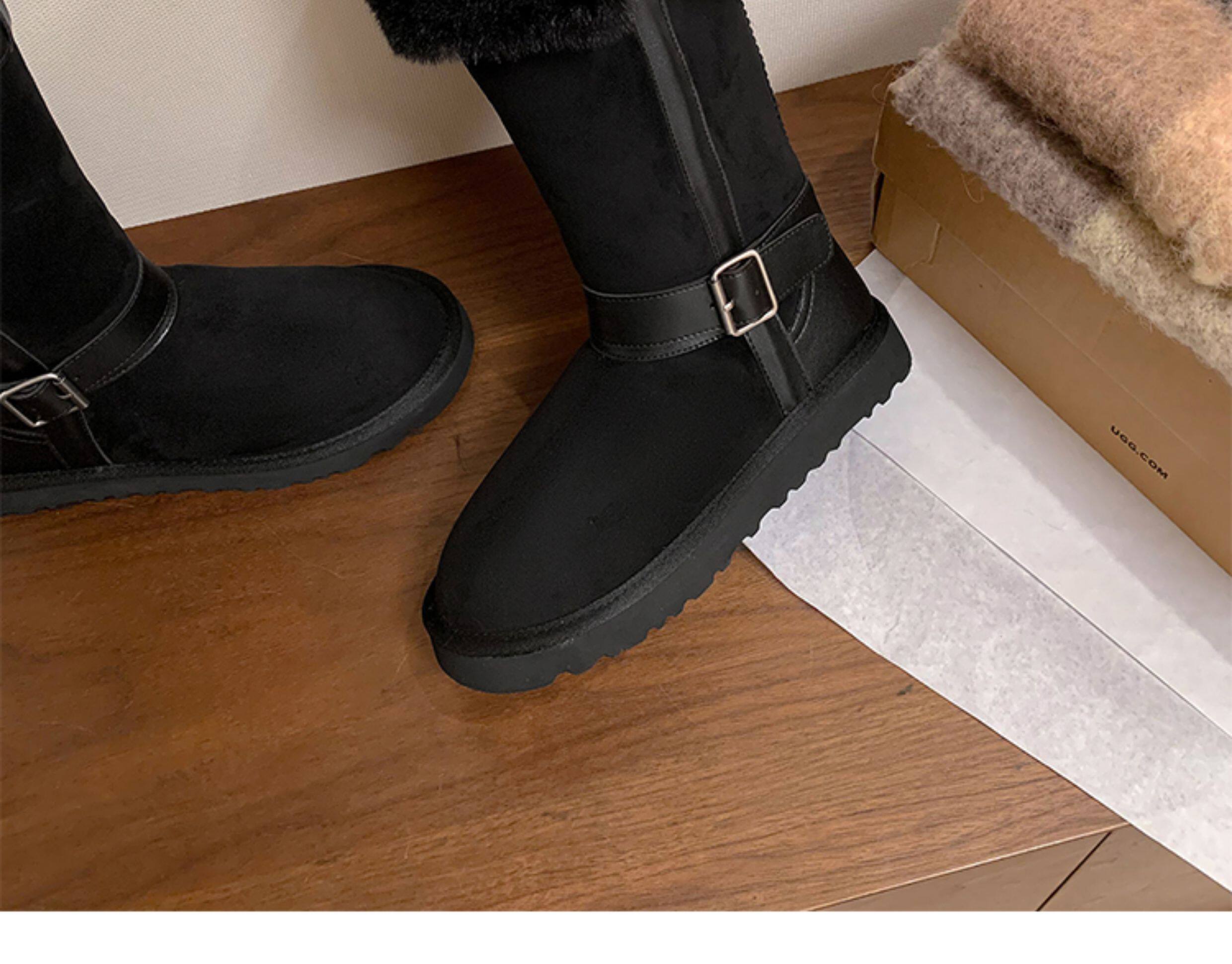 不二橘 秋冬皮帶釦加絨長筒雪地靴厚底防滑保暖毛毛靴百搭舒適