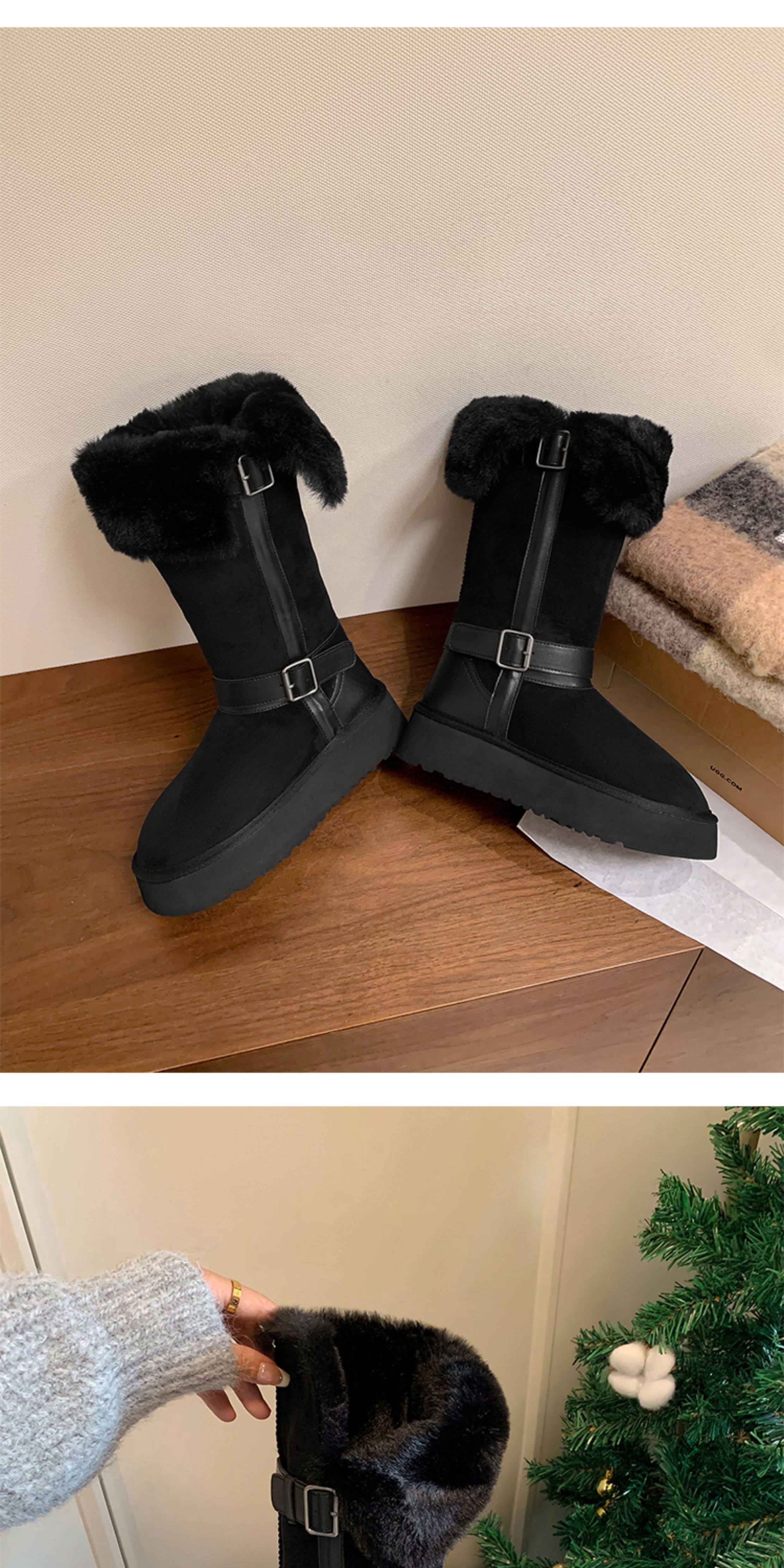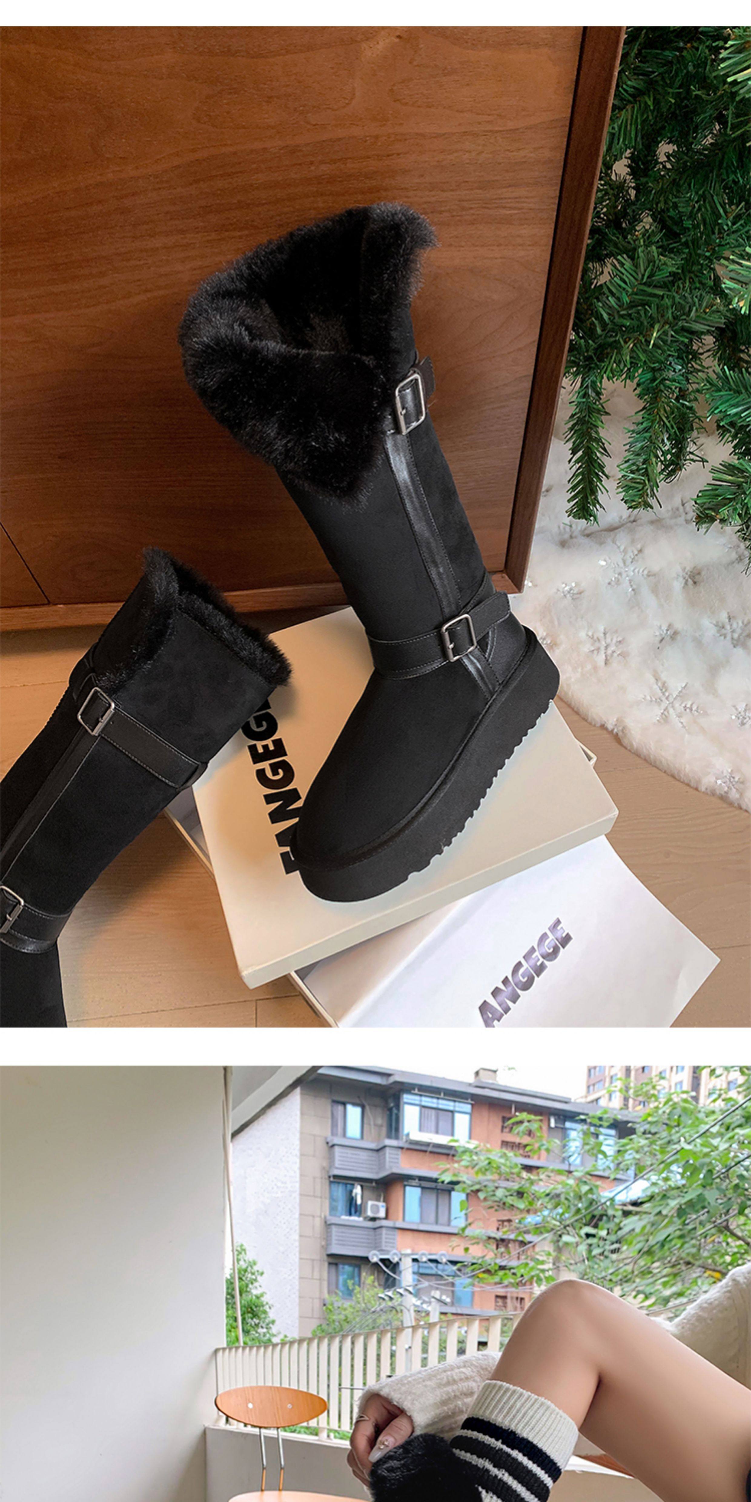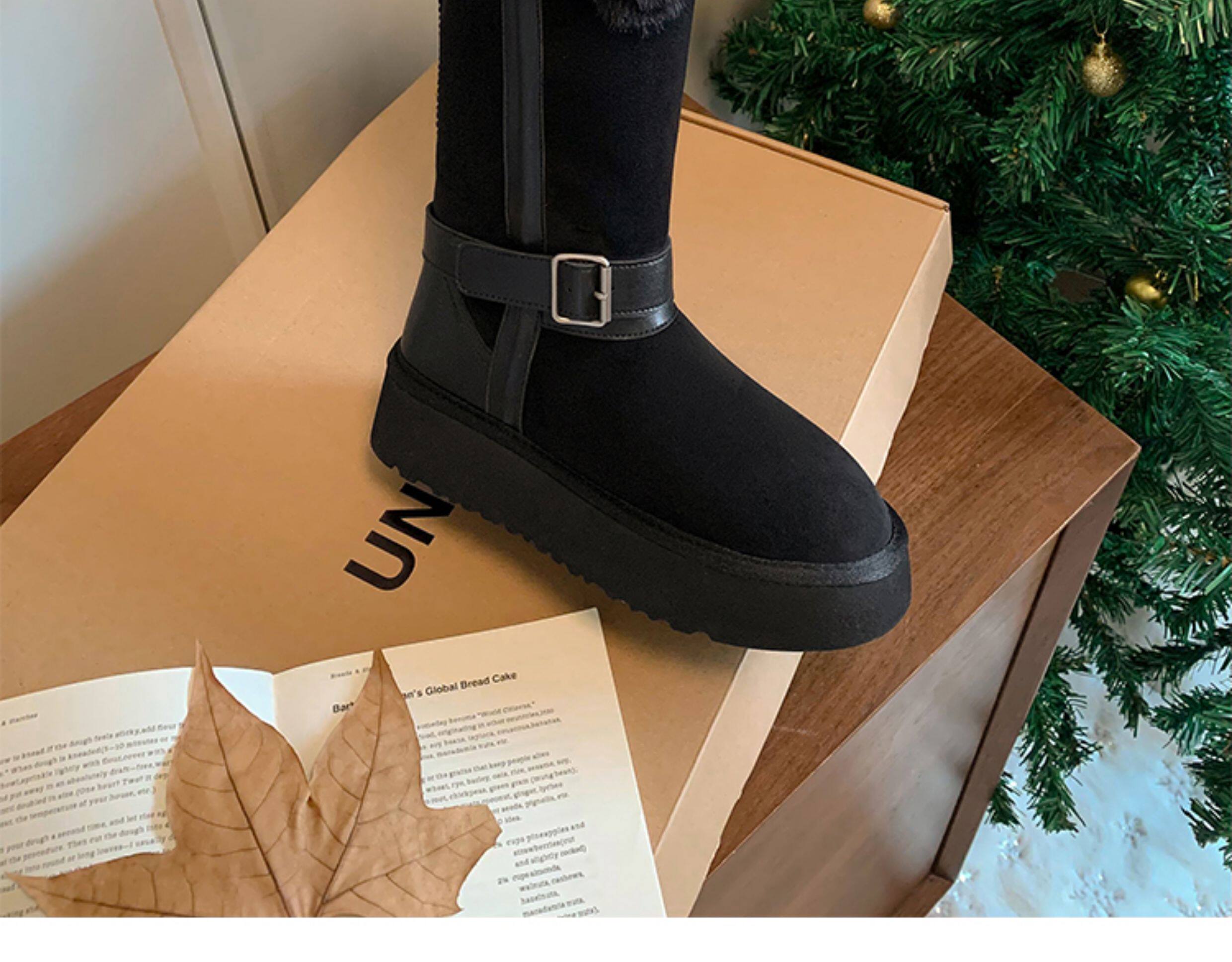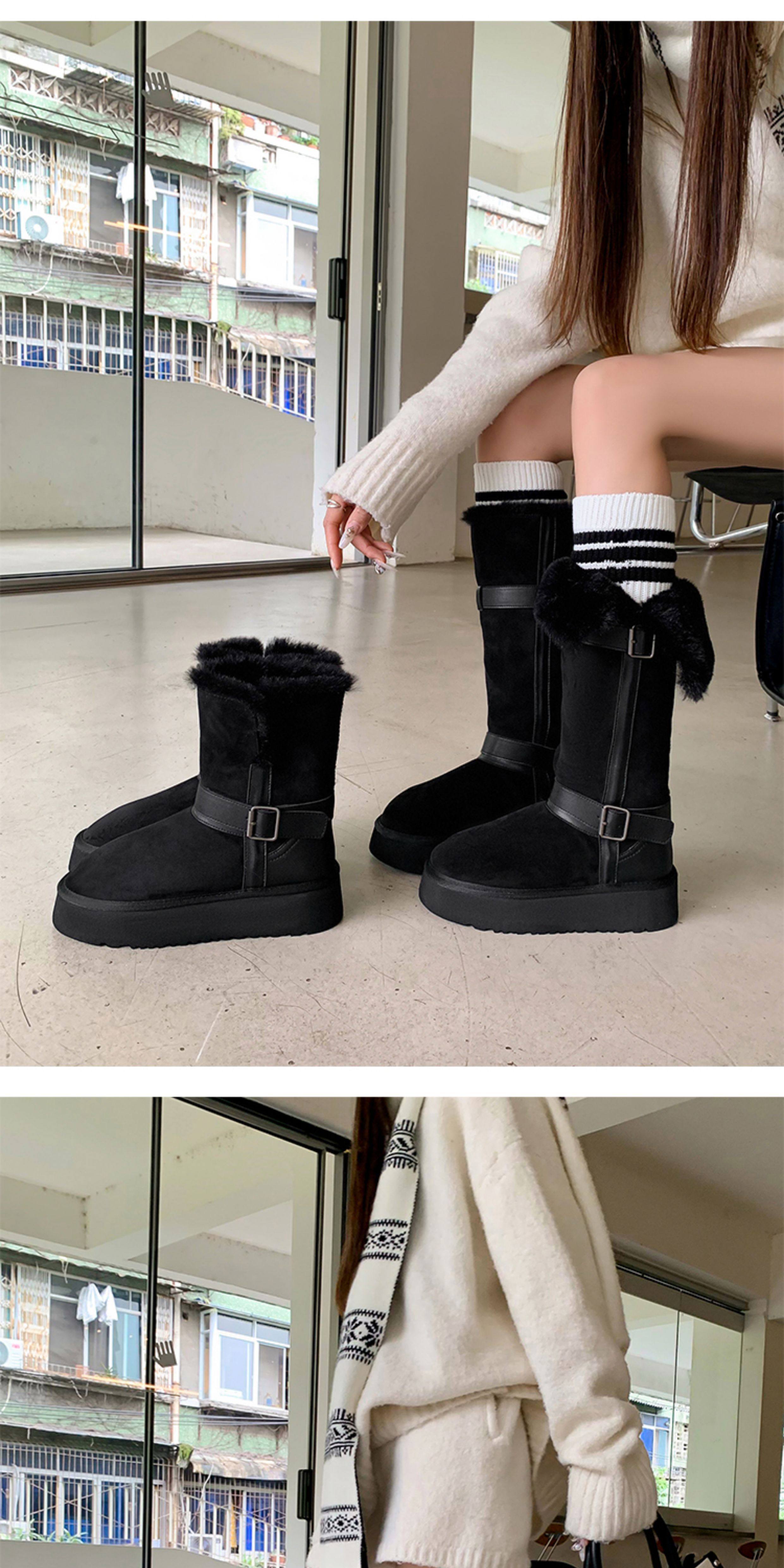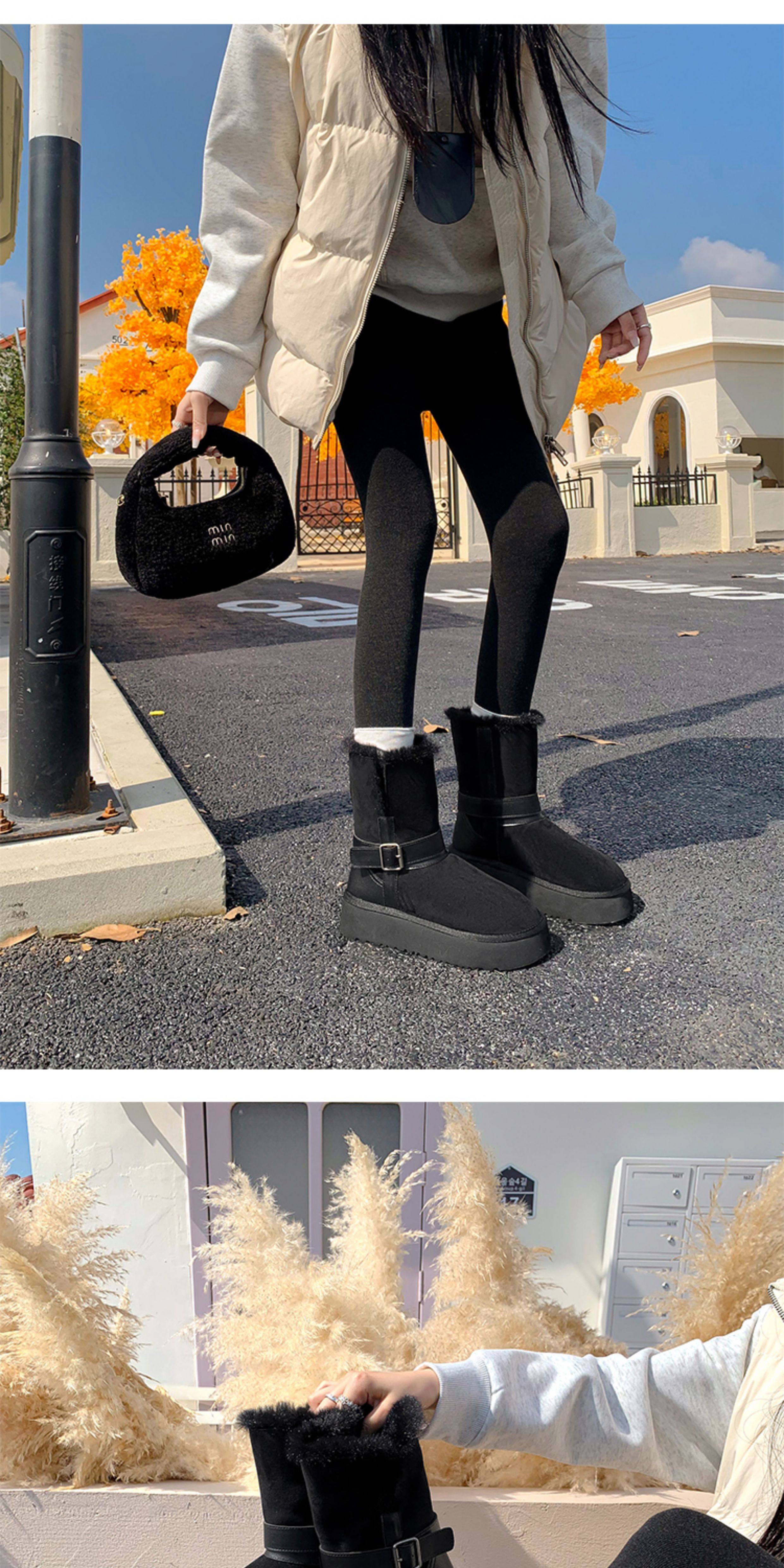 不二橘 秋冬皮帶釦加絨長筒雪地靴厚底防滑保暖毛毛靴百搭舒適