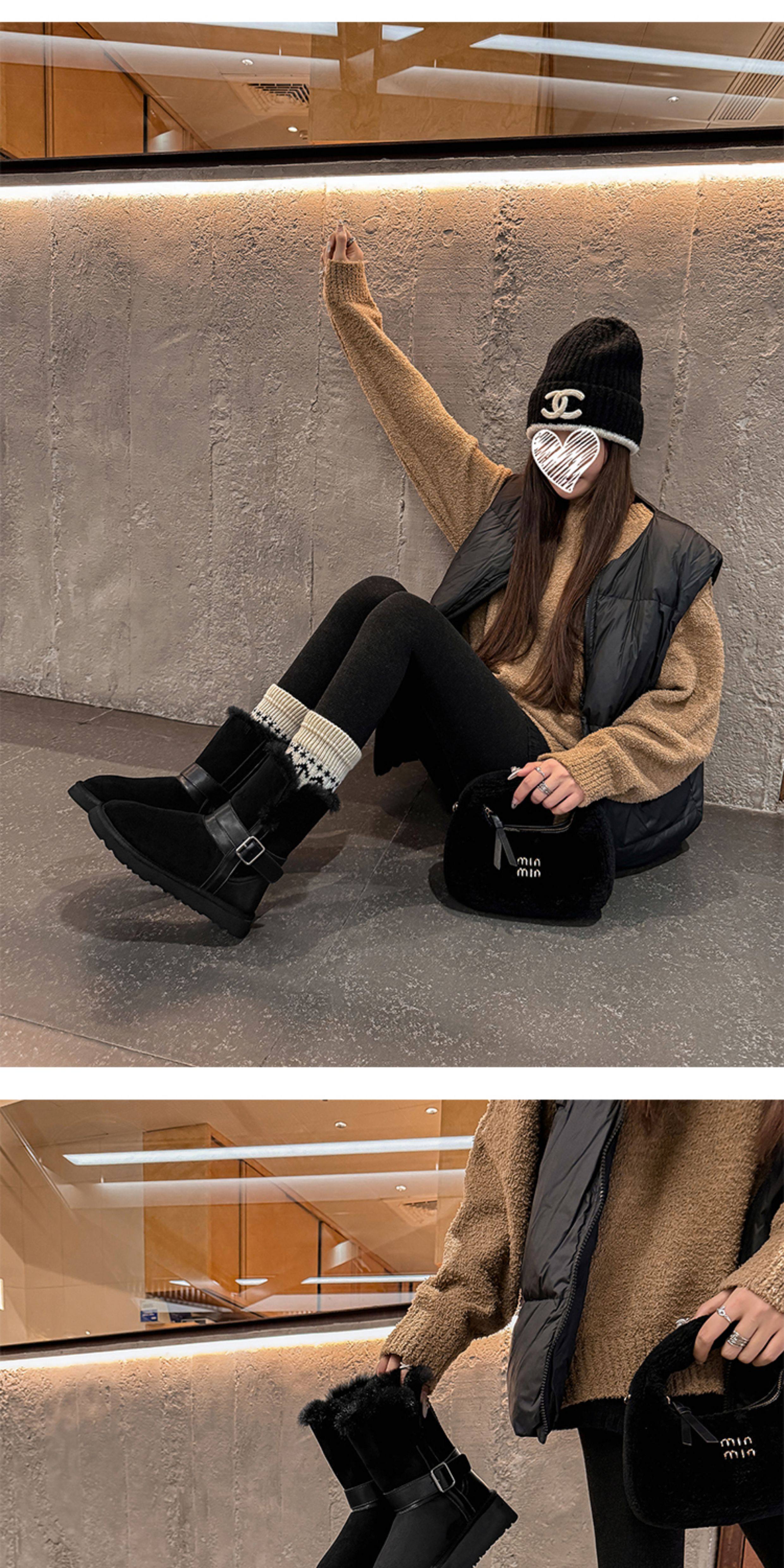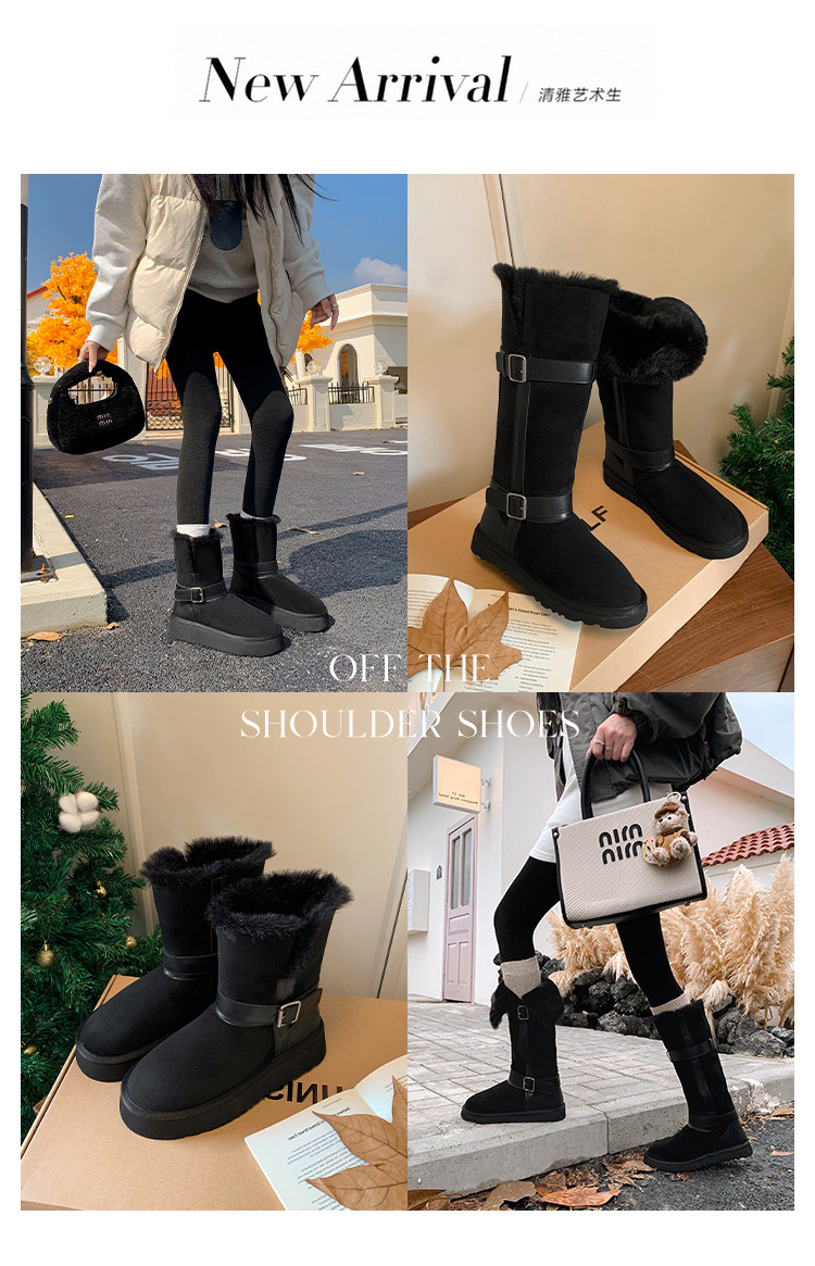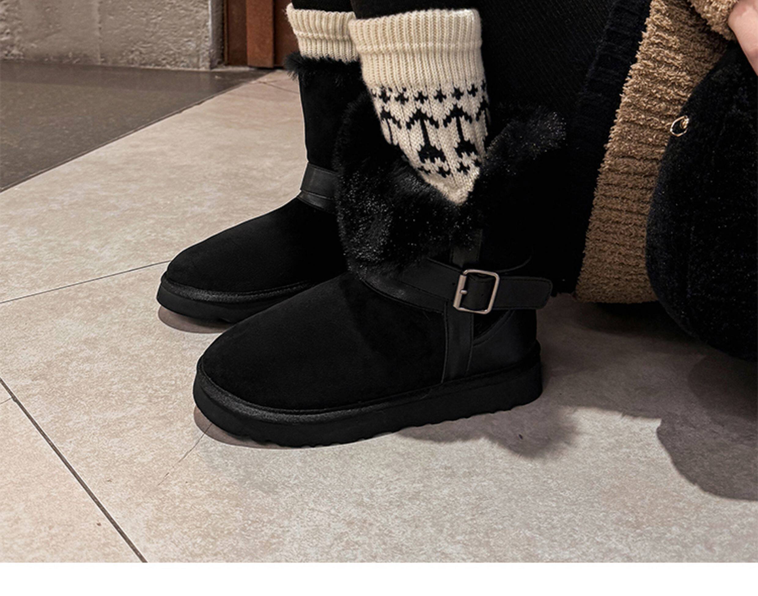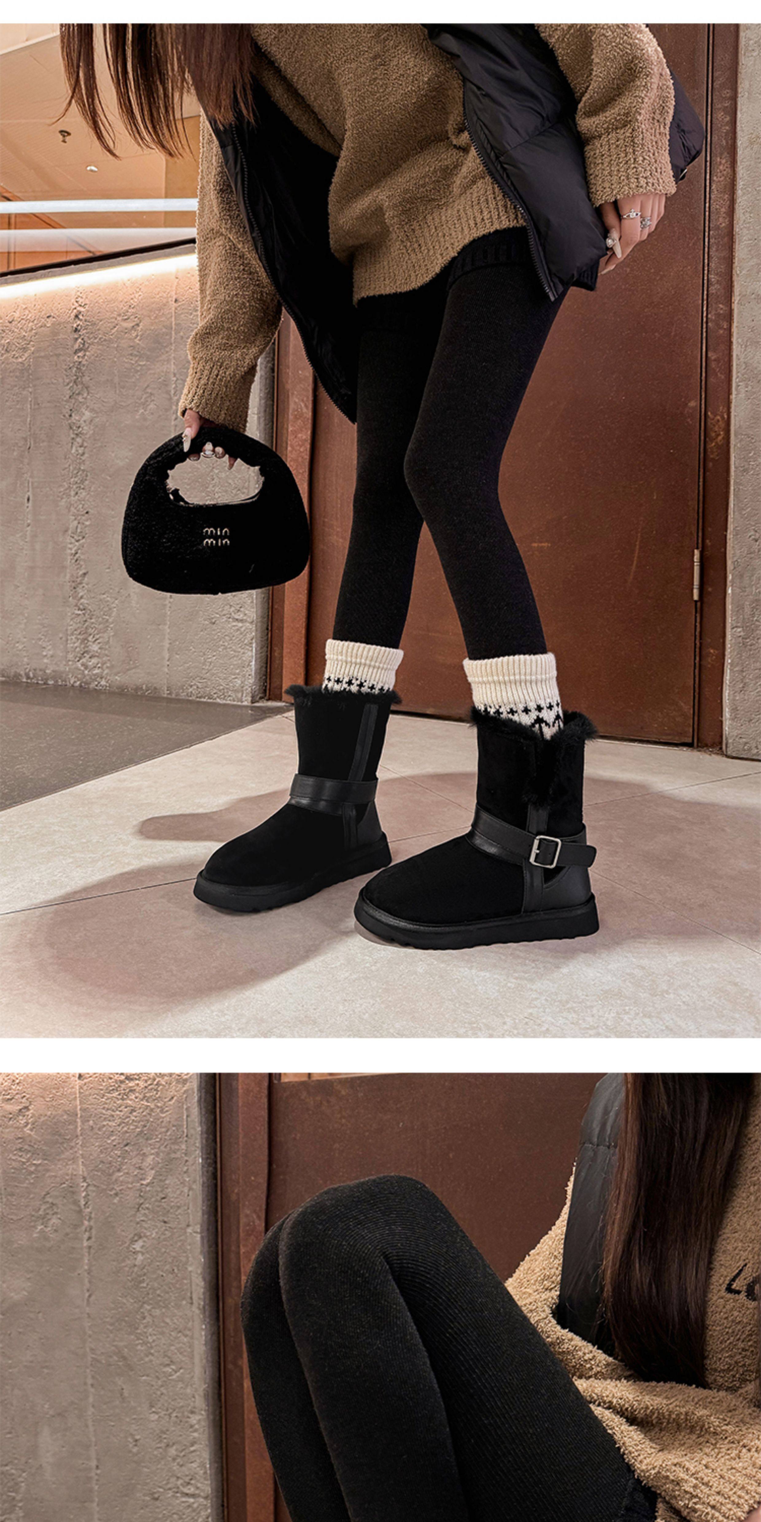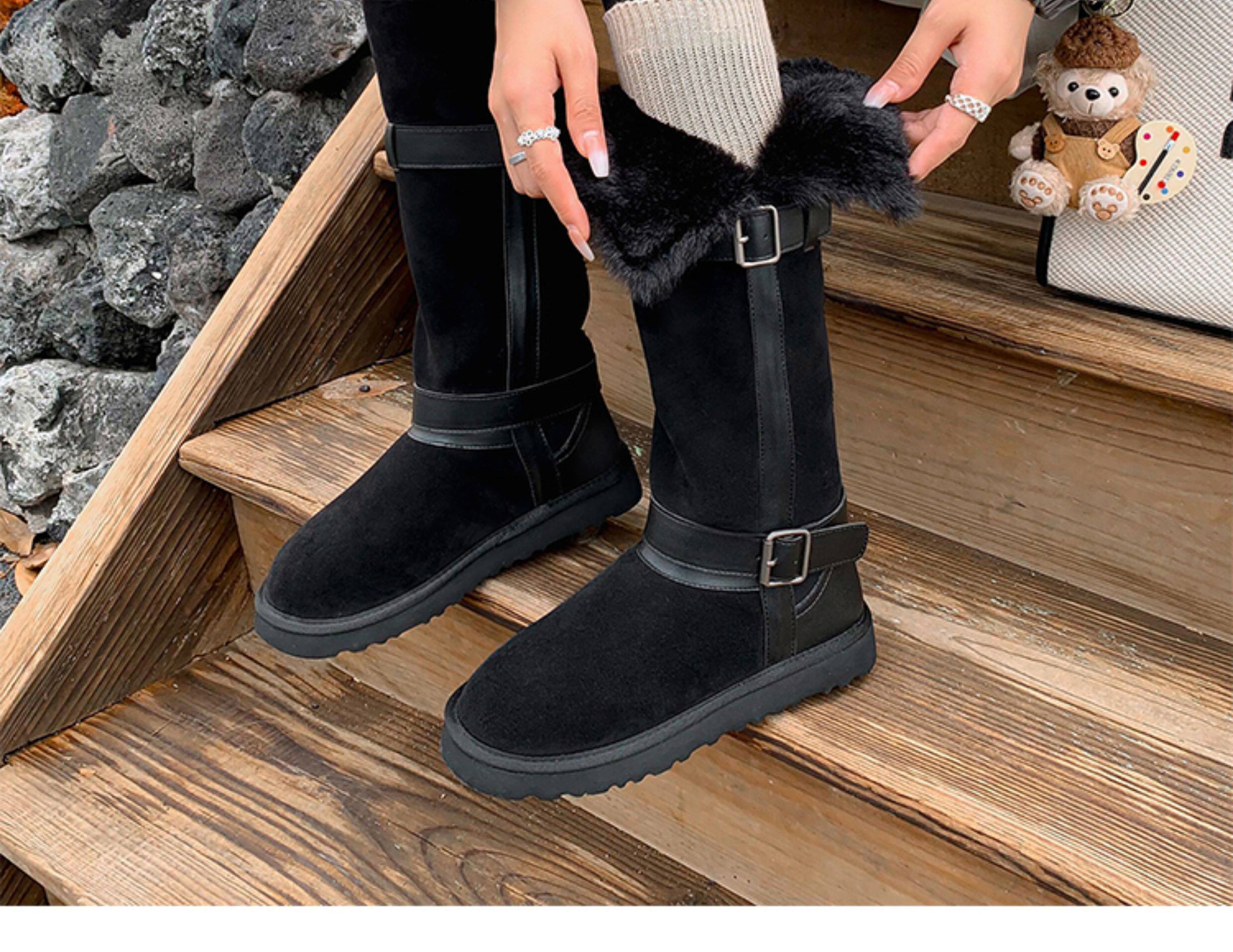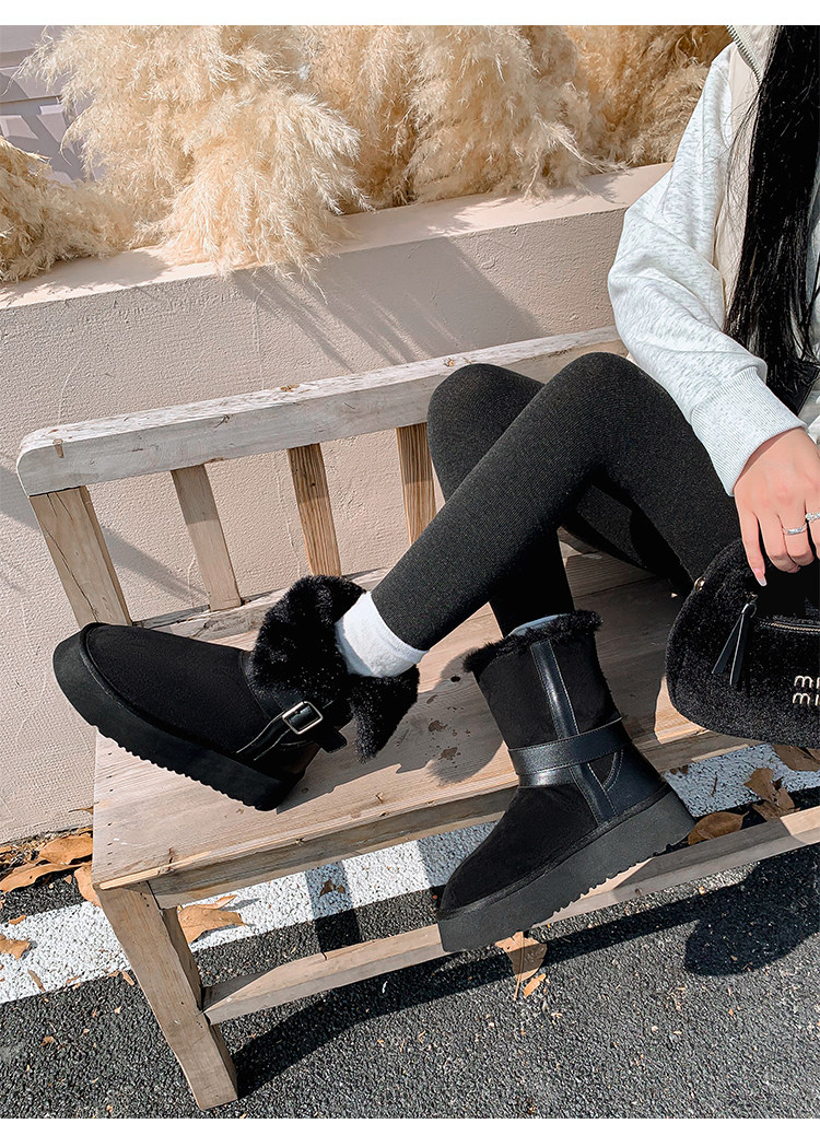 不二橘 秋冬皮帶釦加絨長筒雪地靴厚底防滑保暖毛毛靴百搭舒適
