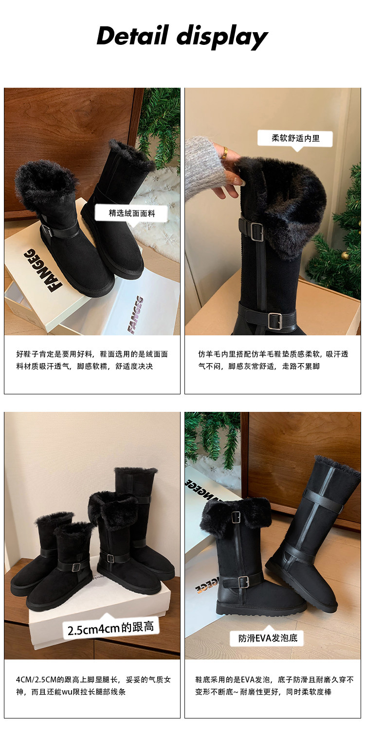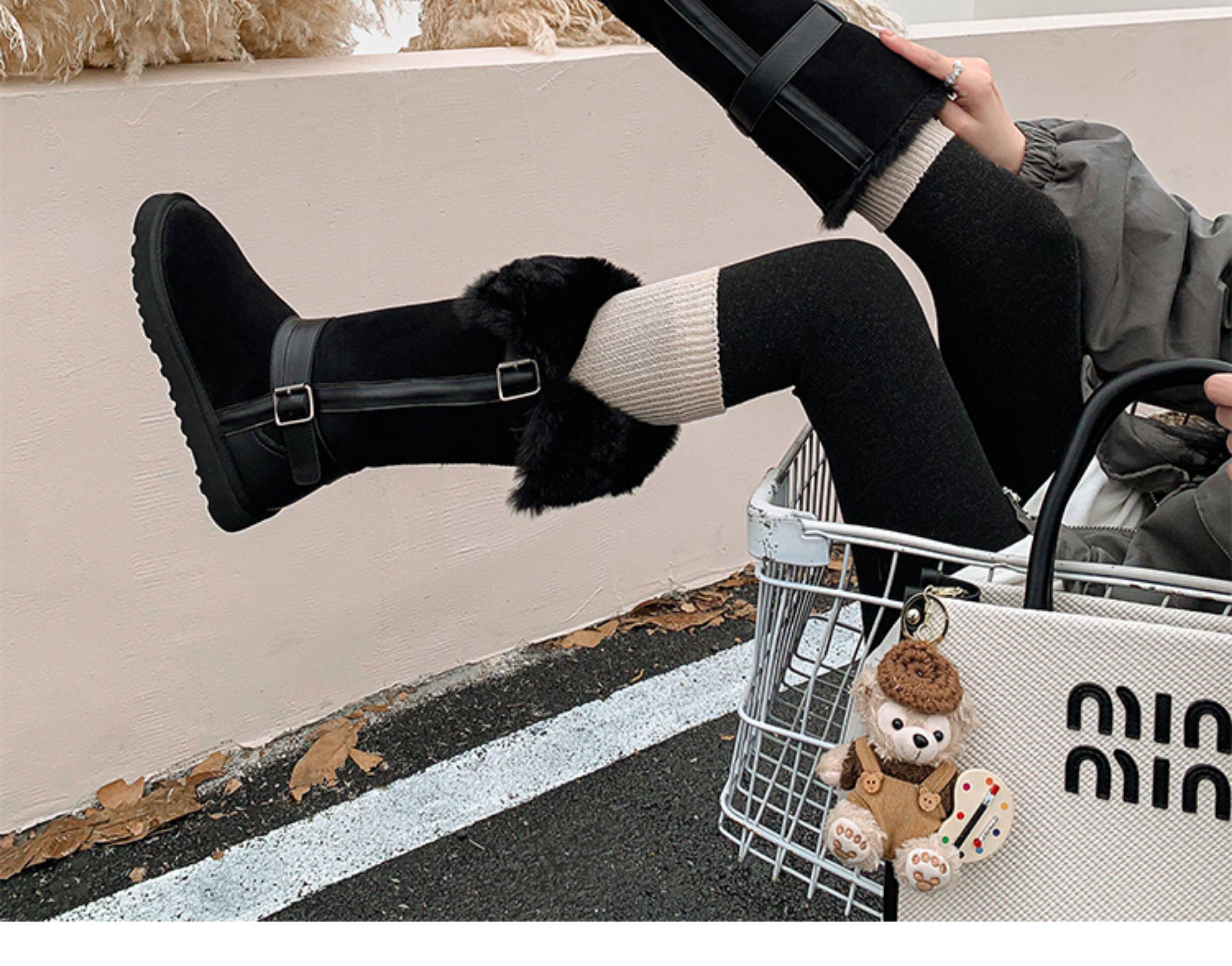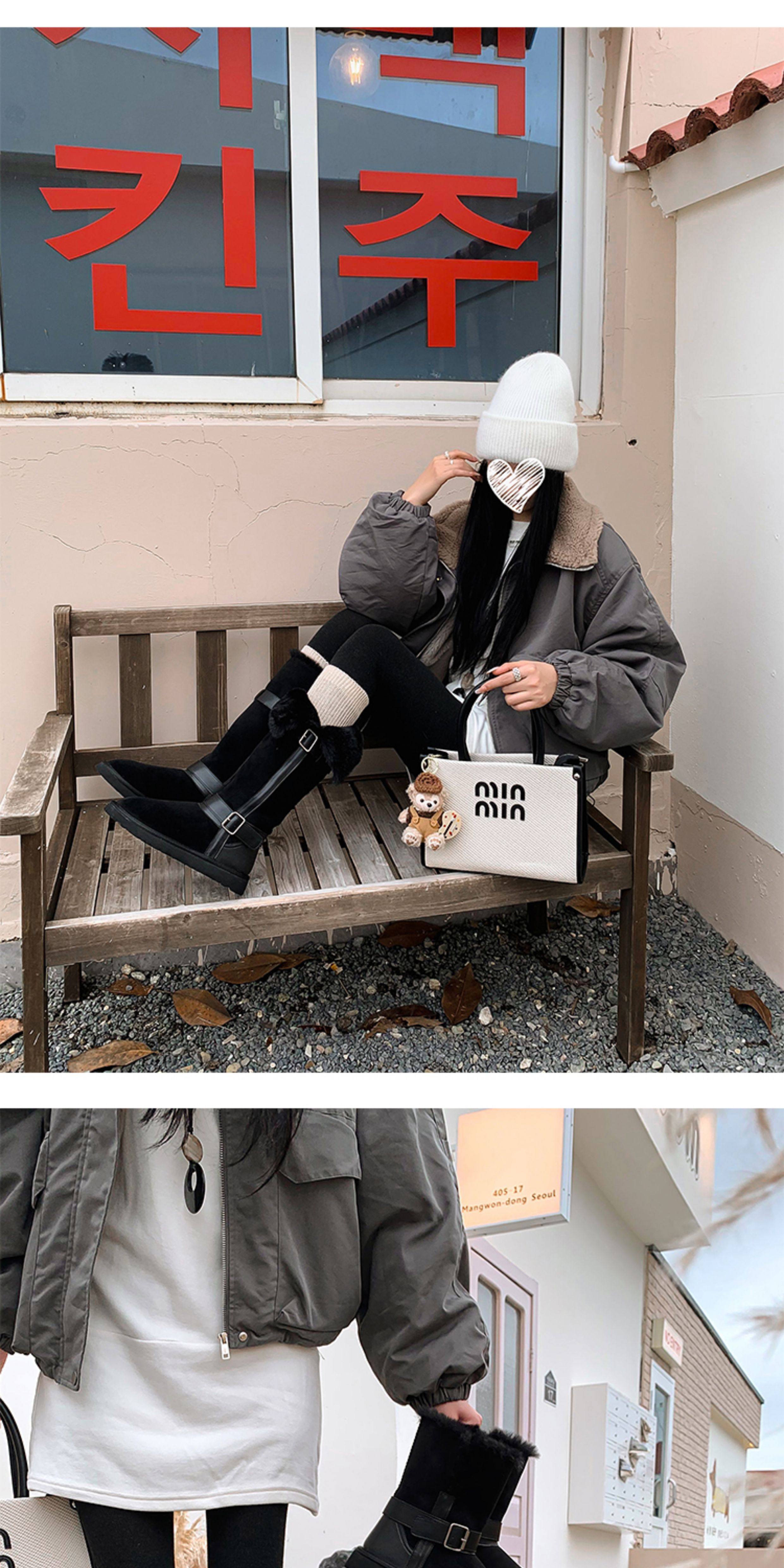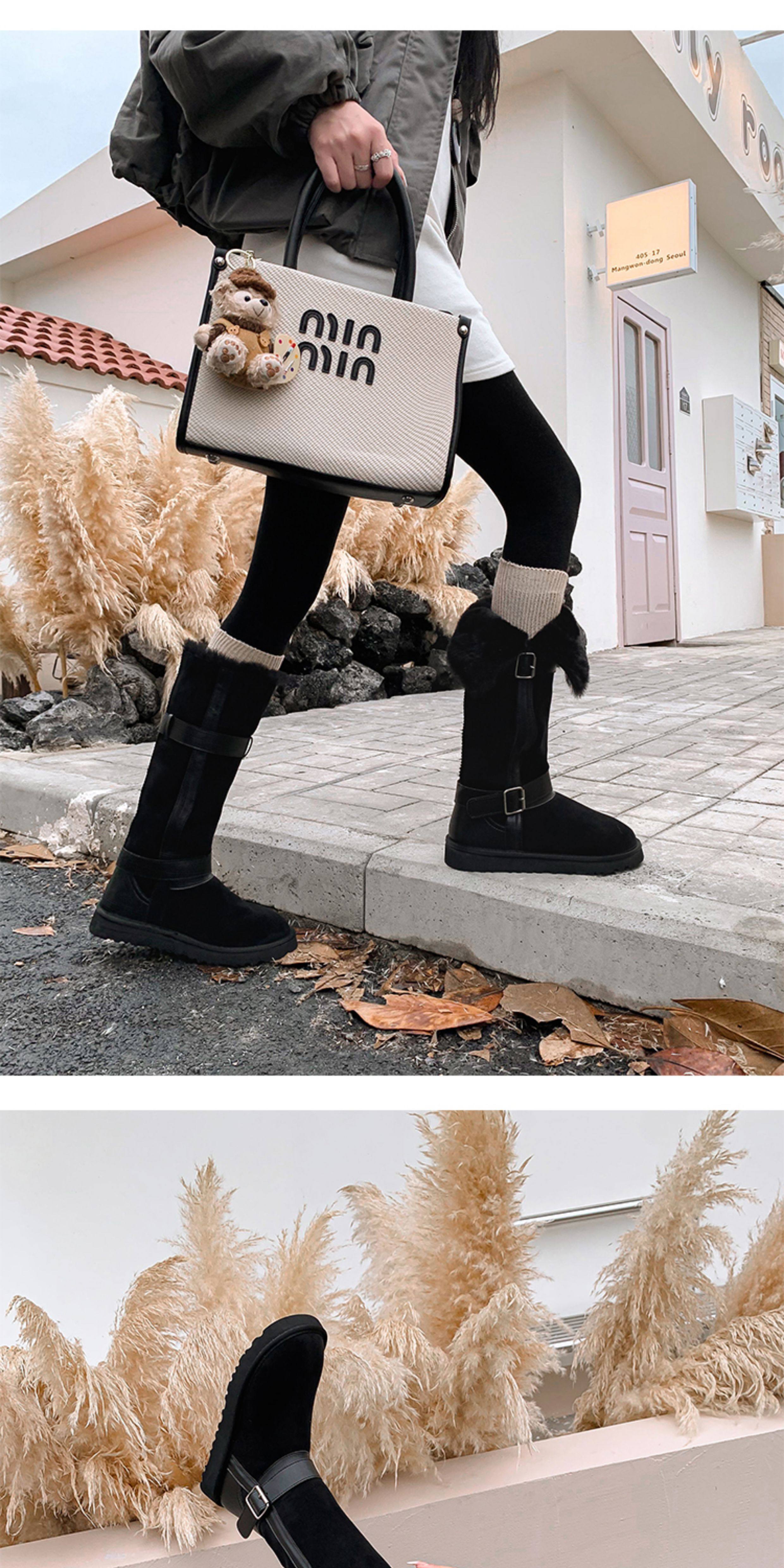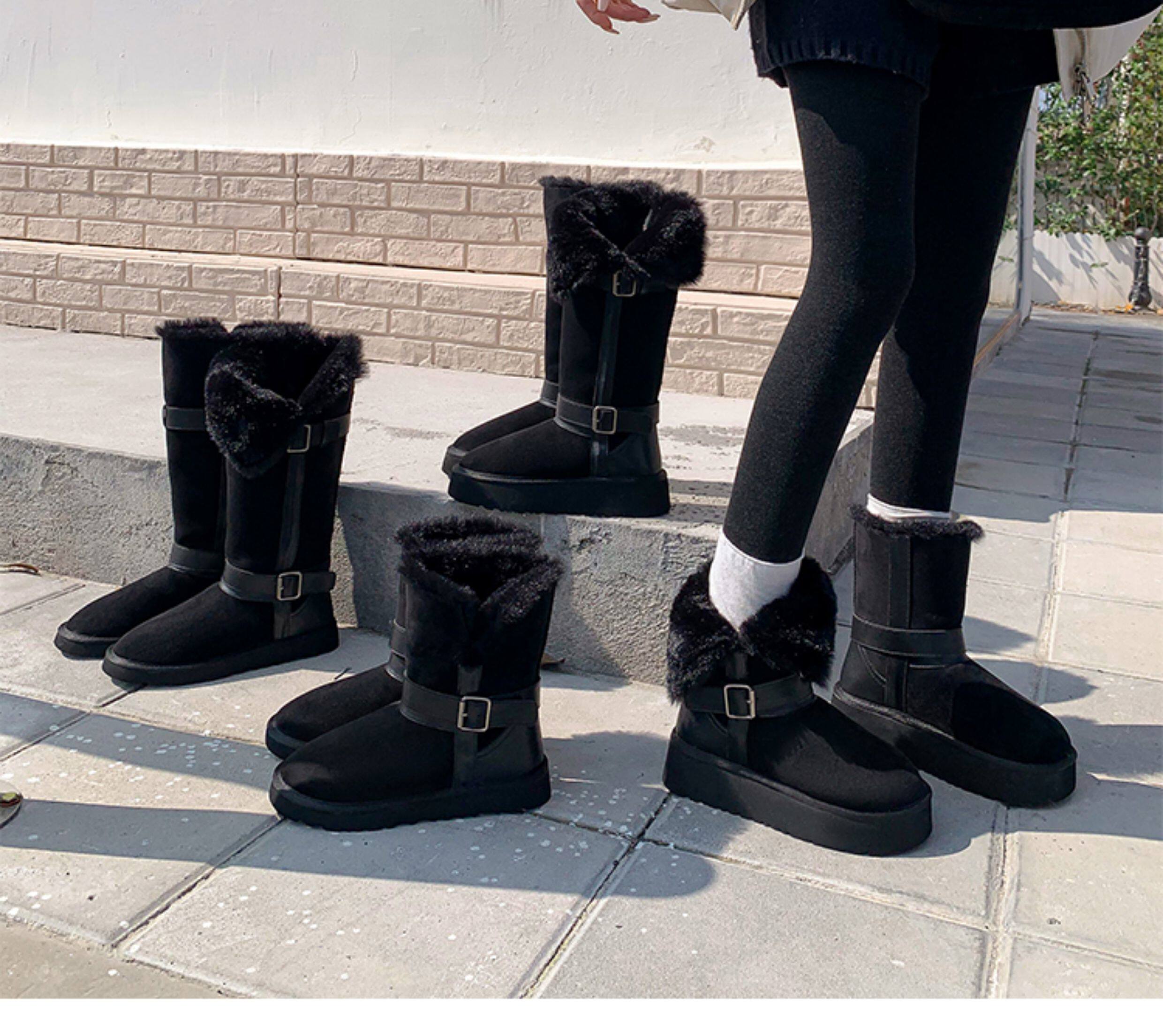 不二橘 秋冬皮帶釦加絨長筒雪地靴厚底防滑保暖毛毛靴百搭舒適