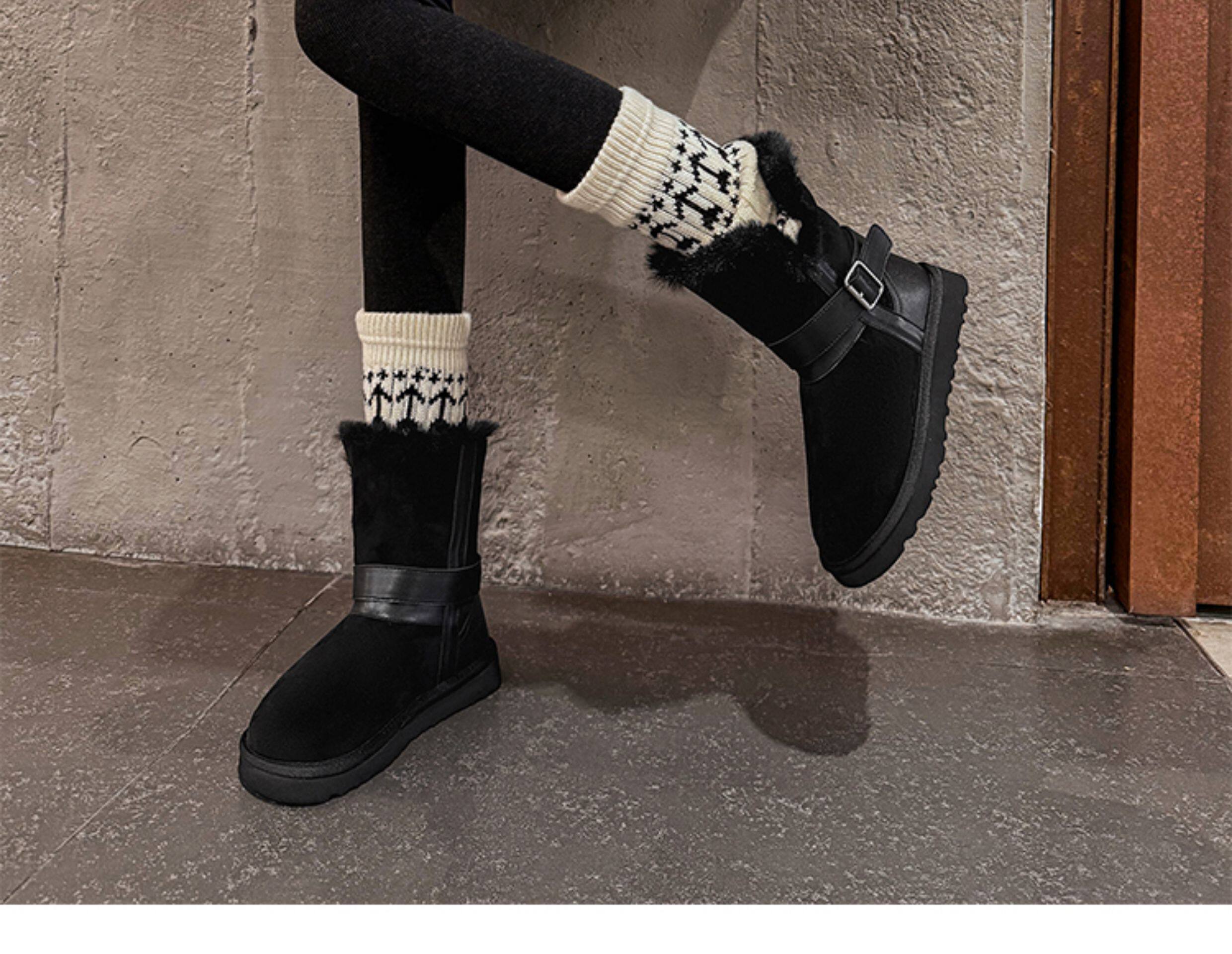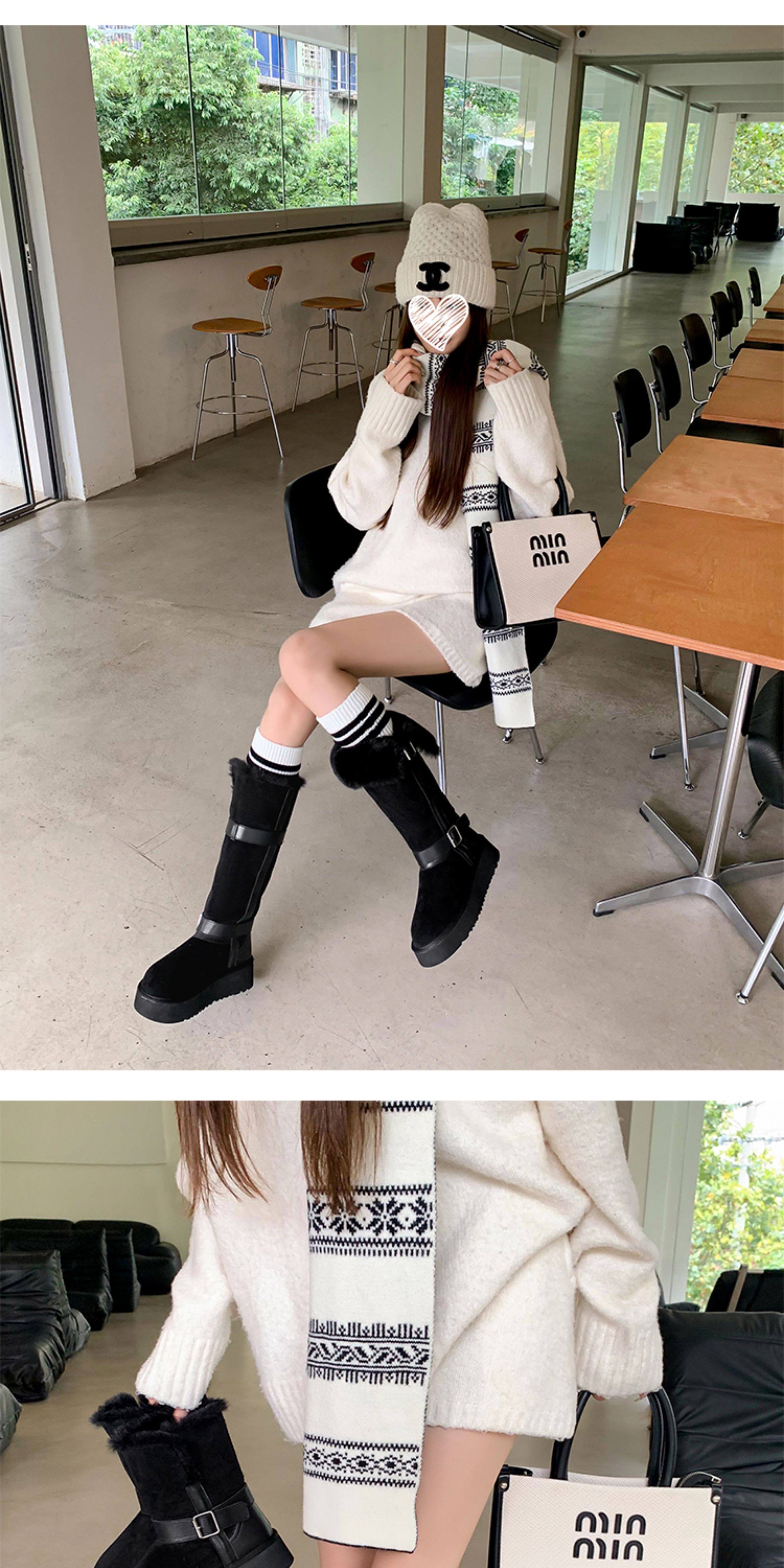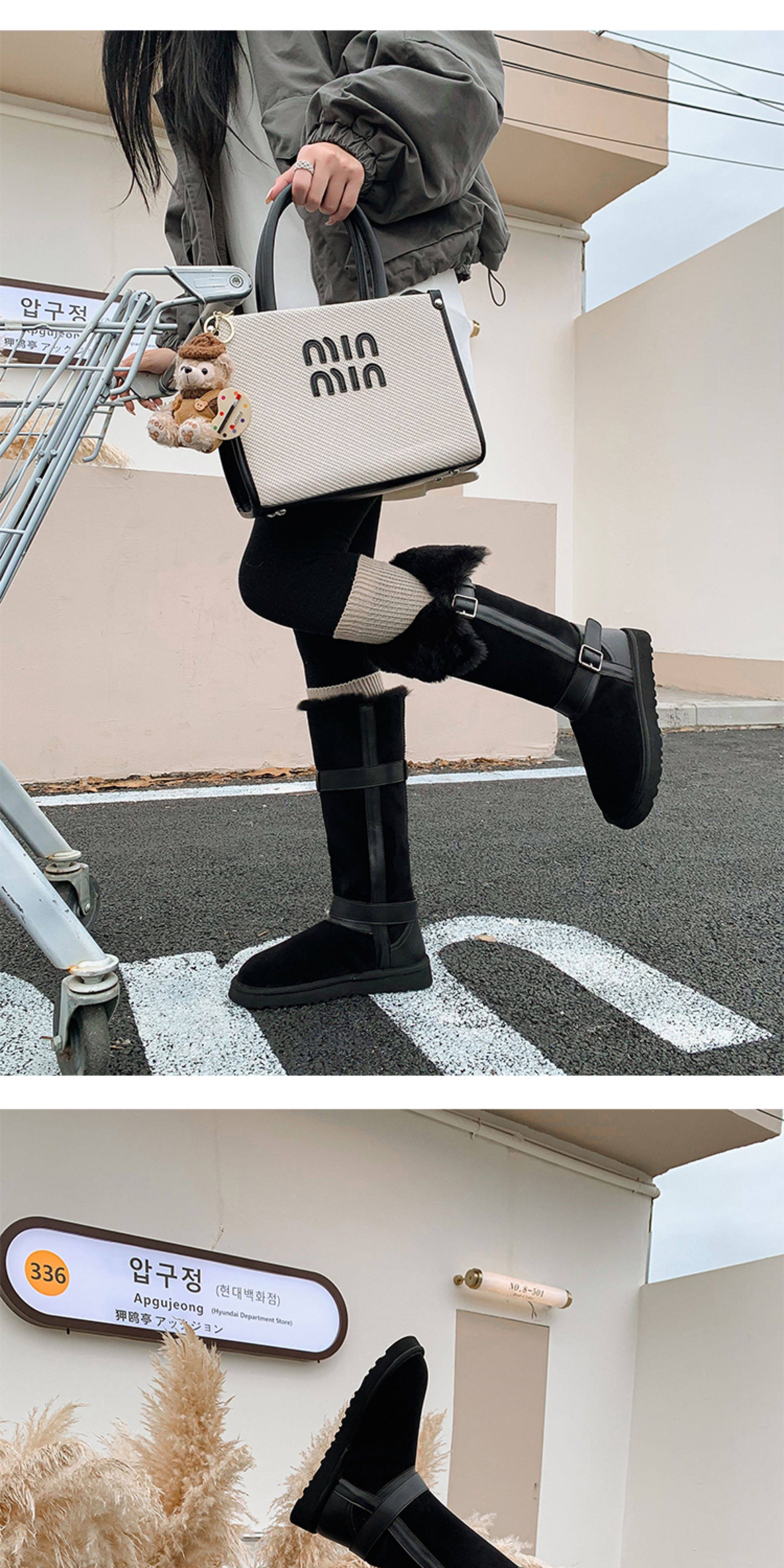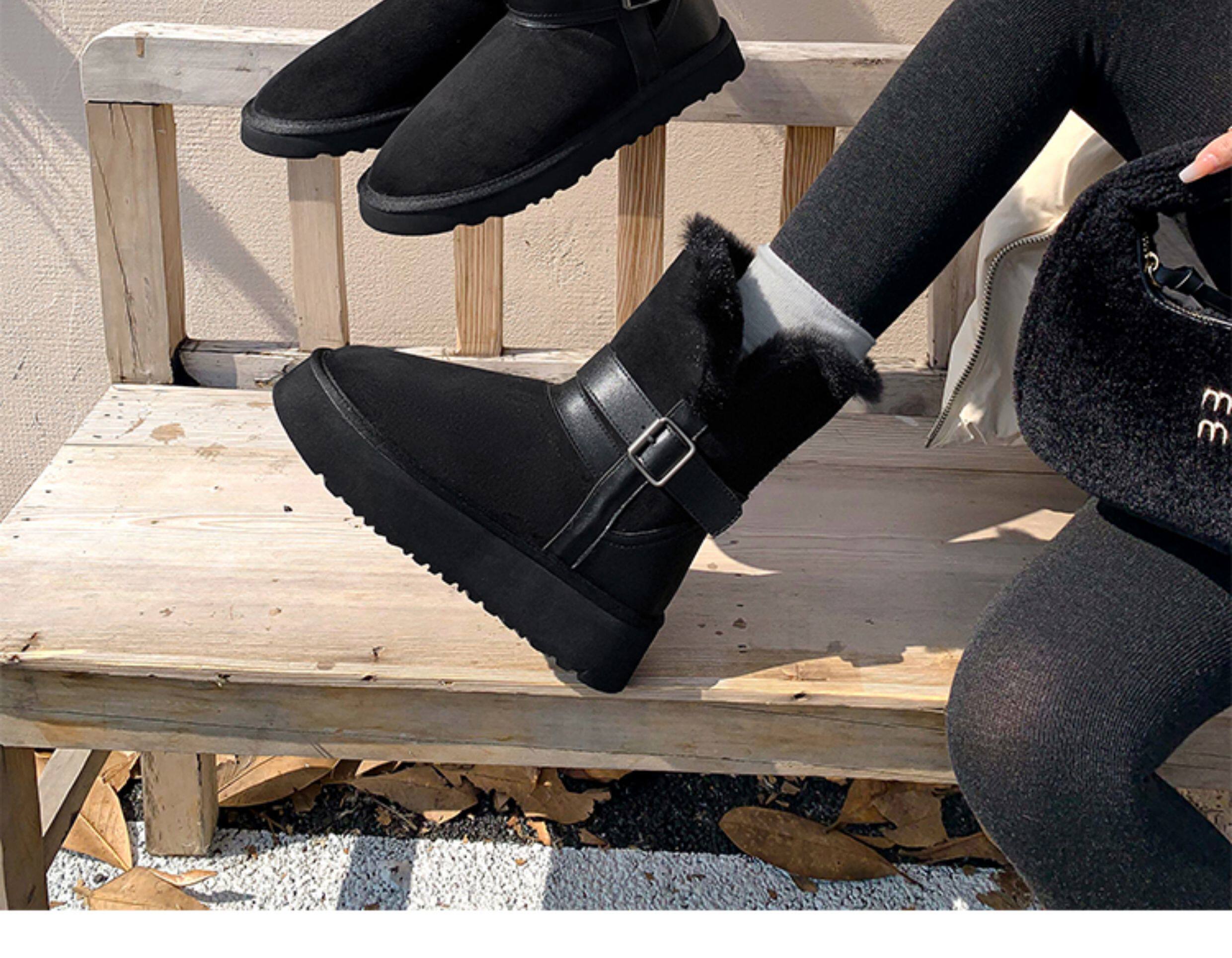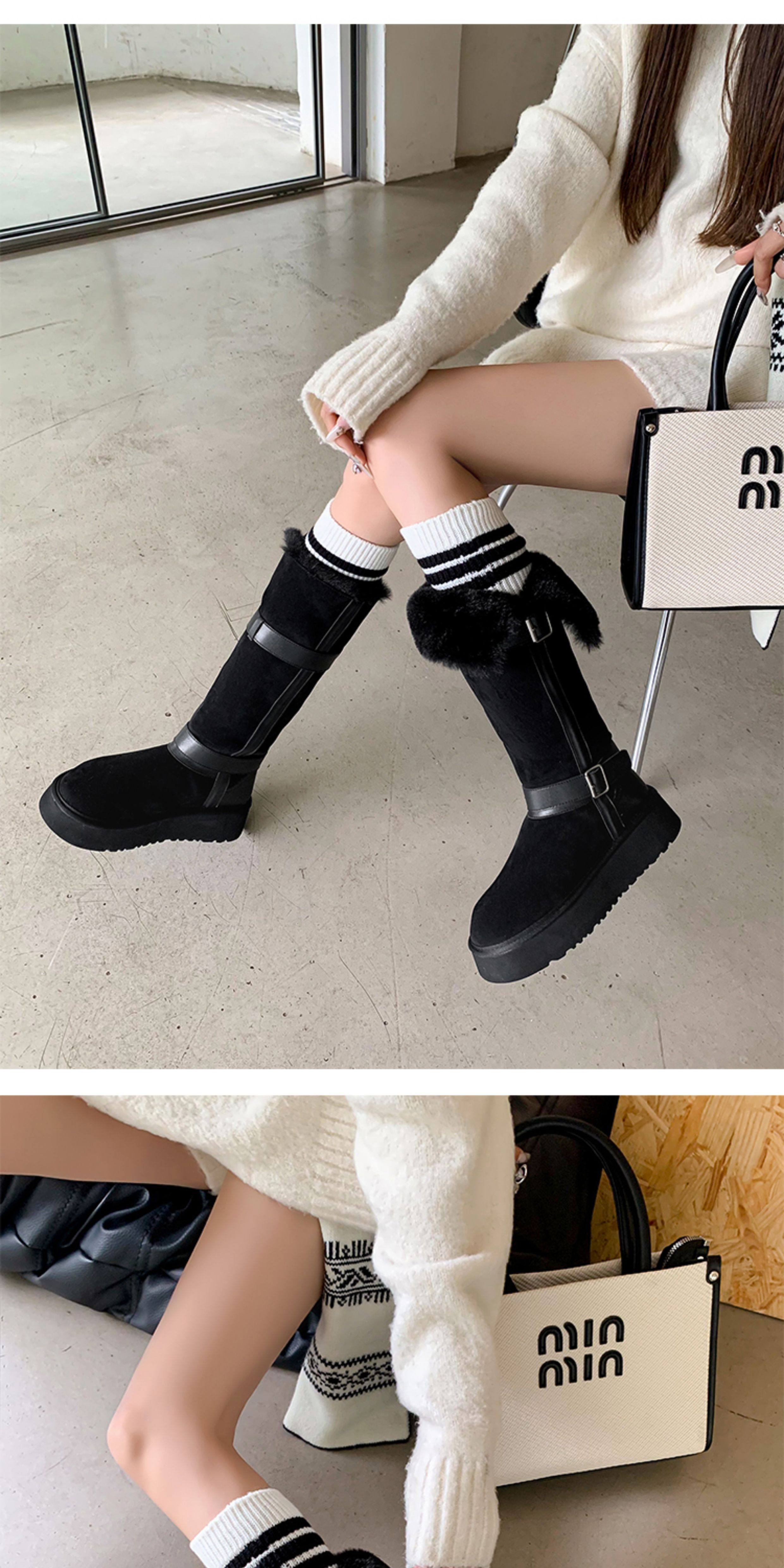 不二橘 秋冬皮帶釦加絨長筒雪地靴厚底防滑保暖毛毛靴百搭舒適