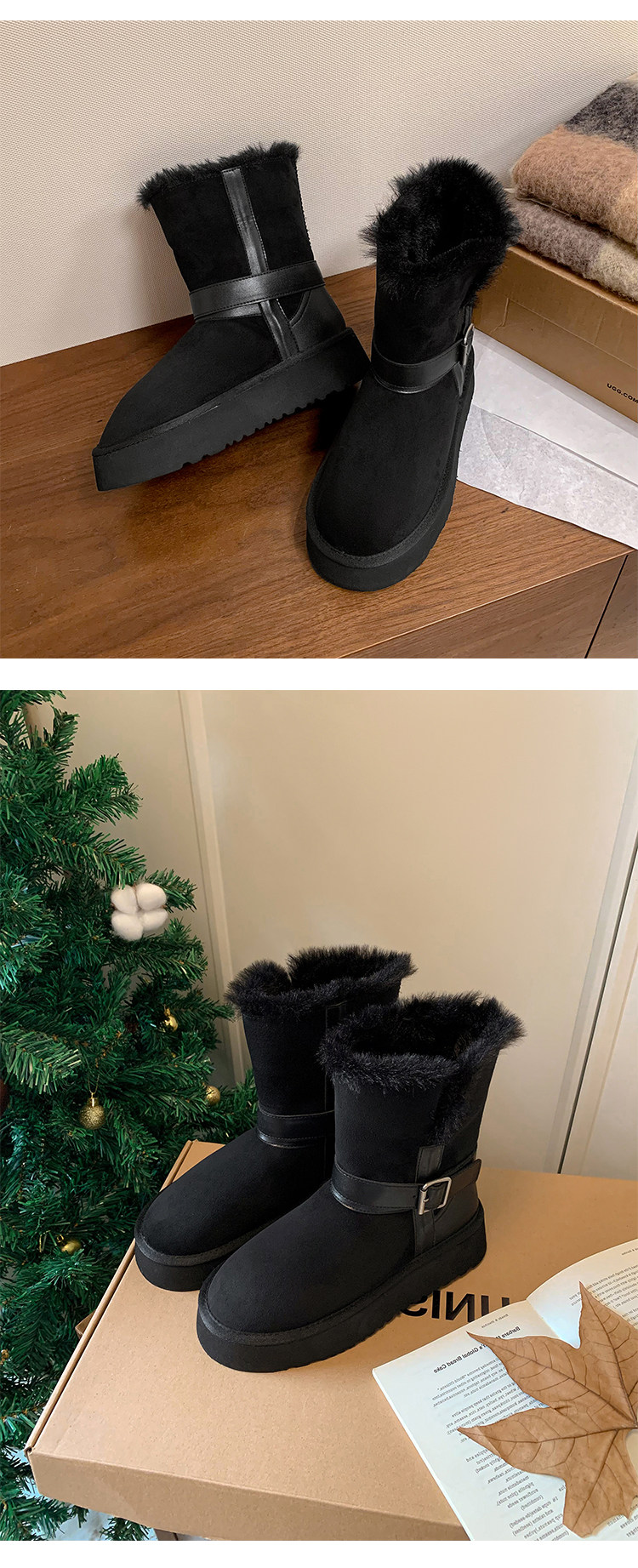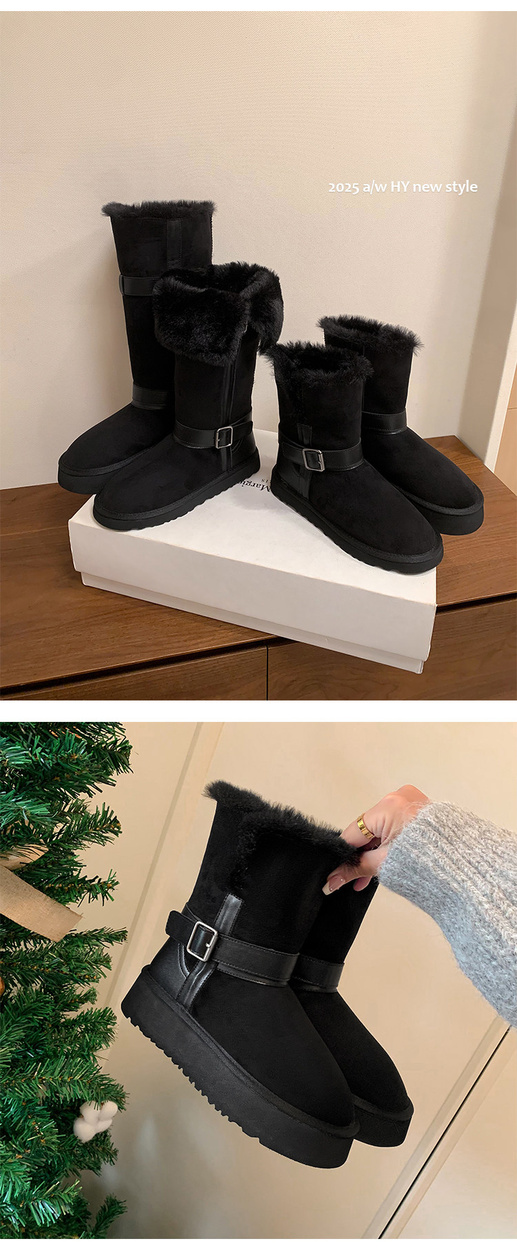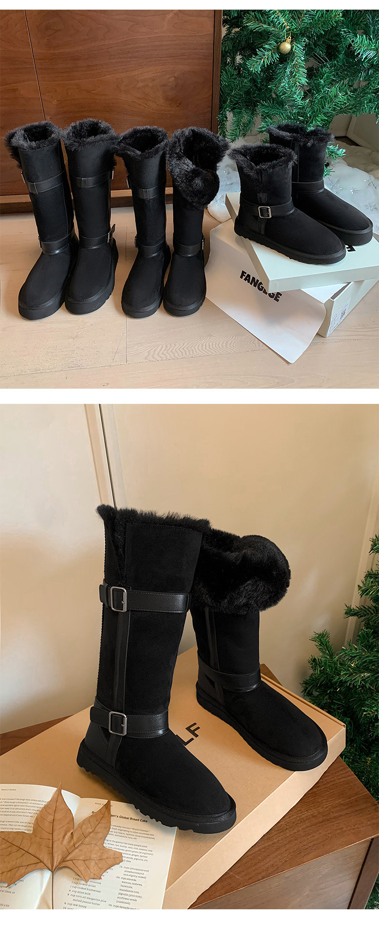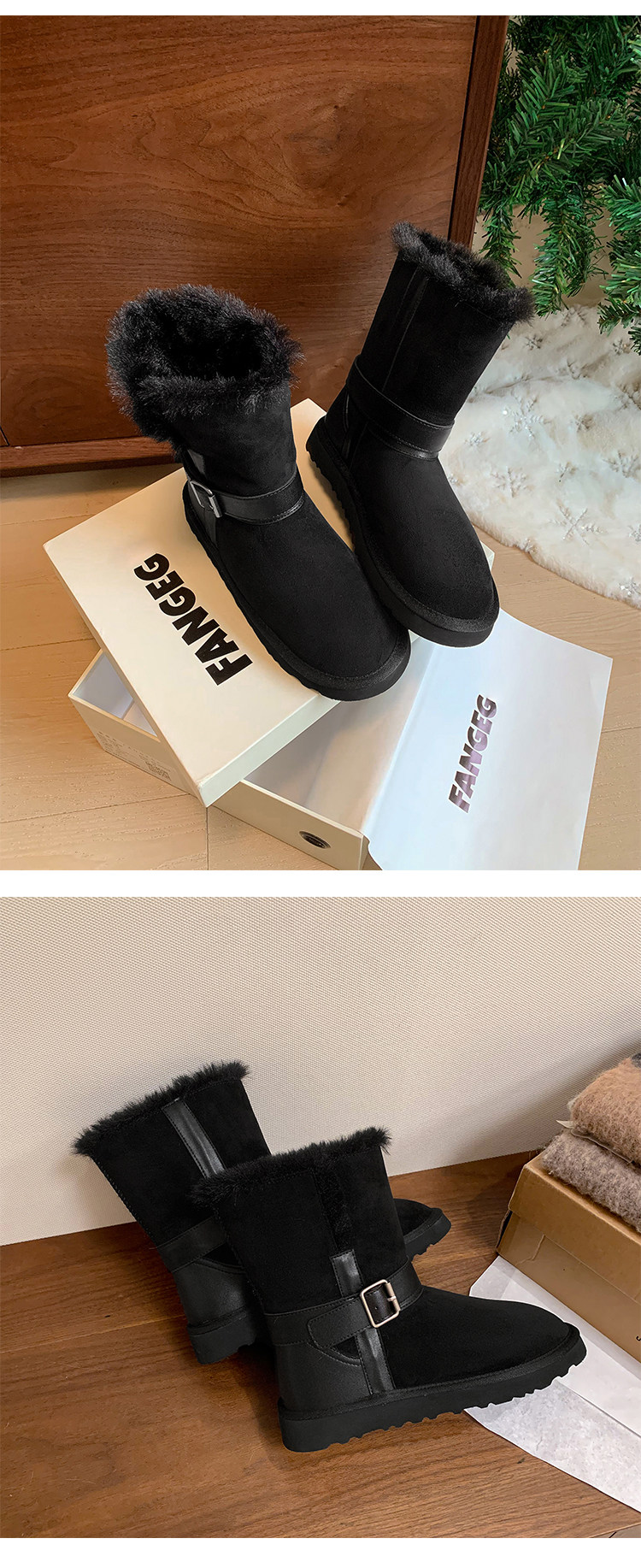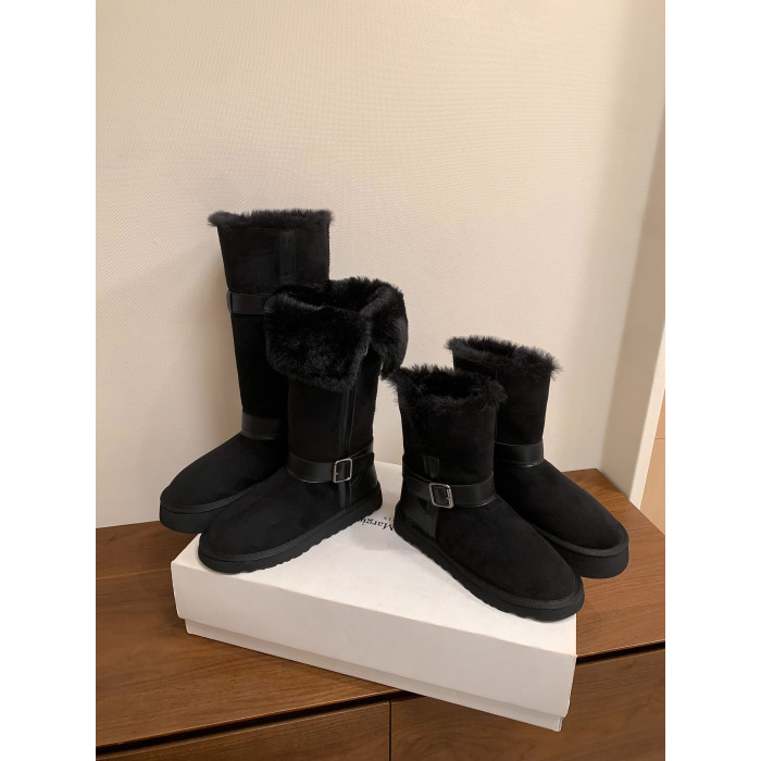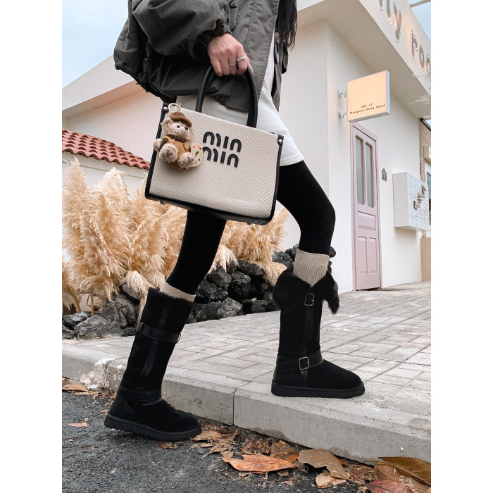 不二橘 秋冬皮帶釦加絨長筒雪地靴厚底防滑保暖毛毛靴百搭舒適