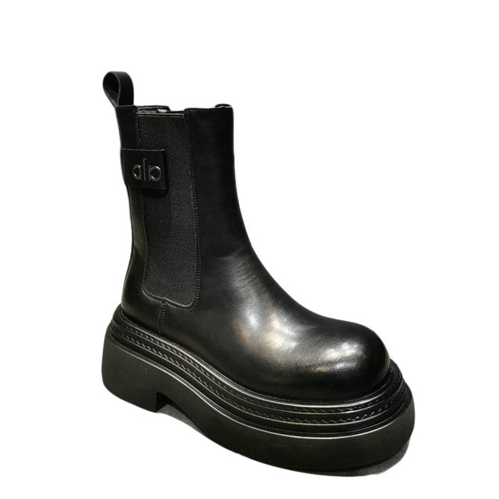 真皮增高厚底菸筒靴女2025冬季百搭休閒中筒女靴英倫風加絨馬丁靴