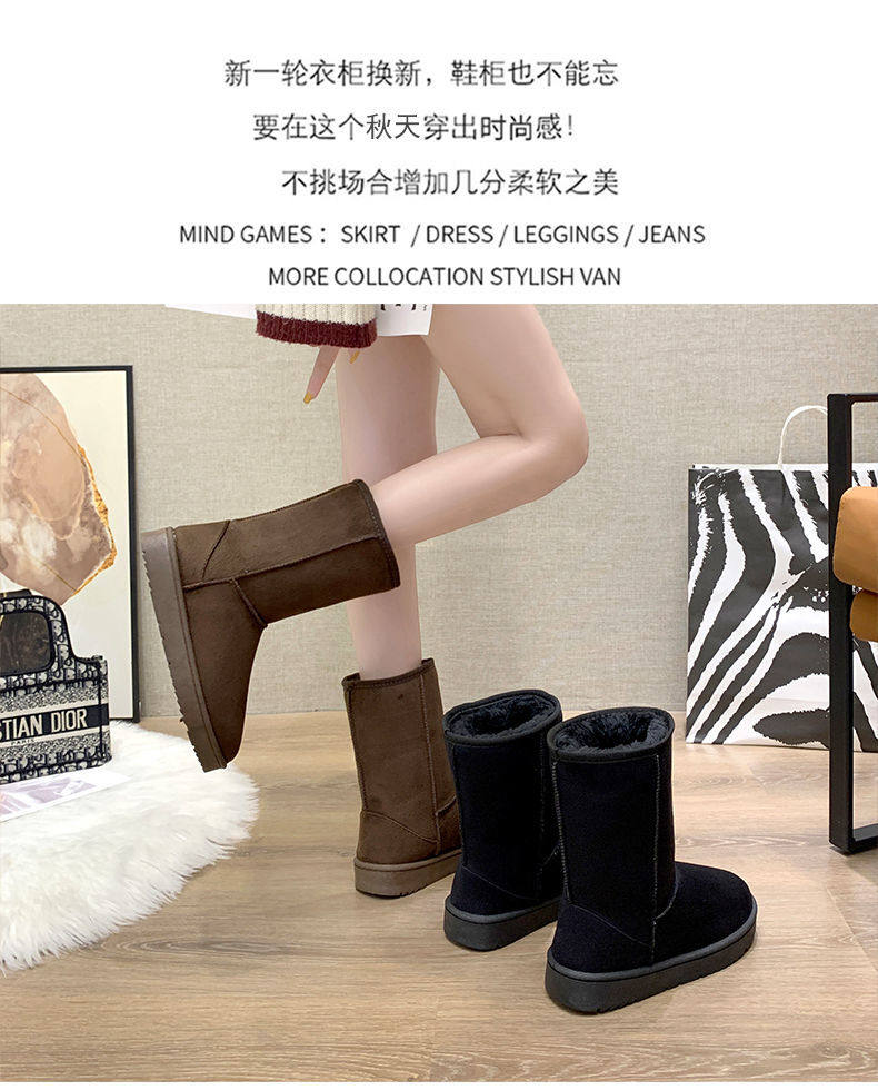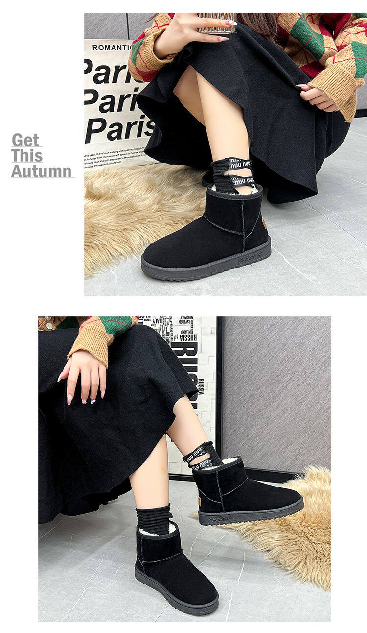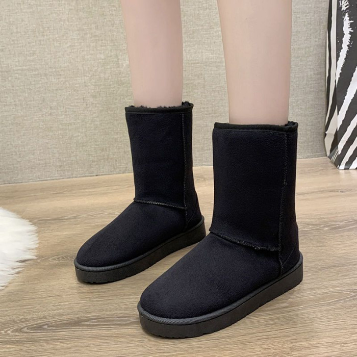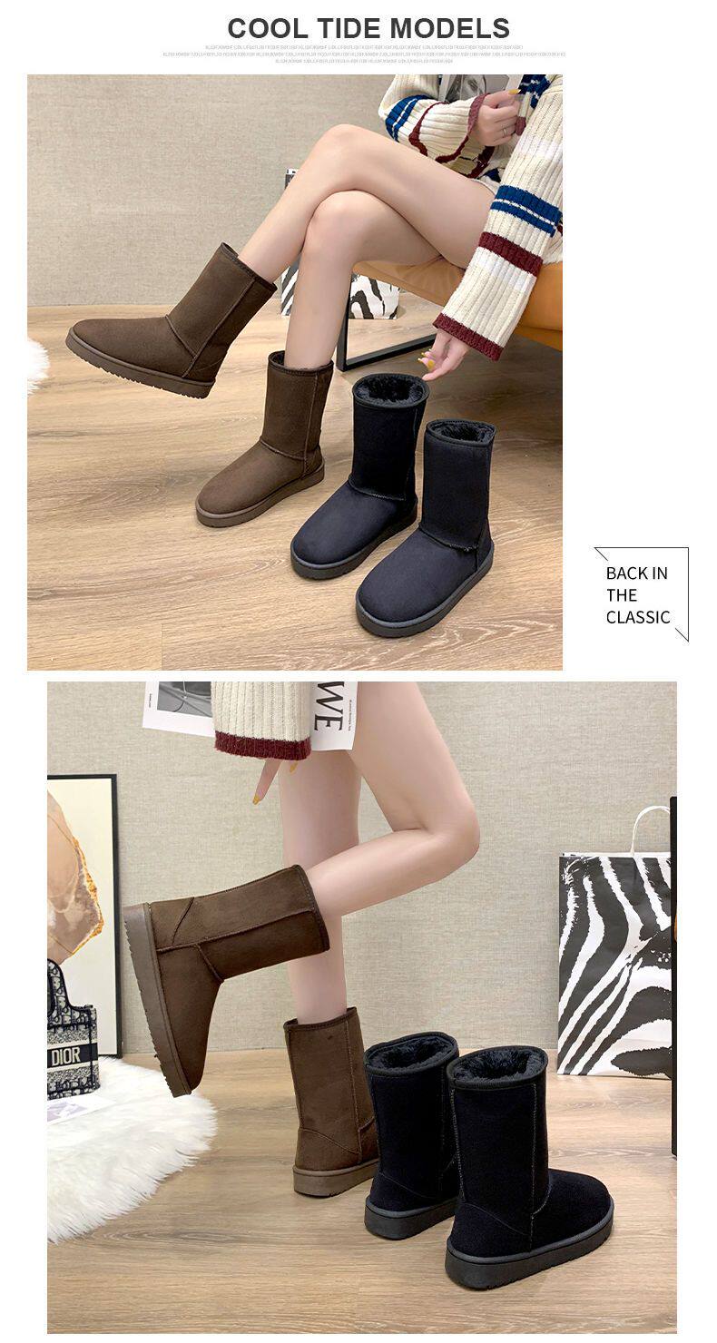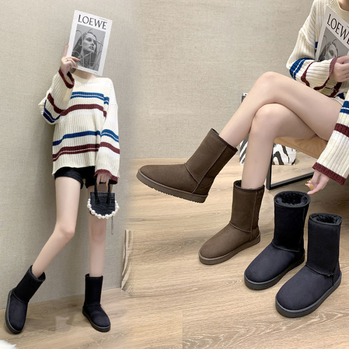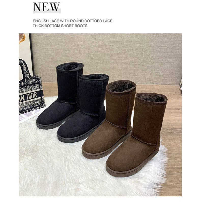 加厚加絨中筒雪地靴女特厚長筒洋氣時尚百搭平底短靴套筒靴子棉鞋