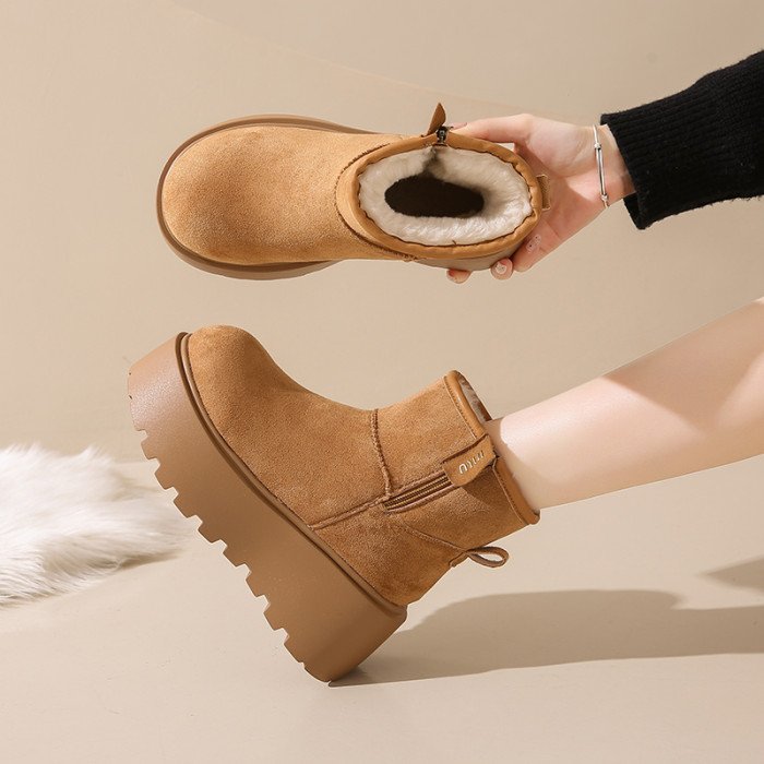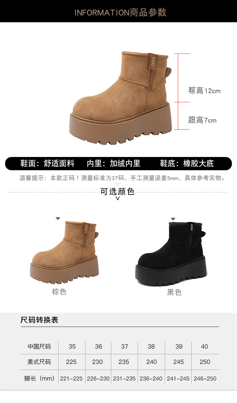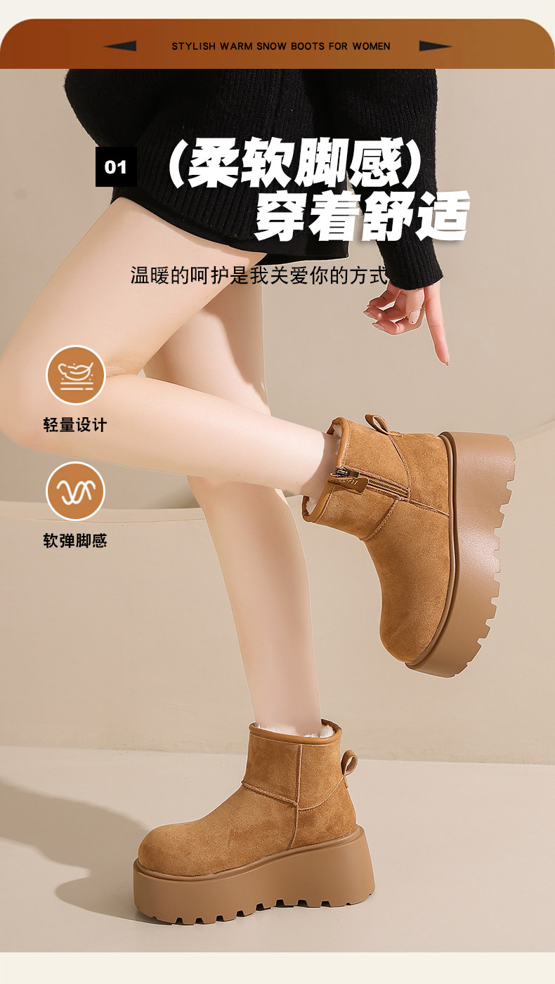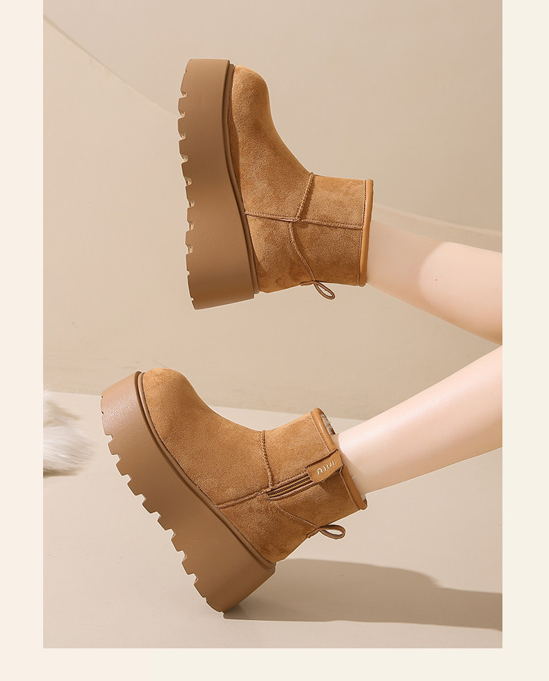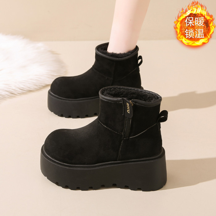 松糕厚底雪地靴女2026新款冬季增高馬丁靴加絨加厚保暖東北大棉鞋