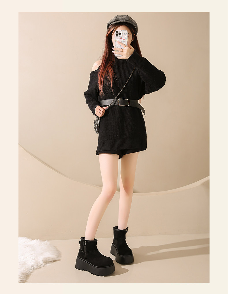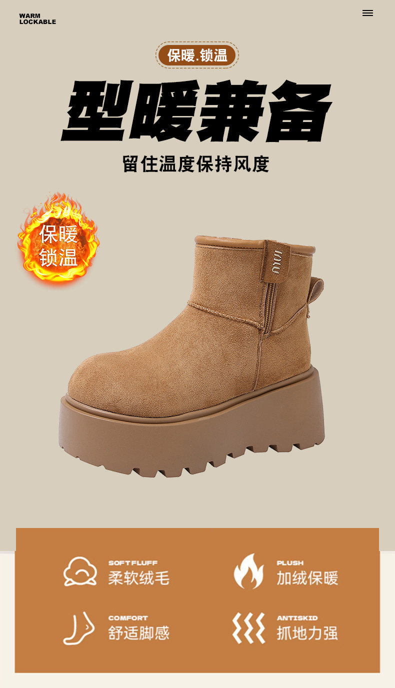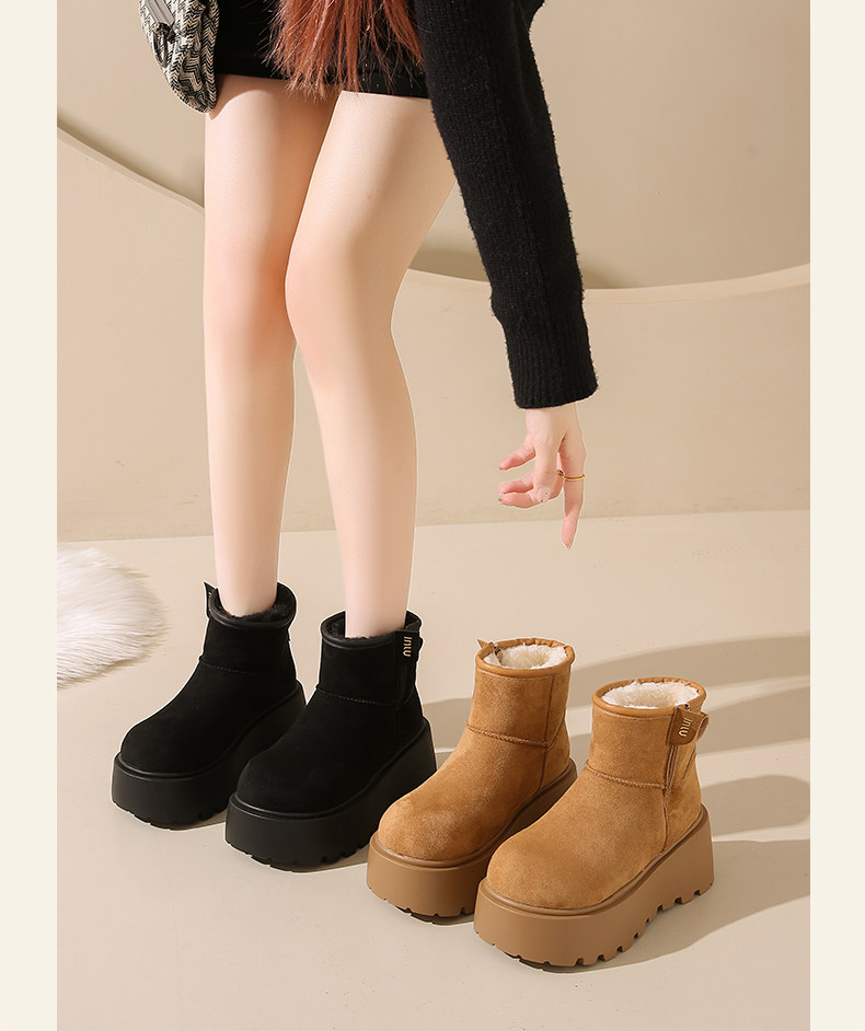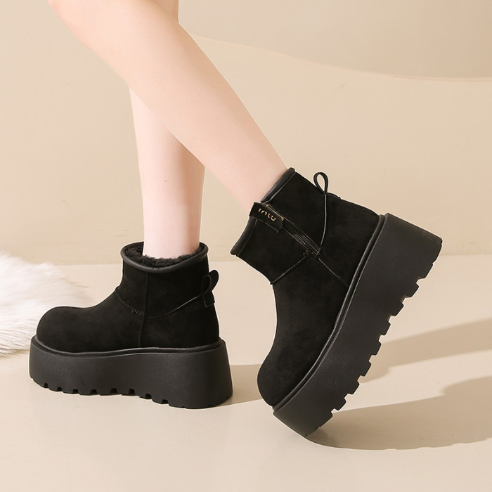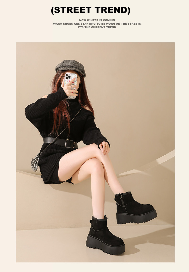 松糕厚底雪地靴女2026新款冬季增高馬丁靴加絨加厚保暖東北大棉鞋