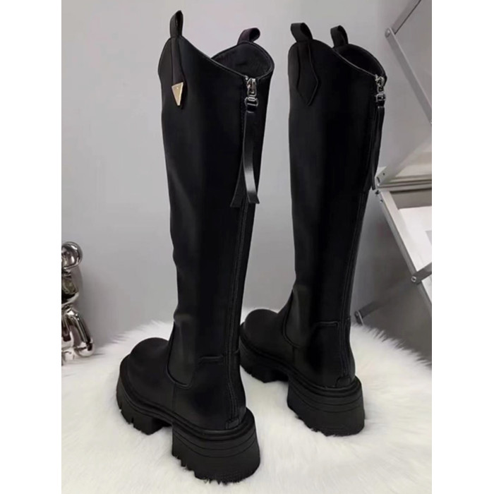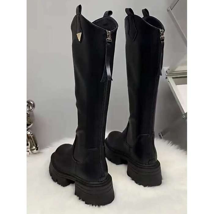 真皮厚底增高長筒靴女高筒粗跟2025秋冬季騎士靴顯高小個子長靴子
