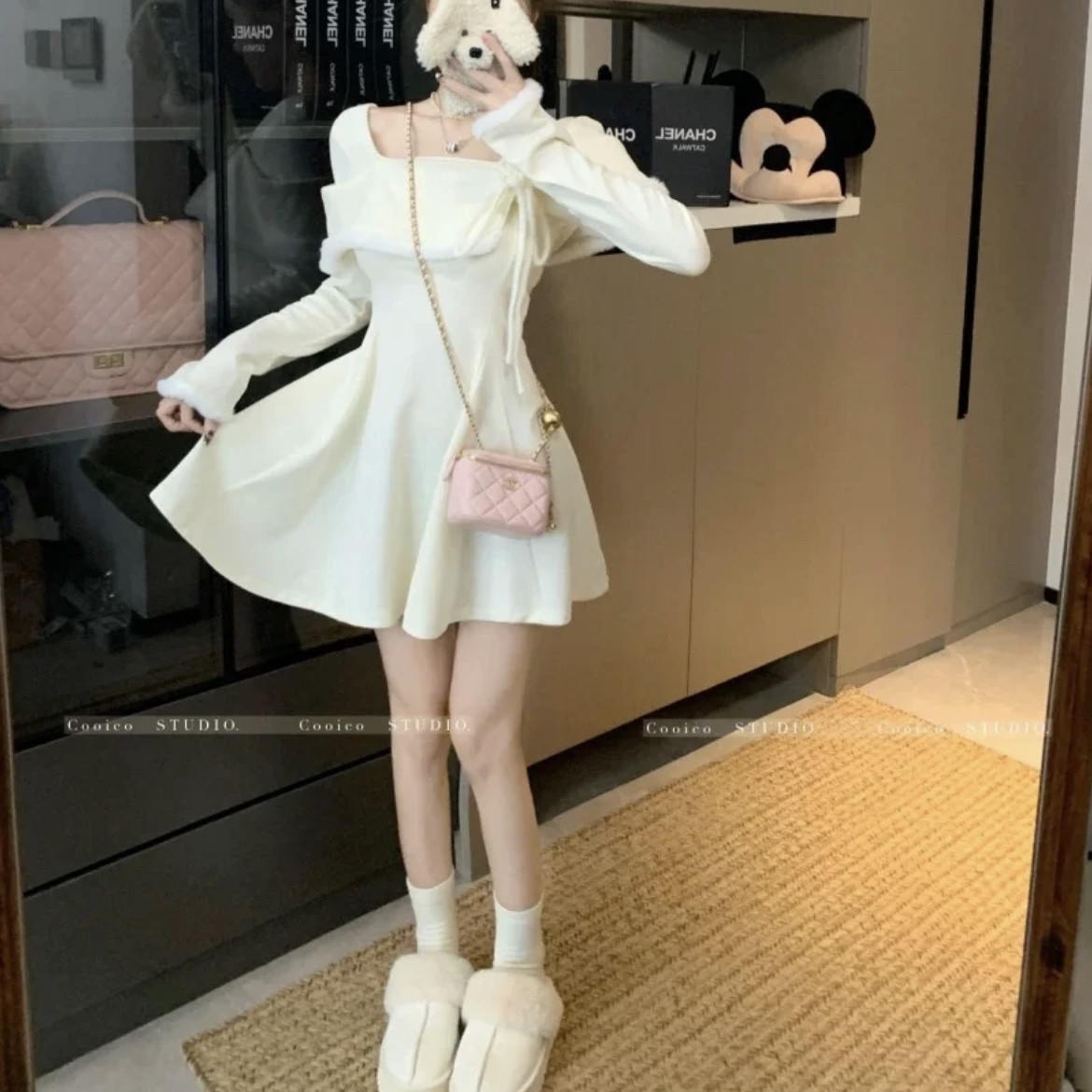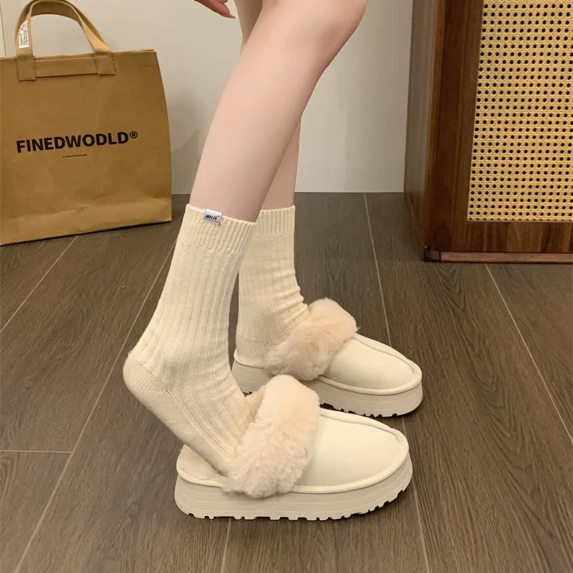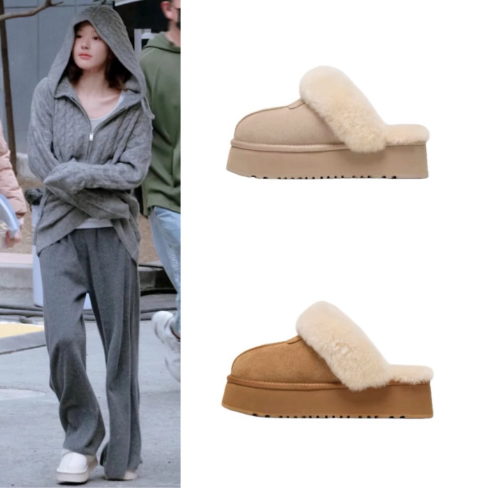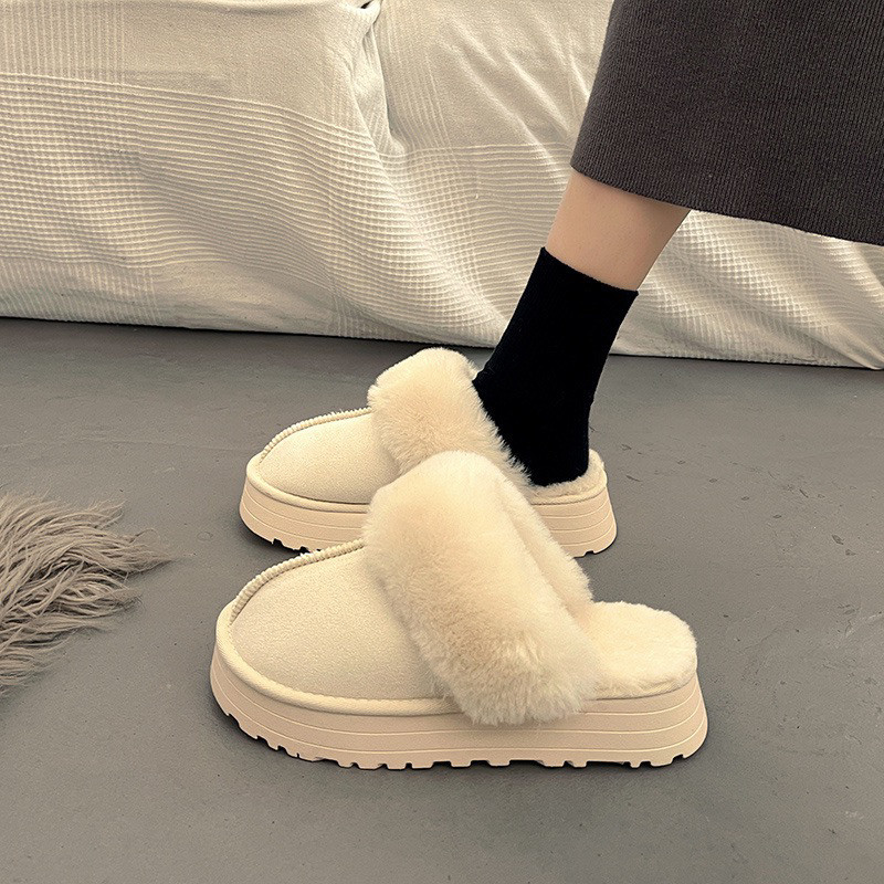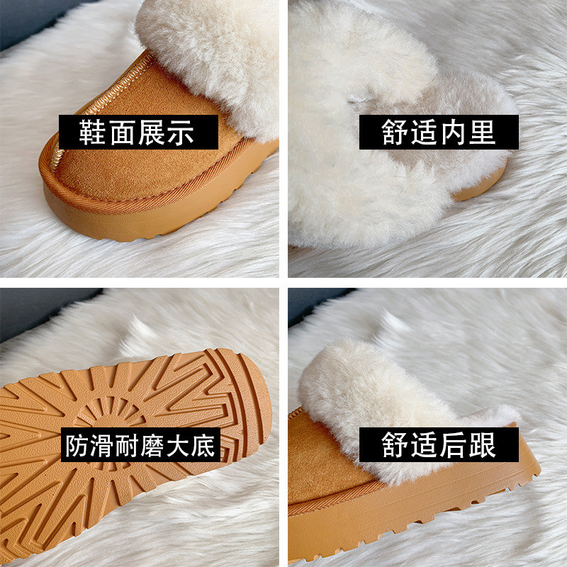 2025趙露思同款雪地靴奶白溫柔厚底增高外穿加絨羊毛包頭半拖棉拖