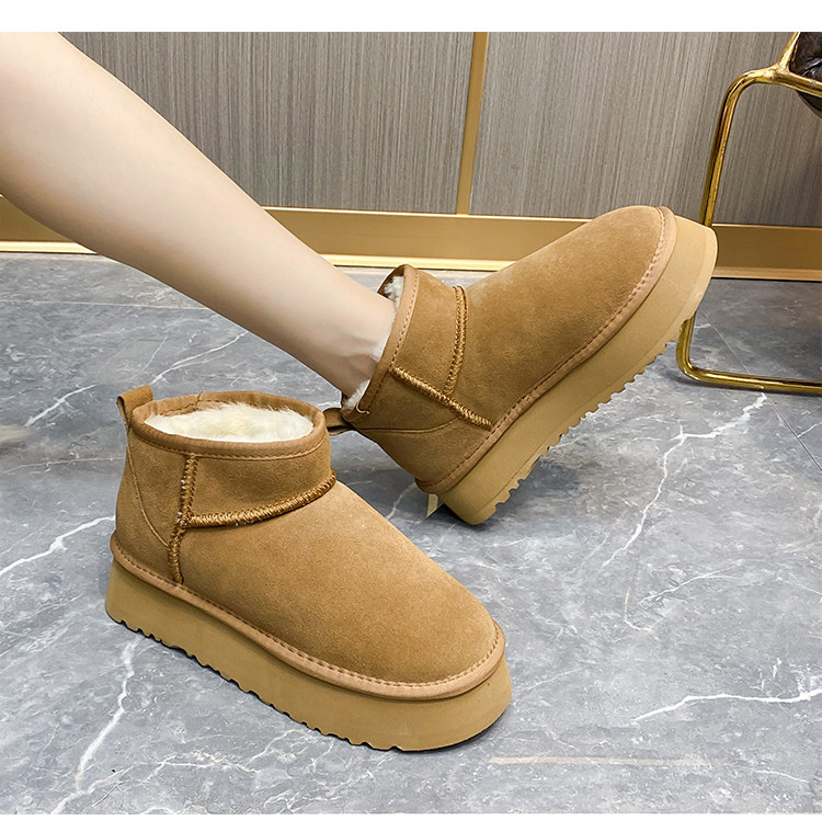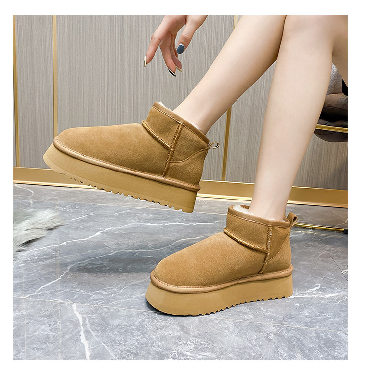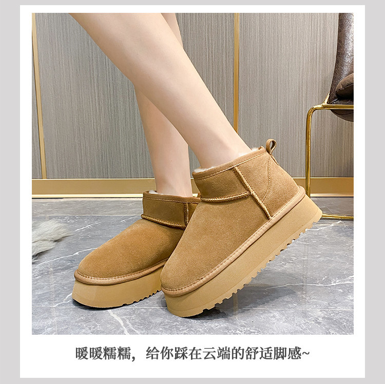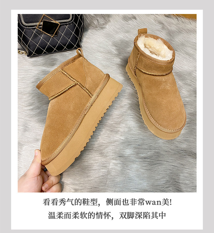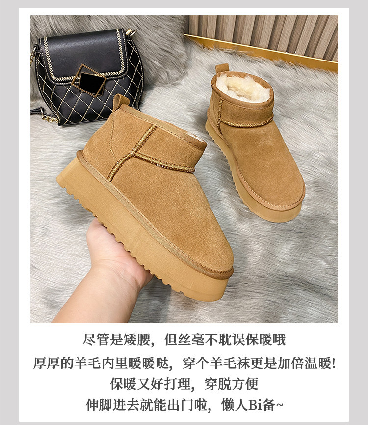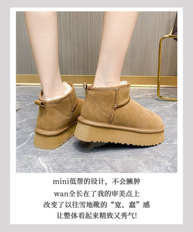 厚底雪地靴女皮毛一體2025新款周冬雨同款增高迷你短筒加厚棉鞋冬