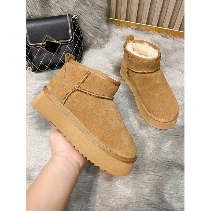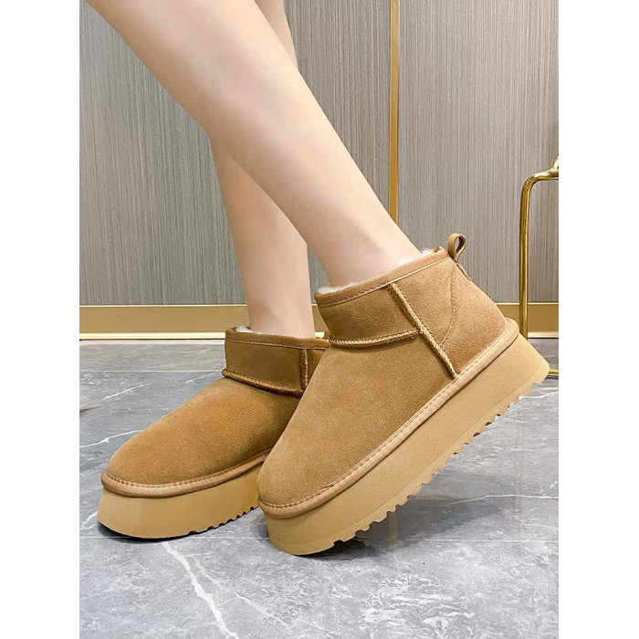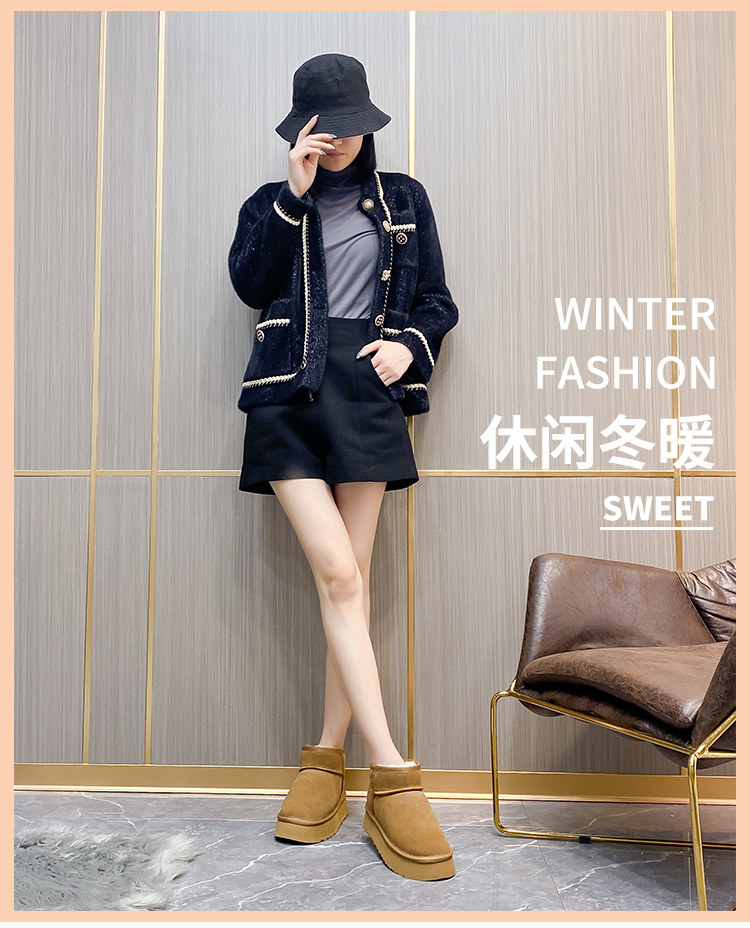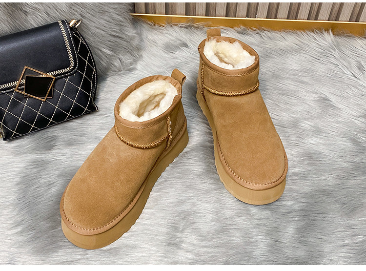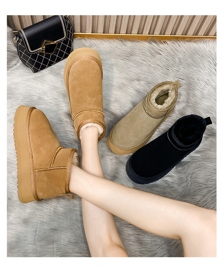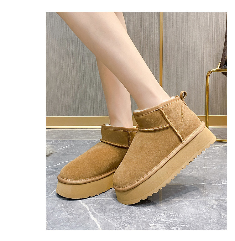 厚底雪地靴女皮毛一體2025新款周冬雨同款增高迷你短筒加厚棉鞋冬