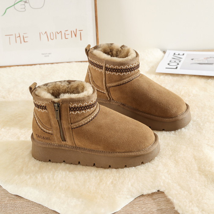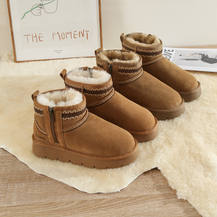 皮毛一體雪地靴女冬2025新款加絨加厚保暖短筒厚底防滑全羊毛棉鞋