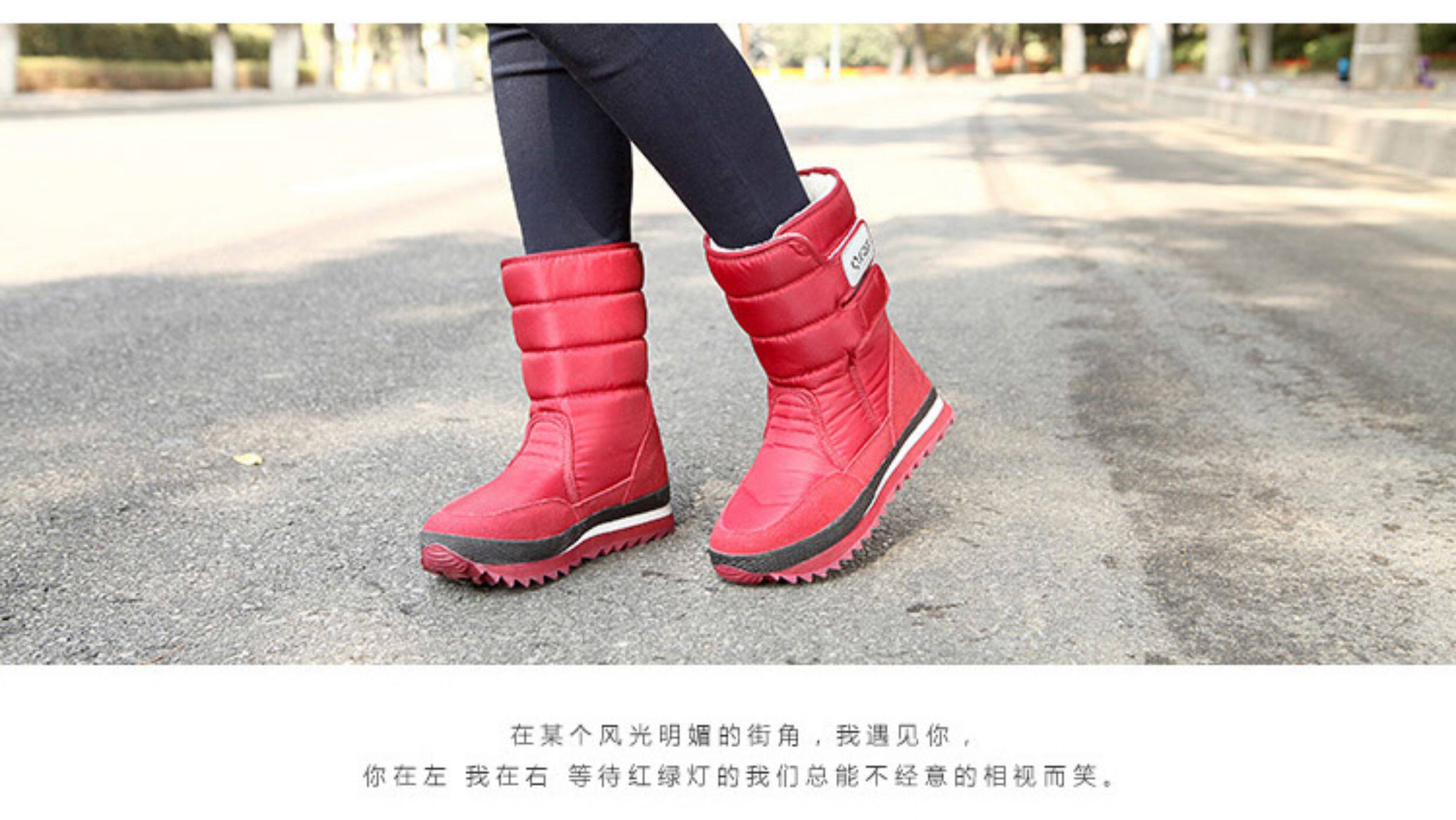 冬季新款時尚加厚軟底防水防滑保暖雪地靴女毛毛中筒短靴滑雪地鞋