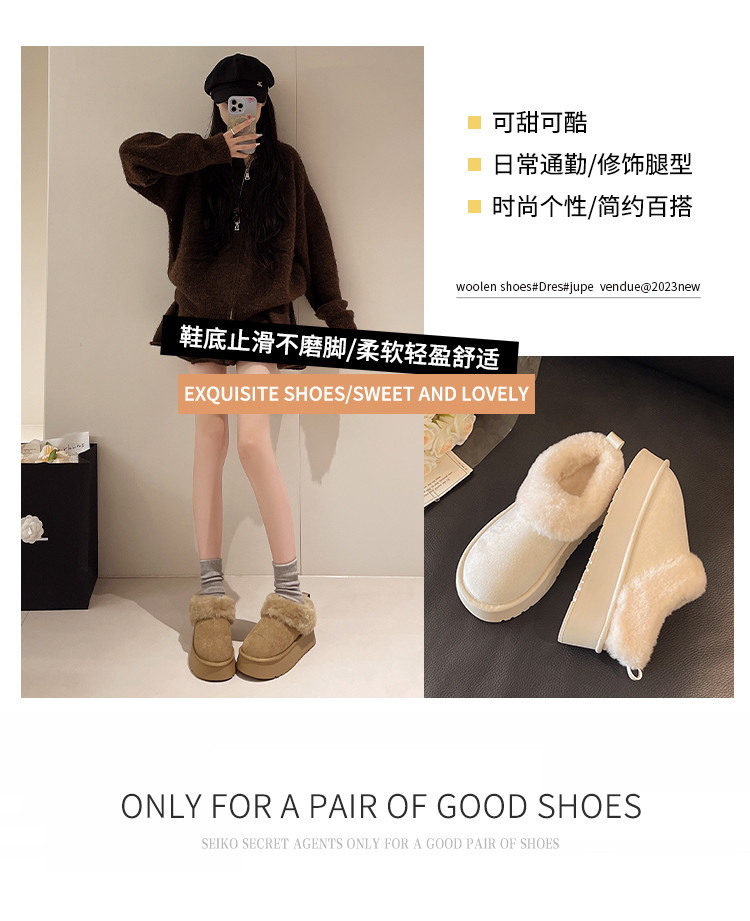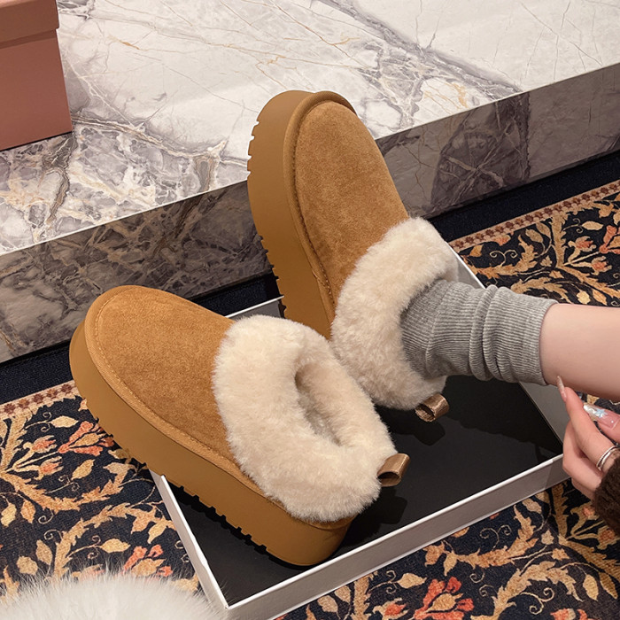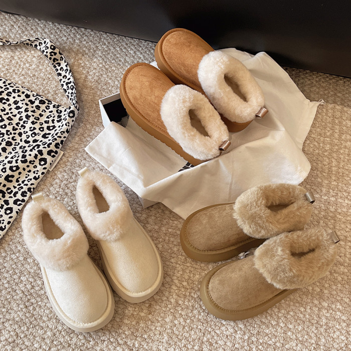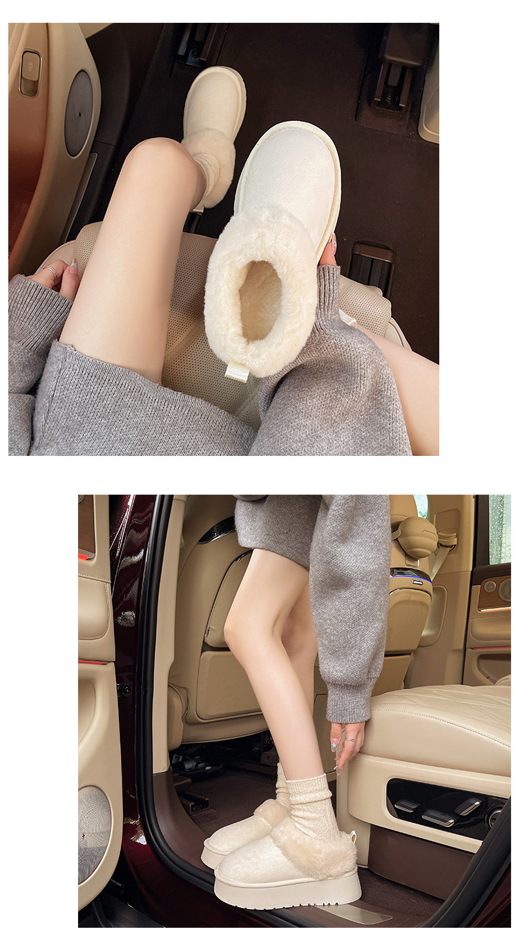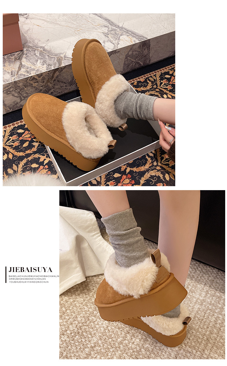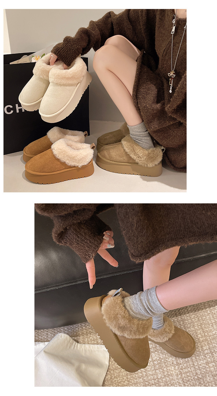 厚底毛毛雪地靴女冬2026新款一腳蹬短靴加絨加厚保暖東北麵包棉鞋