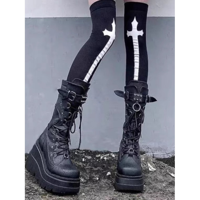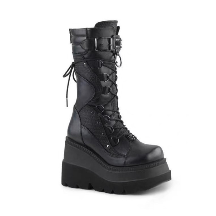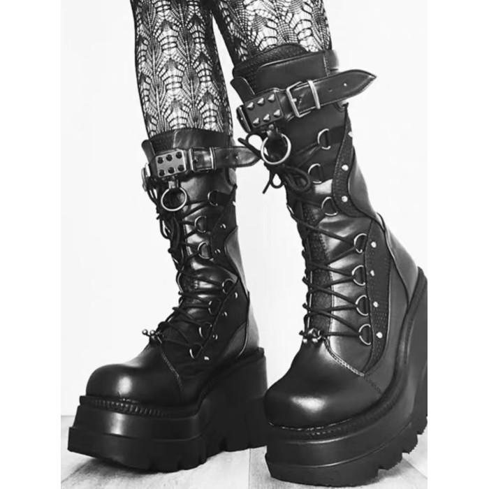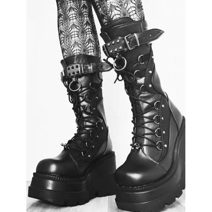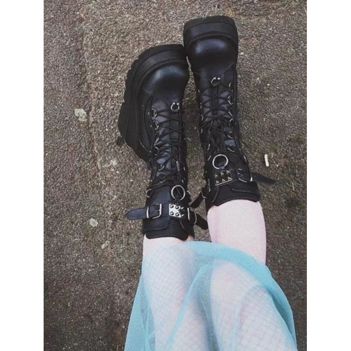 Demonia同款y2k厚底機車暗黑哥特式辣妹中筒靴女啞光黑色騎士靴