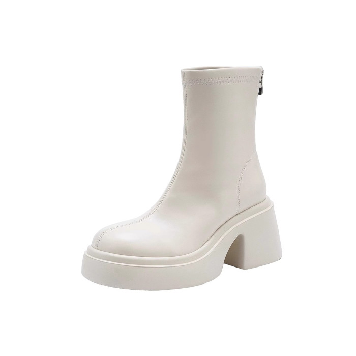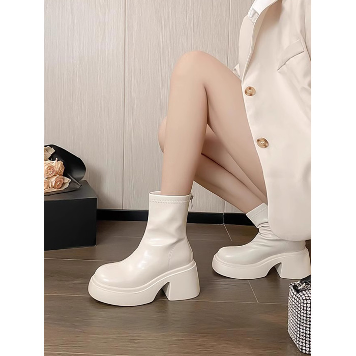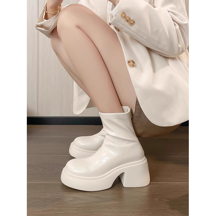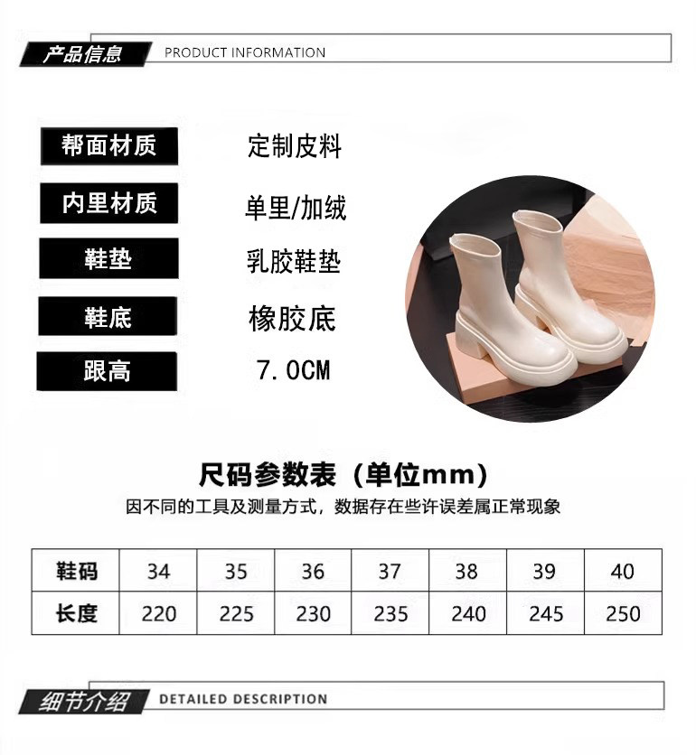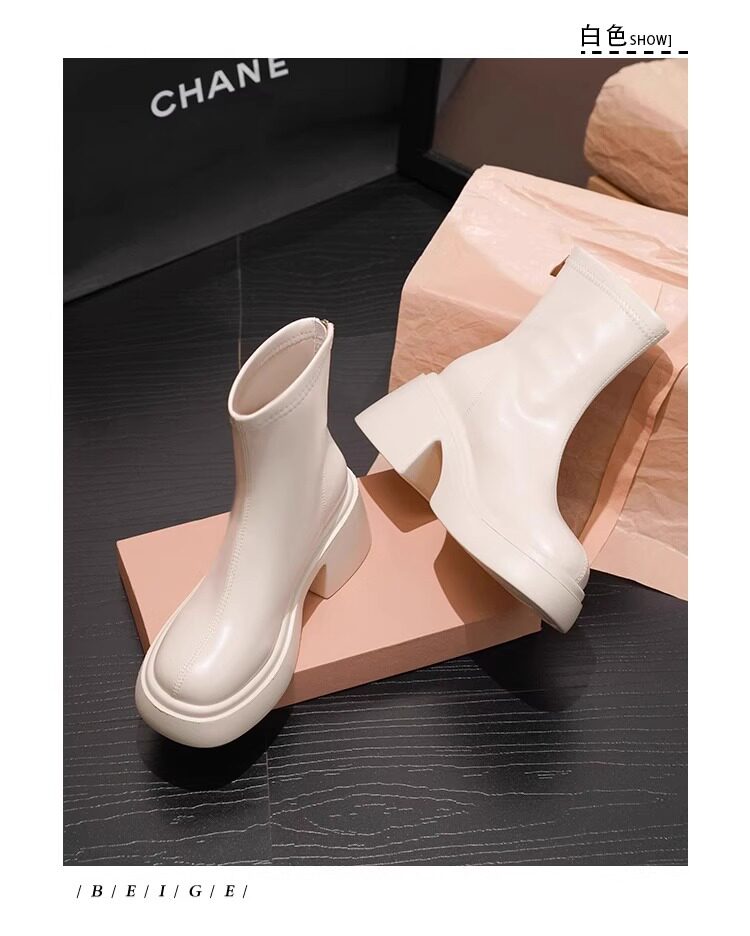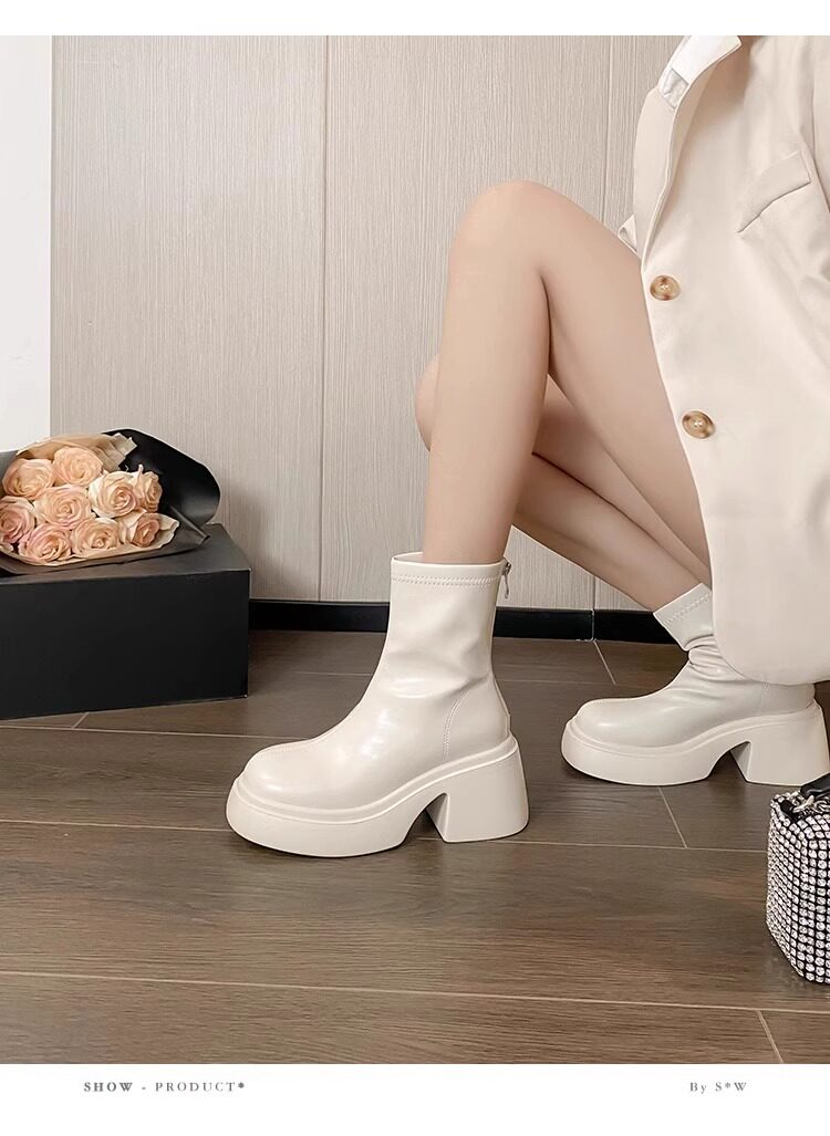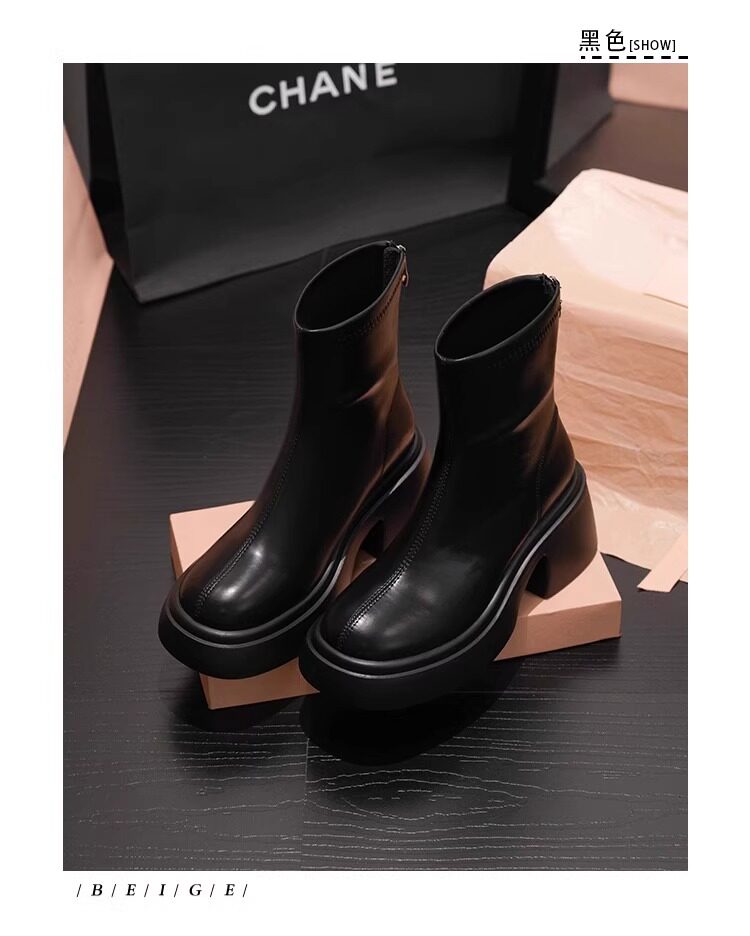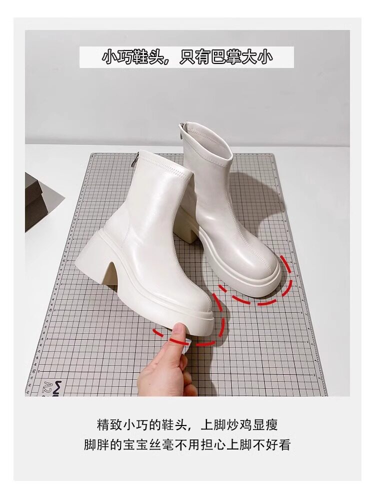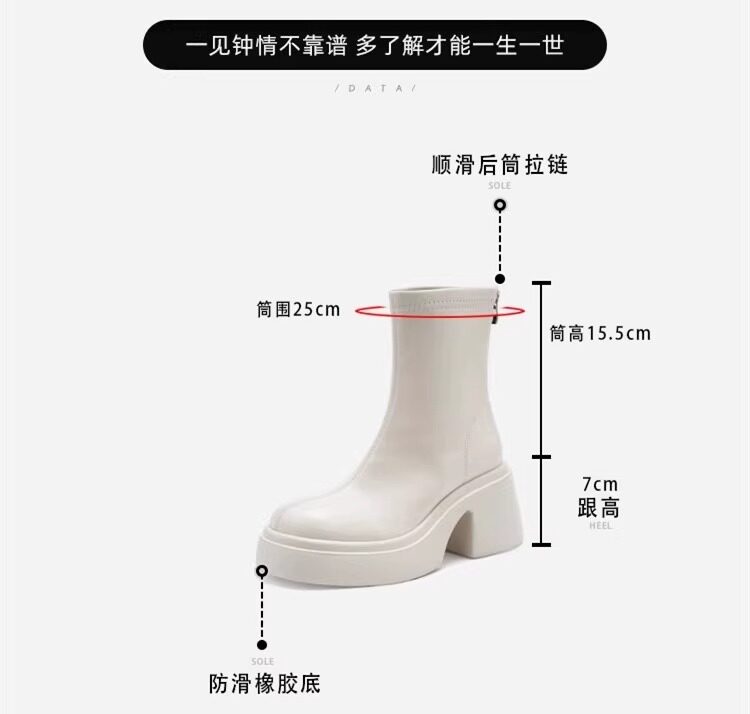 時尚小個子時裝靴女2025春秋季新款粗跟馬丁靴高跟氣質瘦瘦小短靴
