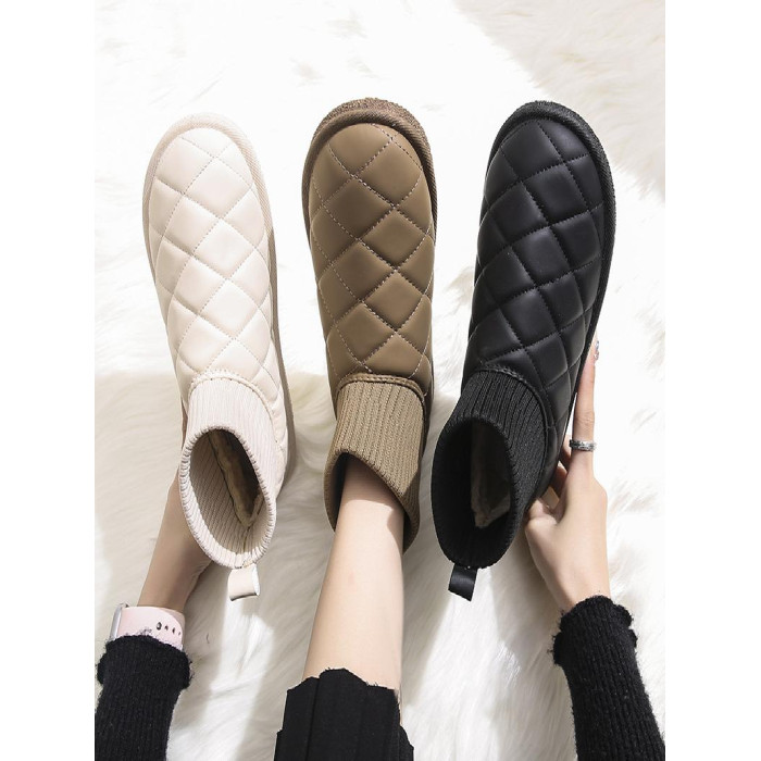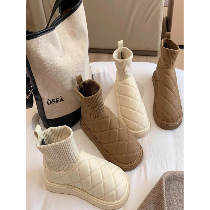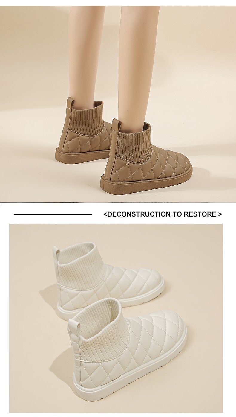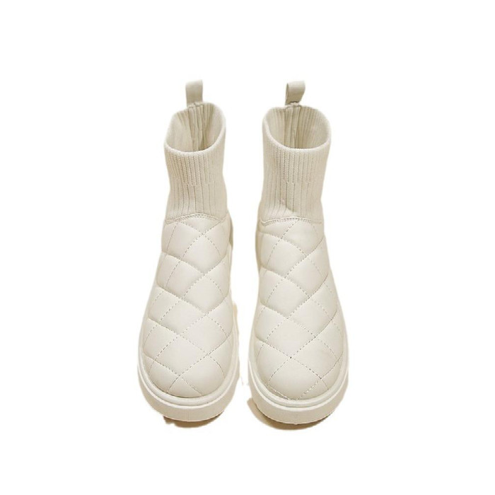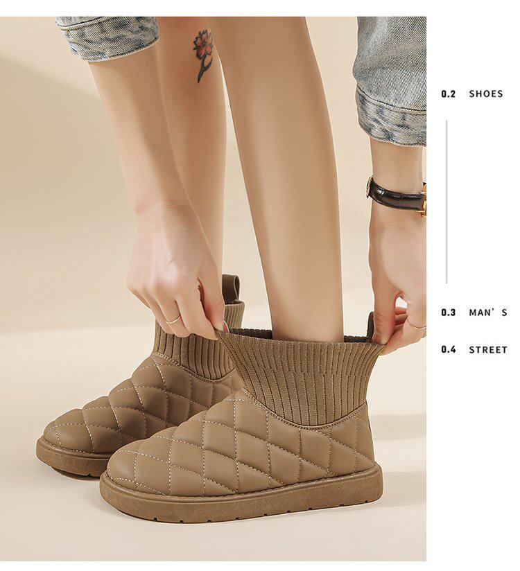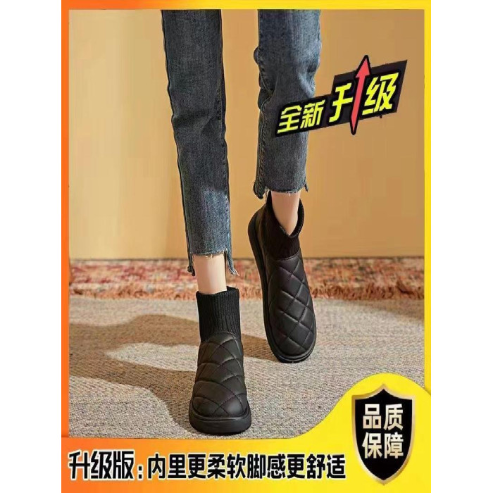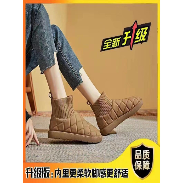 2025新款雪地靴女冬季厚底加絨保暖棉鞋彈力短筒襪子靴針織防水靴