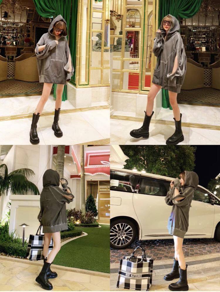 大碼女鞋41一43英倫風馬丁靴女網紅MONA彈力菸琯靴42中筒切爾西靴