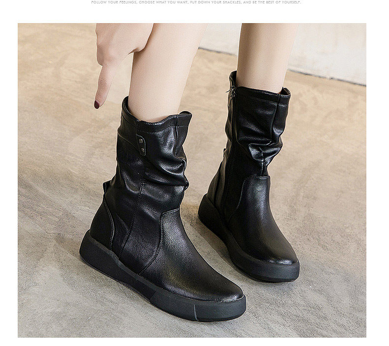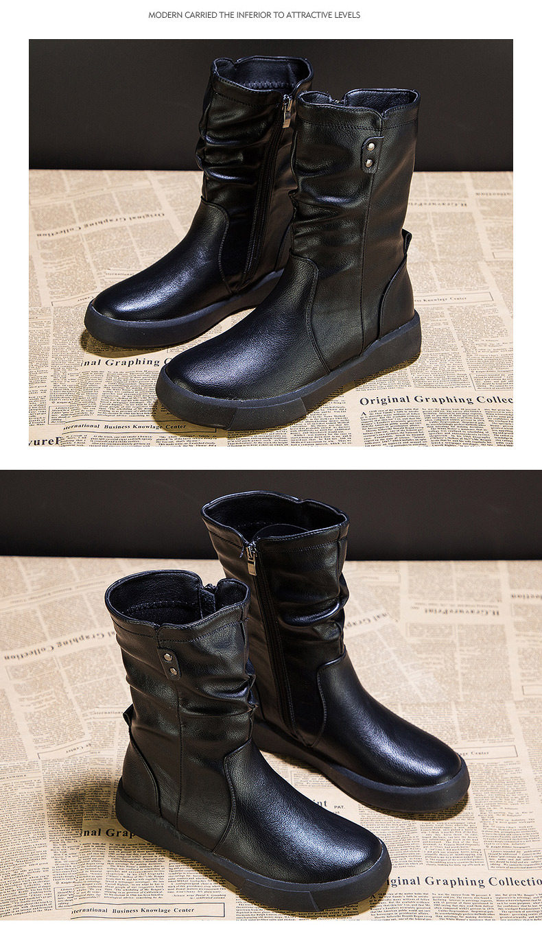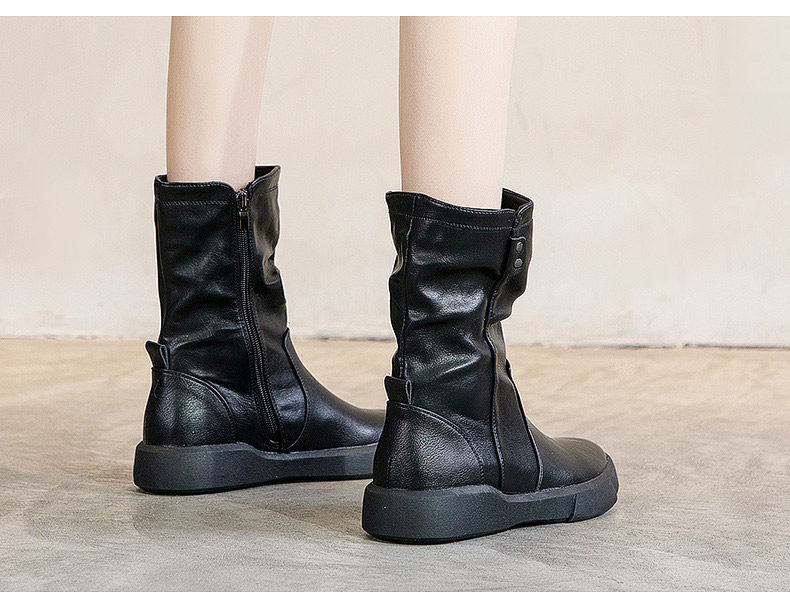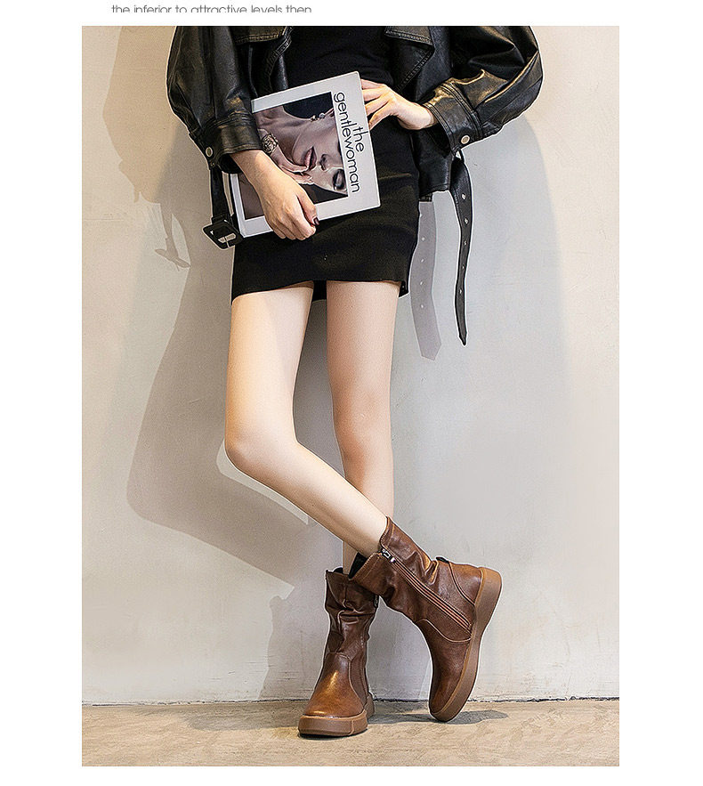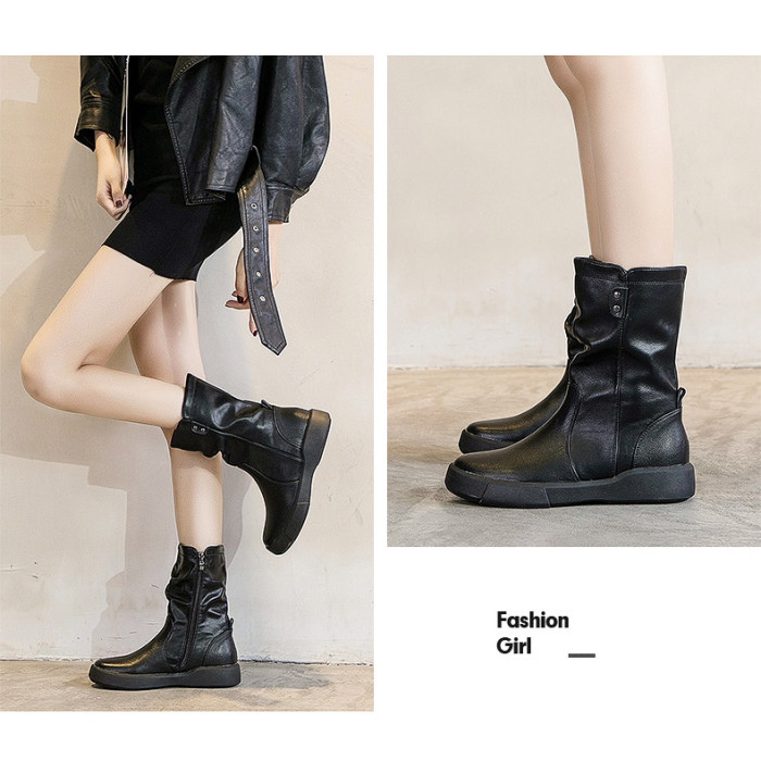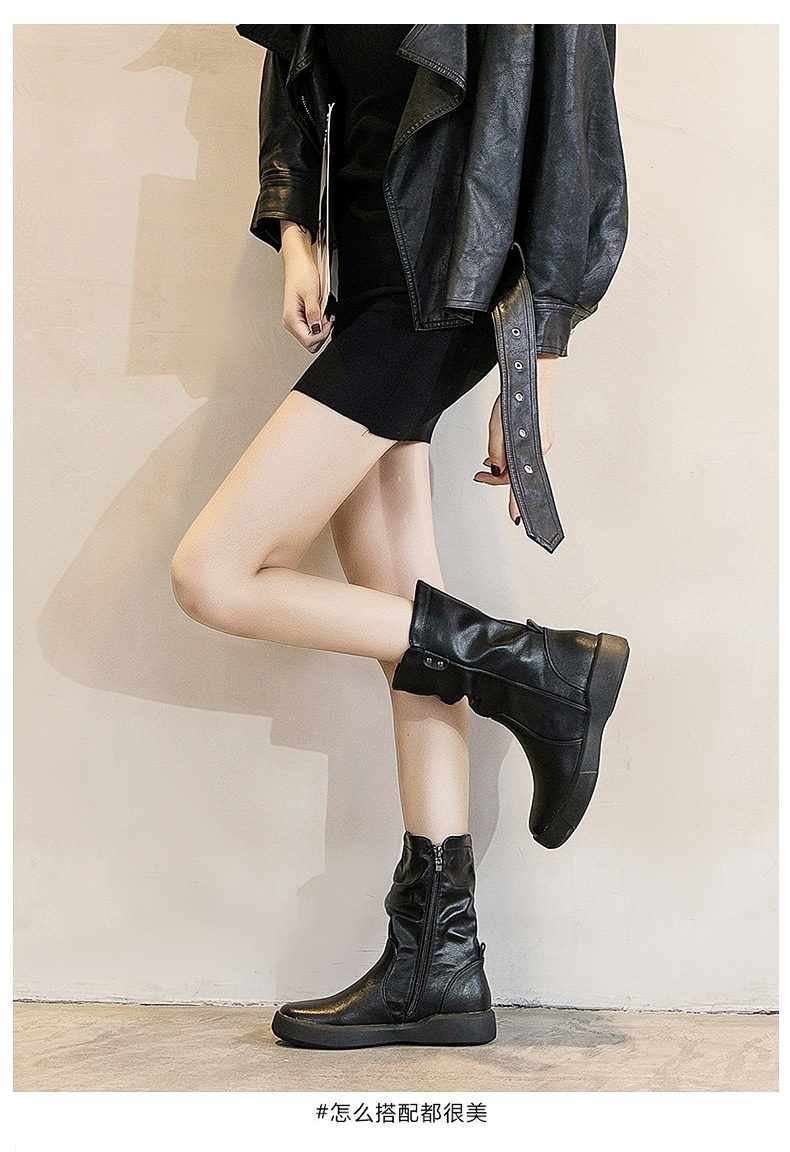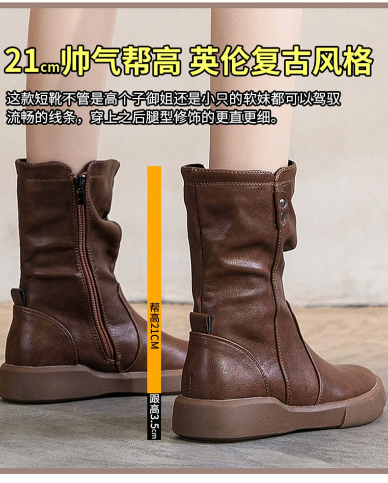 真皮中筒馬丁靴女2025秋冬季英倫風瘦瘦靴軟底軟皮加絨大碼靴子女