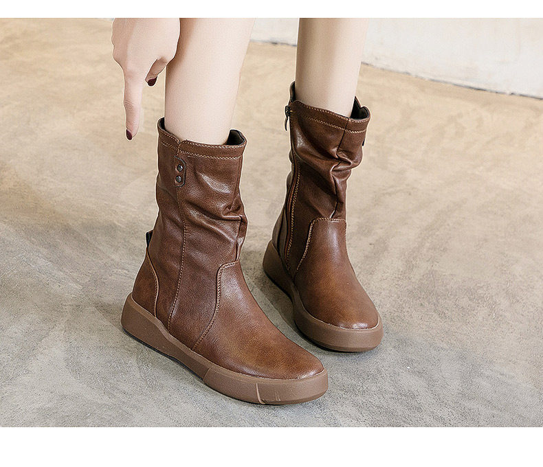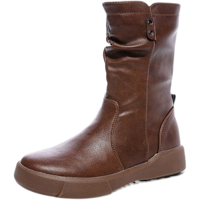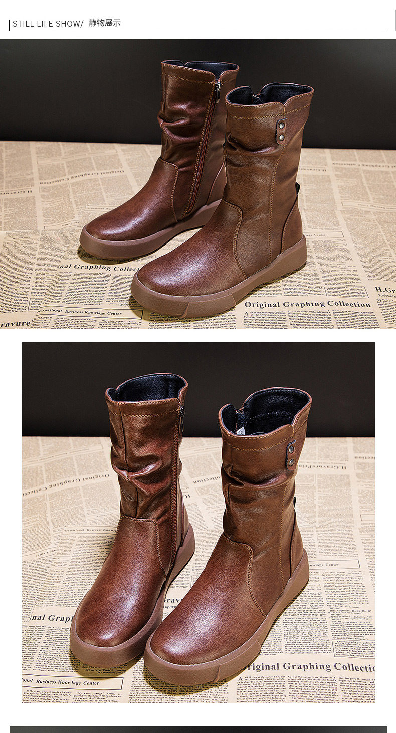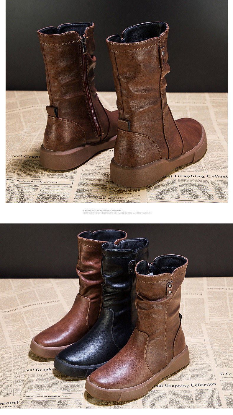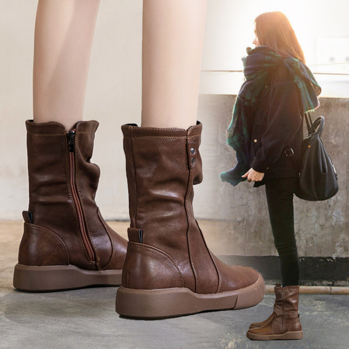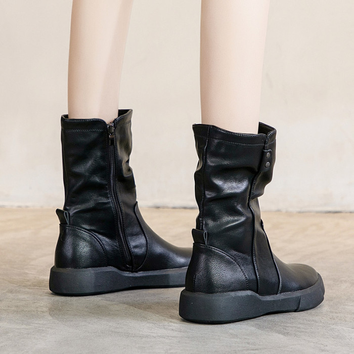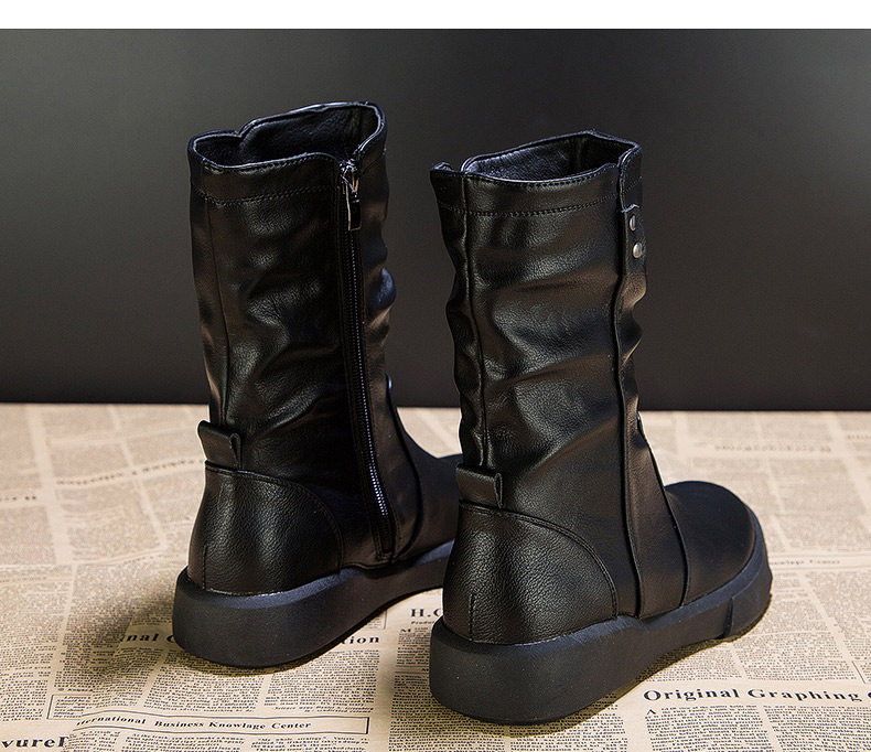 真皮中筒馬丁靴女2025秋冬季英倫風瘦瘦靴軟底軟皮加絨大碼靴子女
